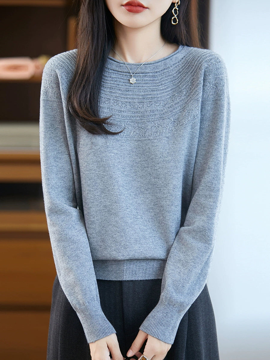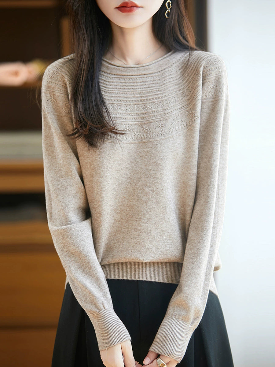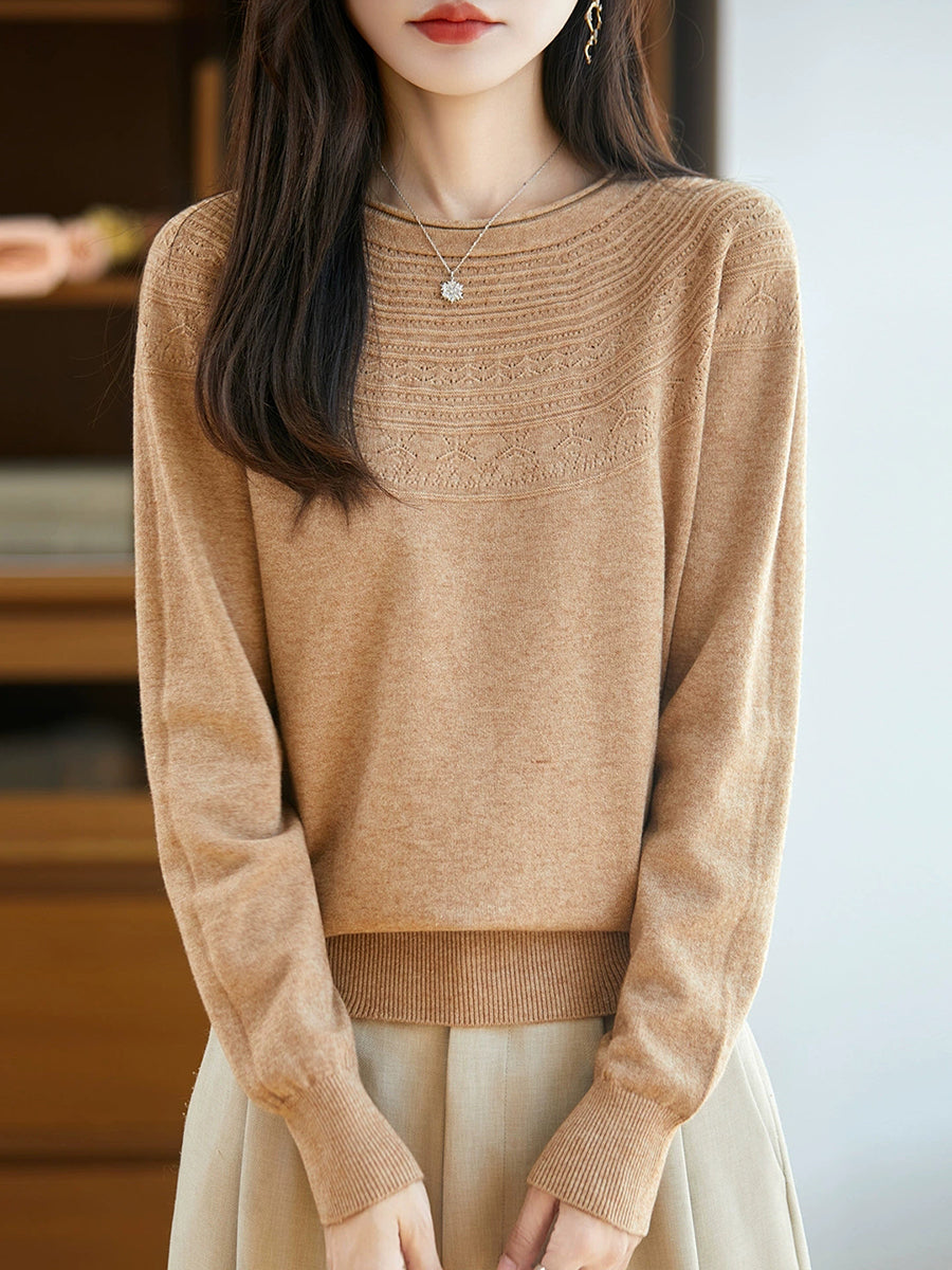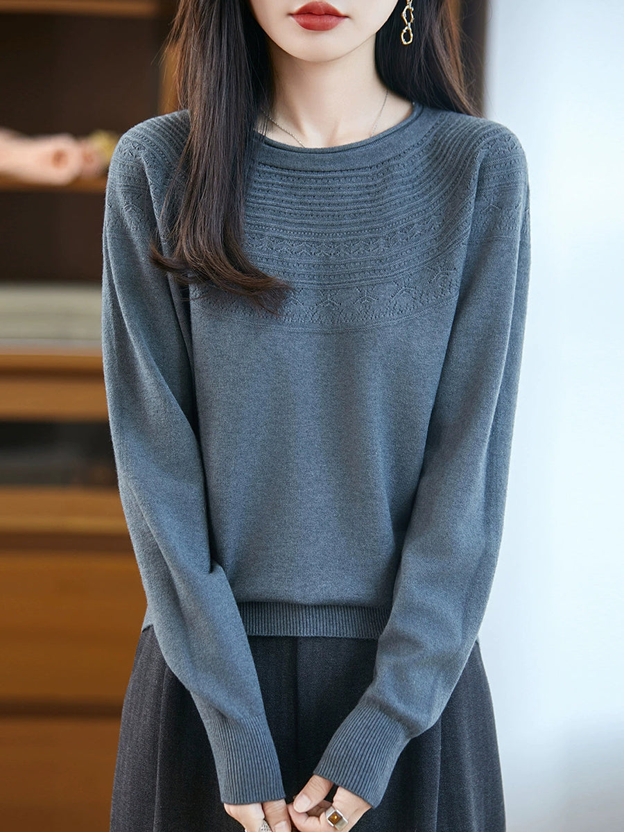 Damen Frühlingspullover aus künstlerisch gestricktem Rundhalsausschnitt