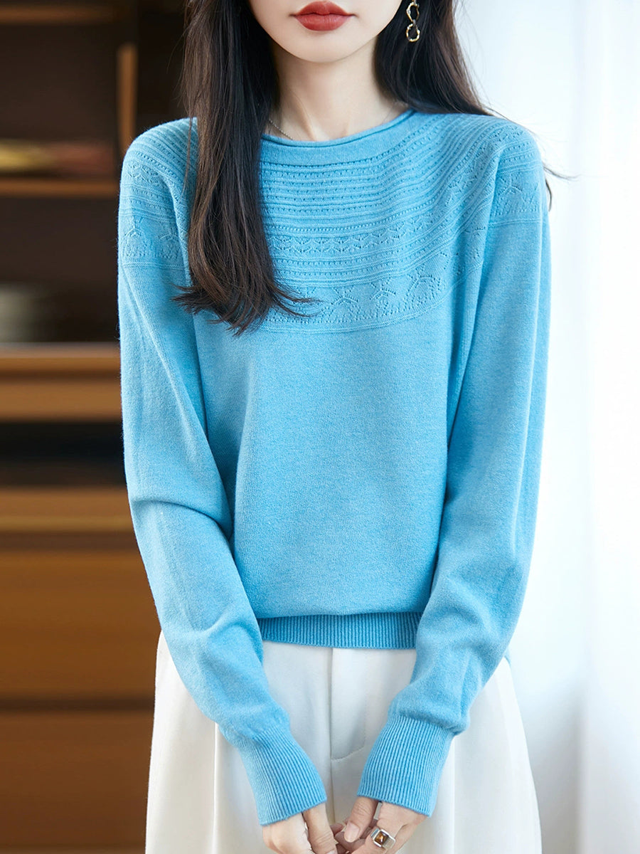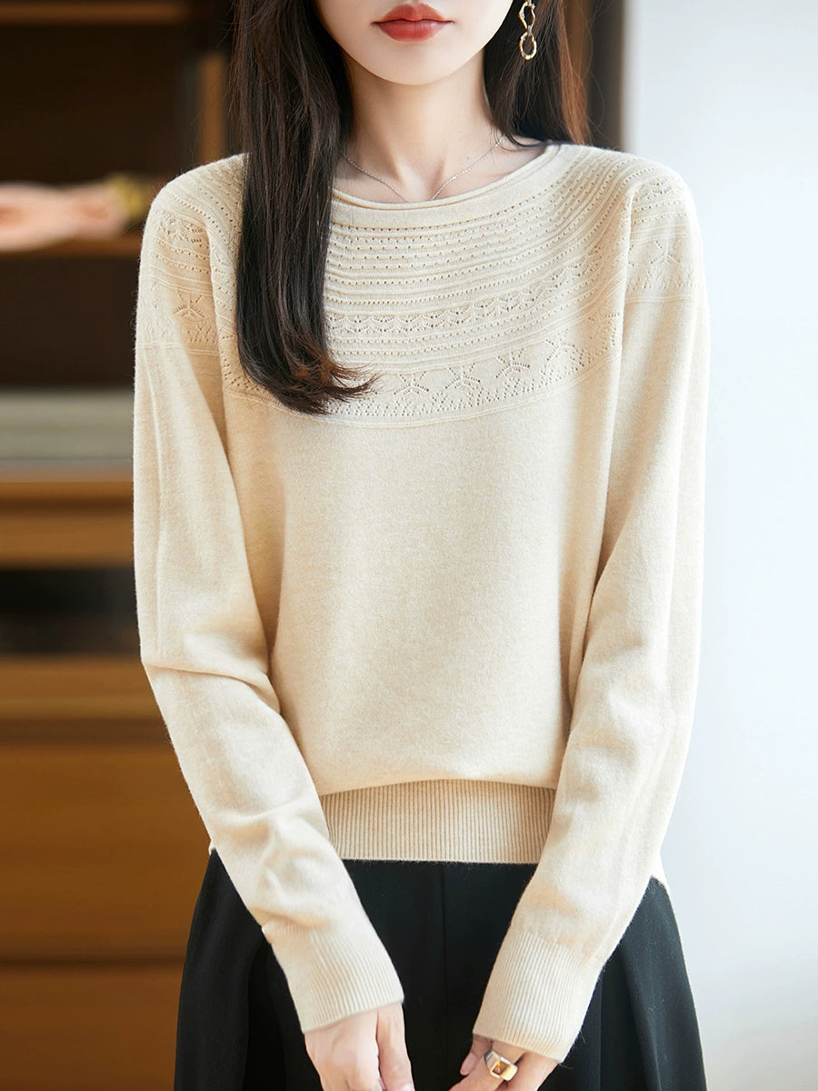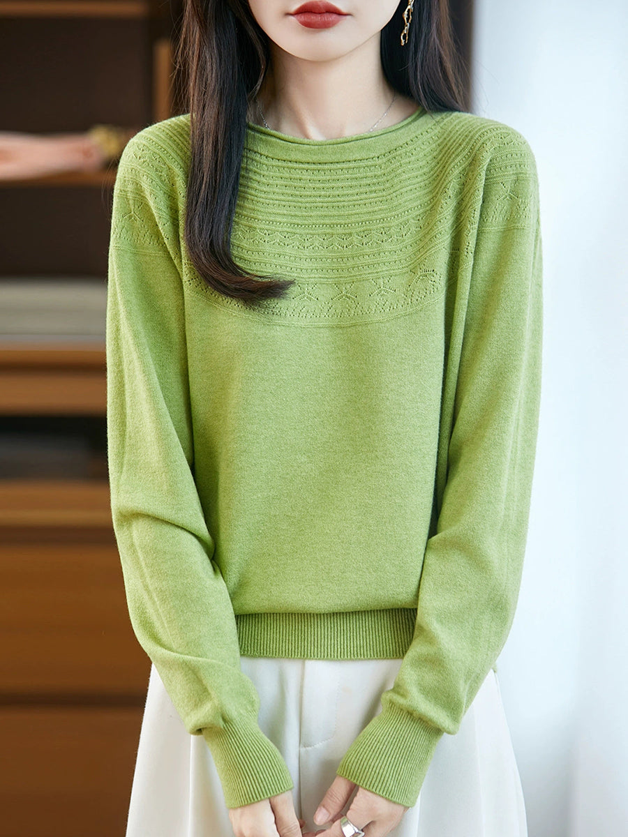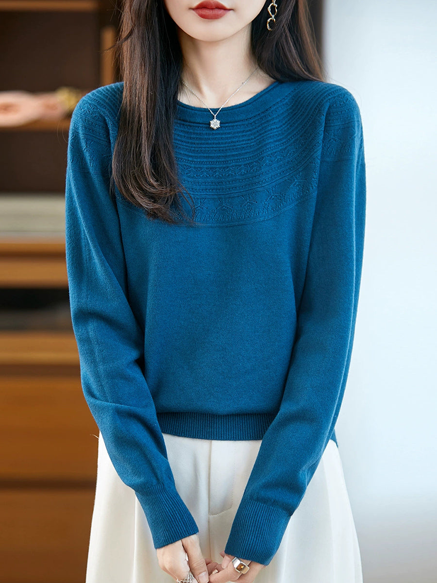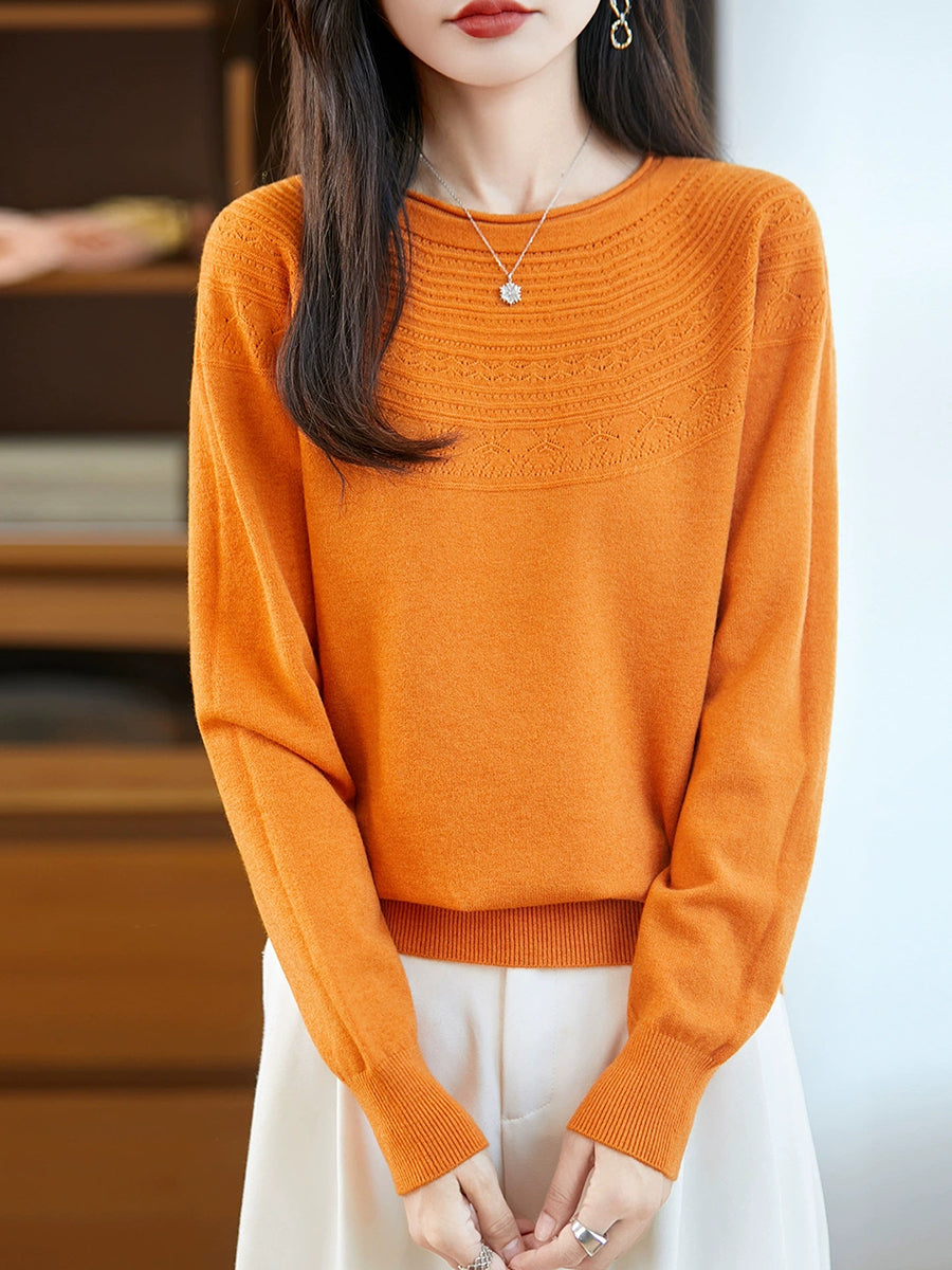 Damen Frühlingspullover aus künstlerisch gestricktem Rundhalsausschnitt