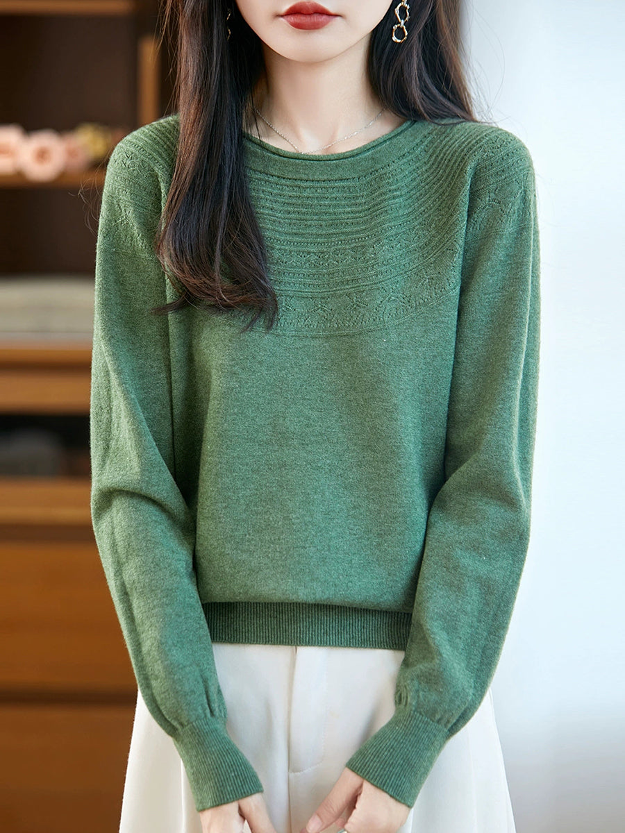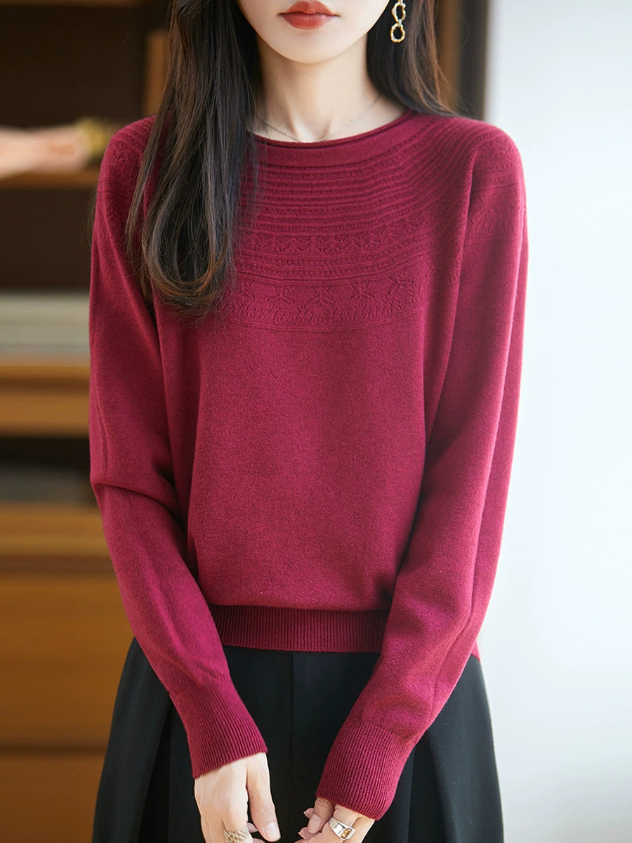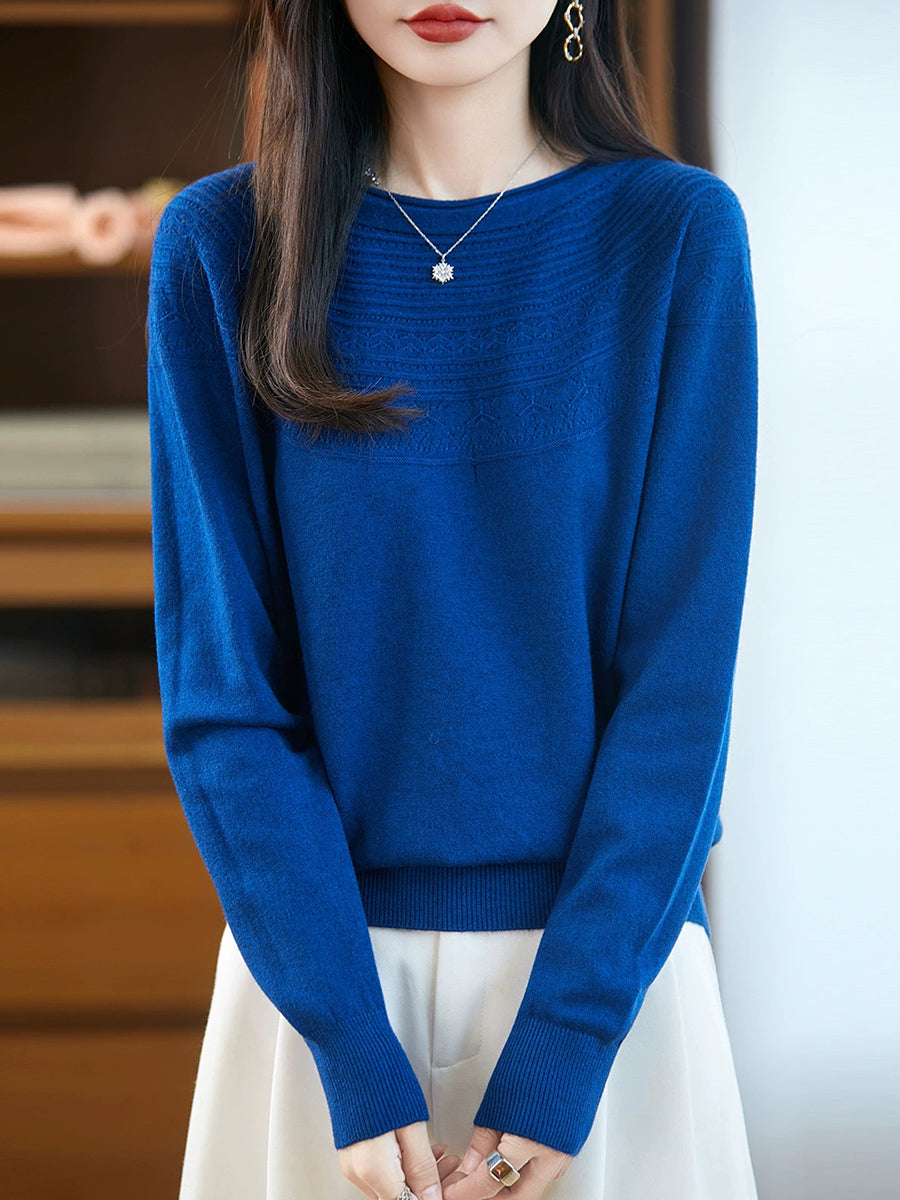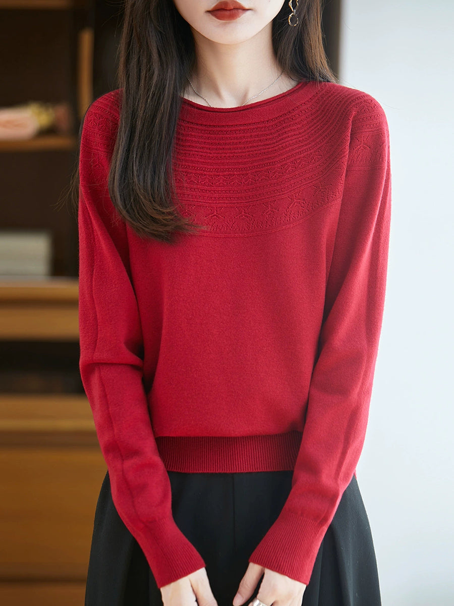 Damen Frühlingspullover aus künstlerisch gestricktem Rundhalsausschnitt