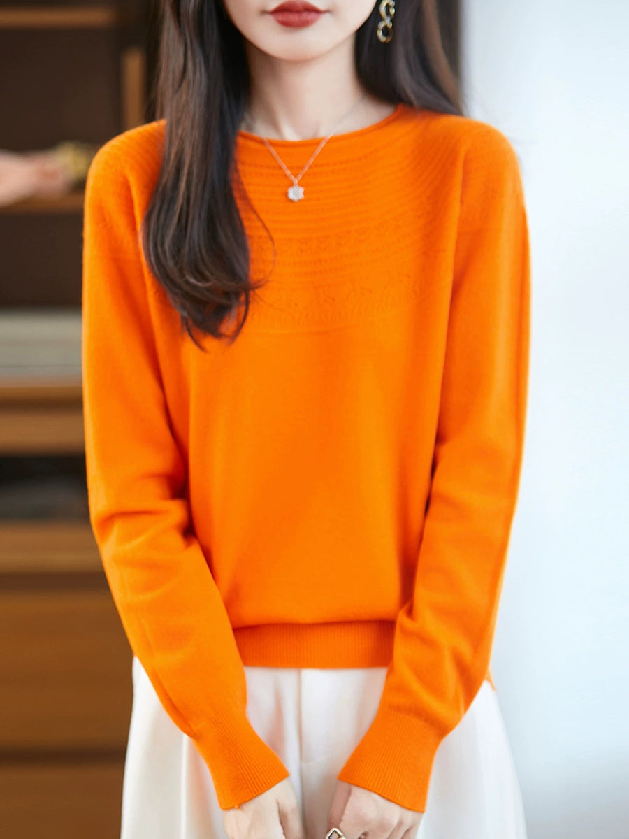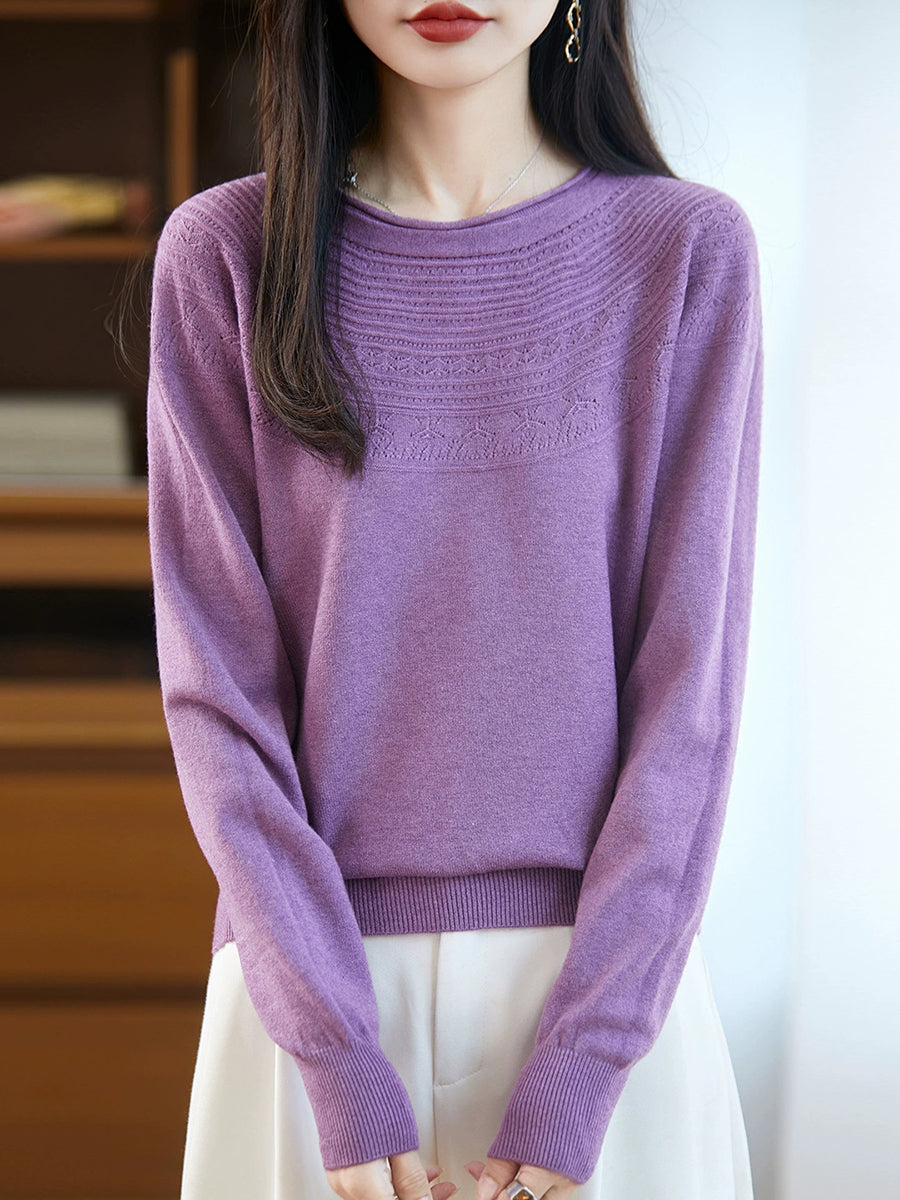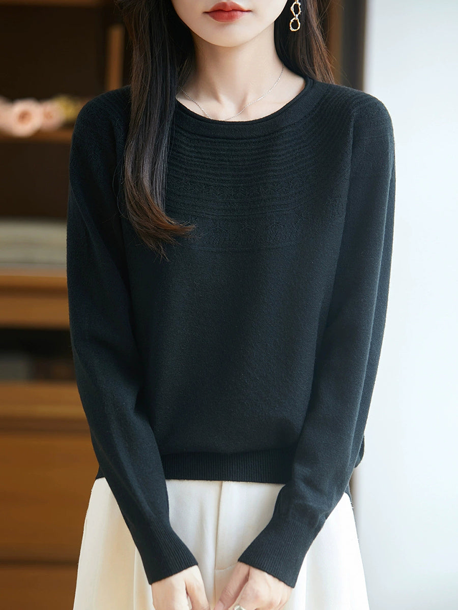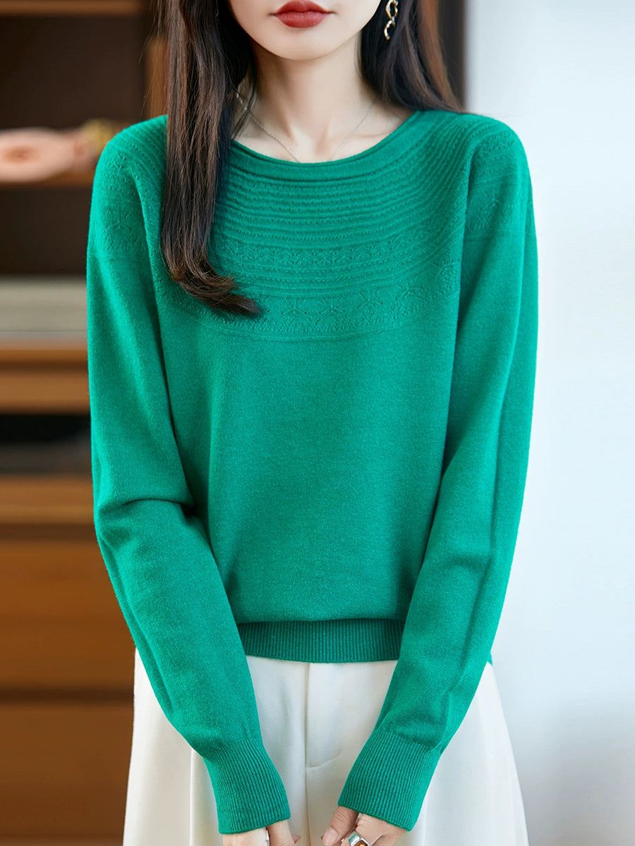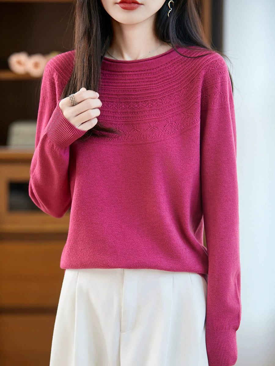 Damen Frühlingspullover aus künstlerisch gestricktem Rundhalsausschnitt