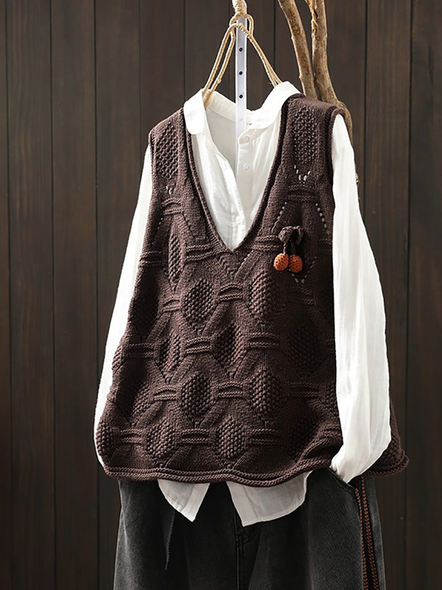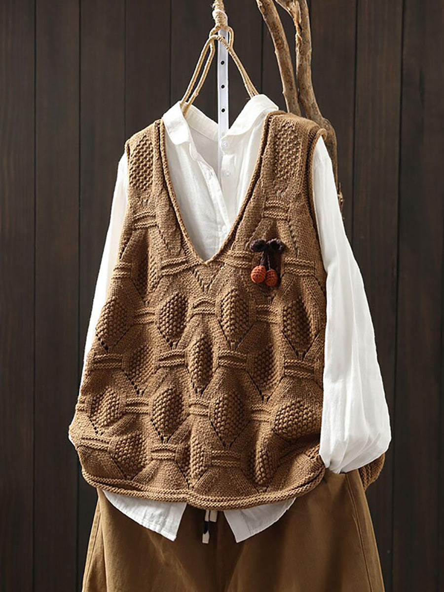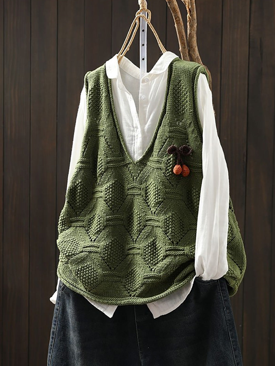 Damen Frühlingsweste mit V-Ausschnitt, künstlerisch gestrickt
