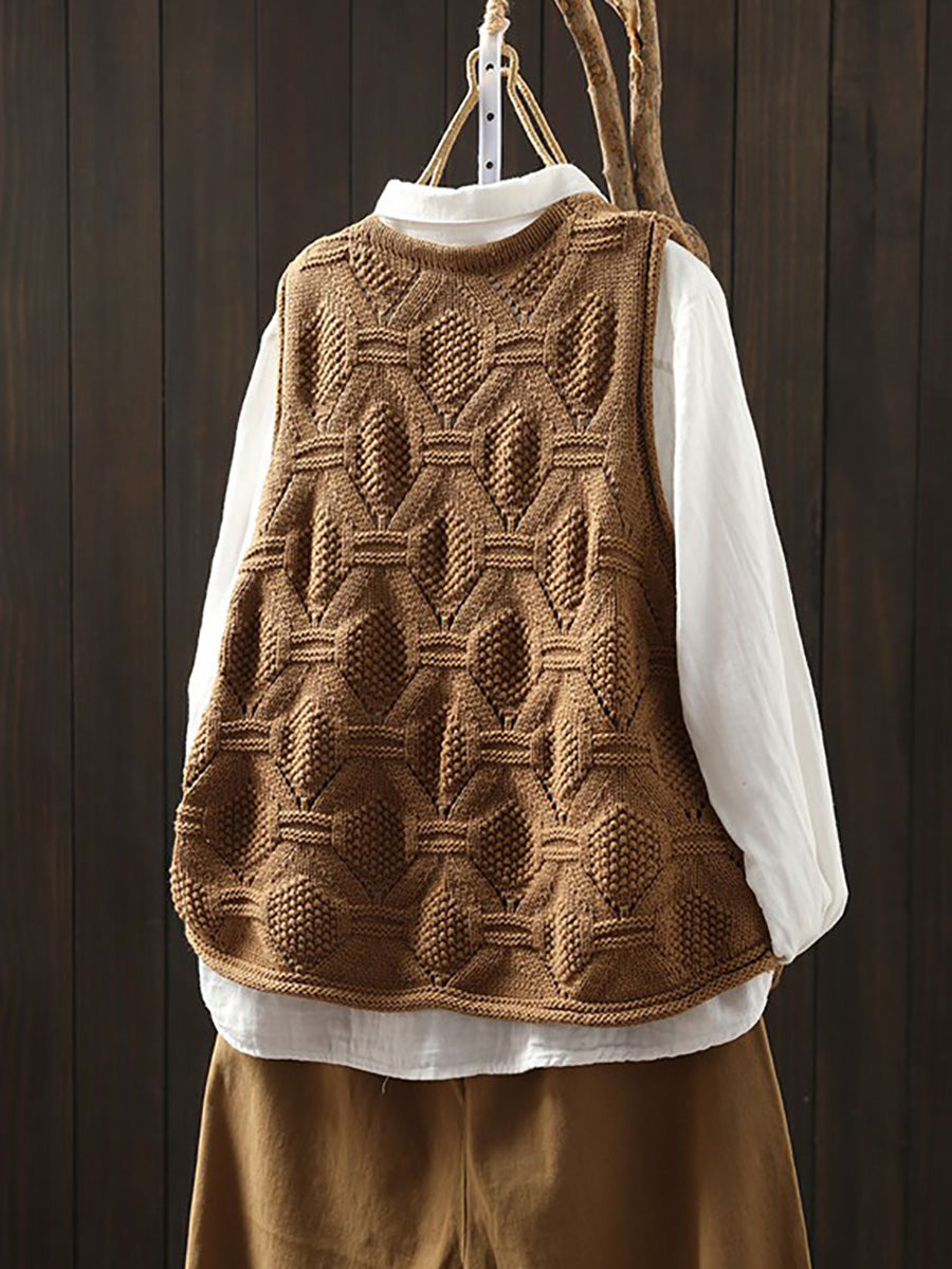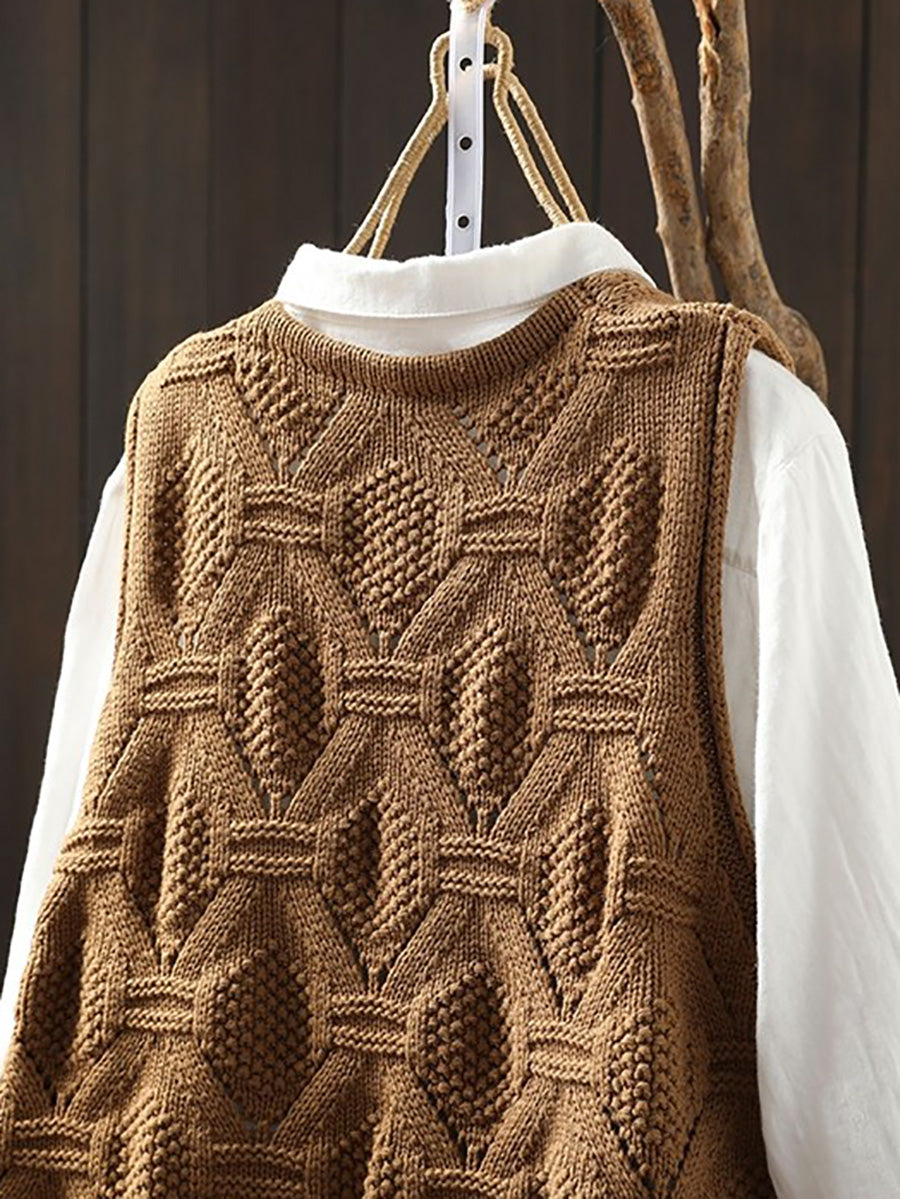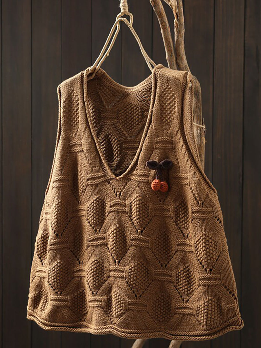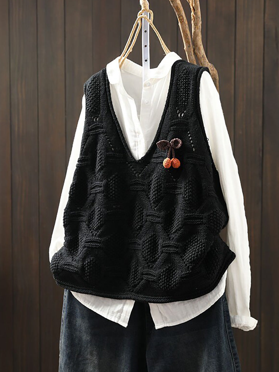 Damen Frühlingsweste mit V-Ausschnitt, künstlerisch gestrickt