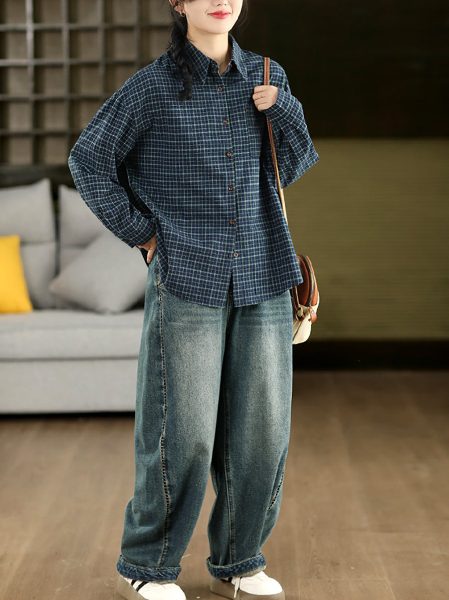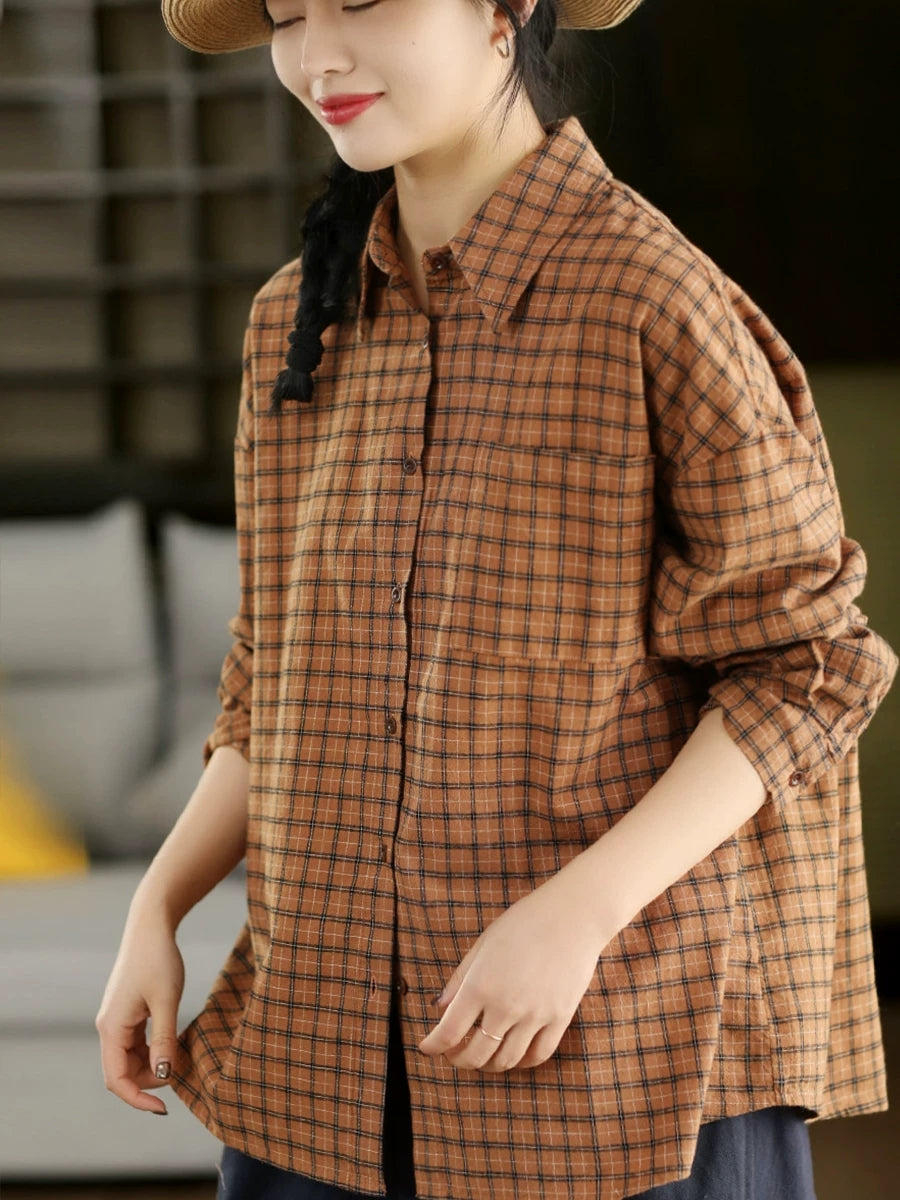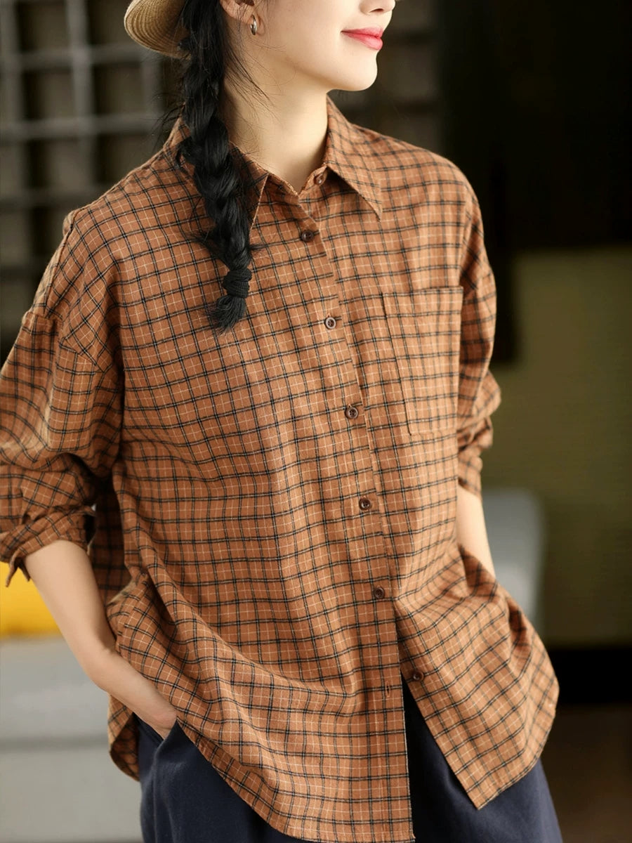 Damen Frühlingsbluse aus Baumwolle mit Karomuster