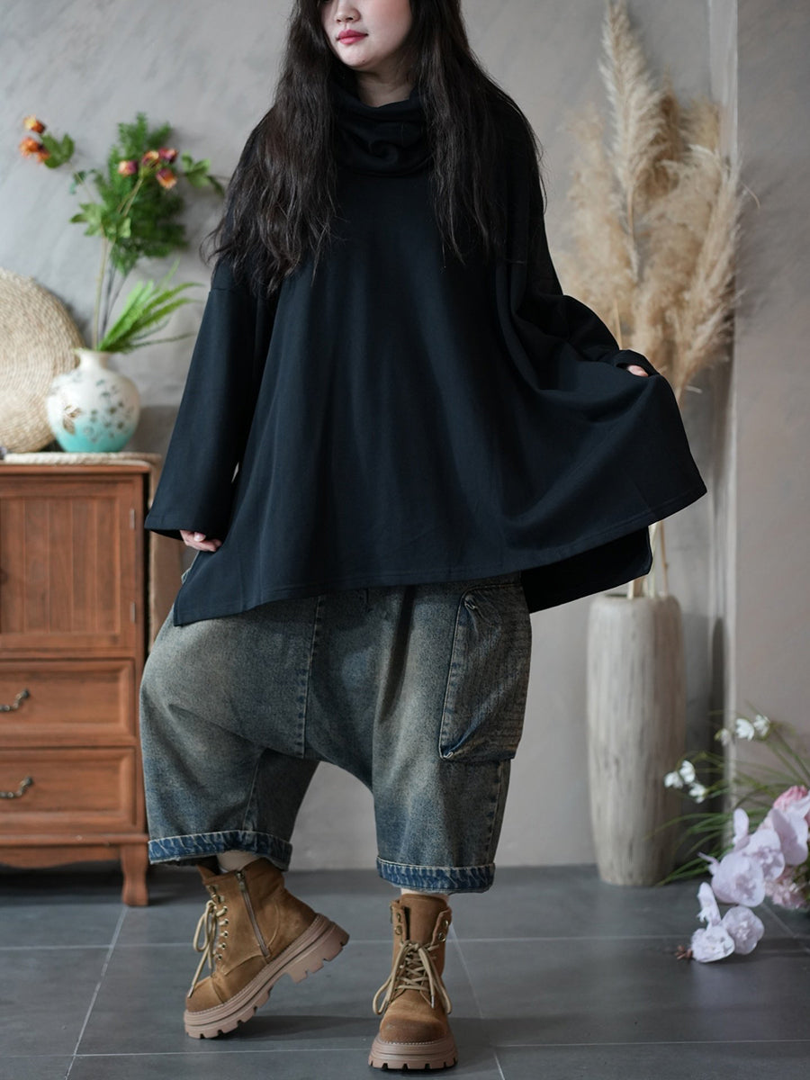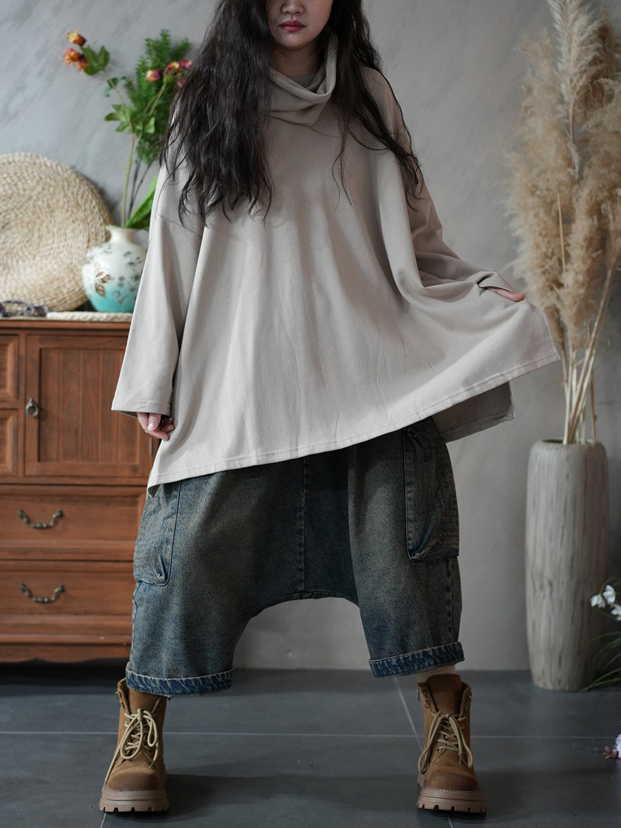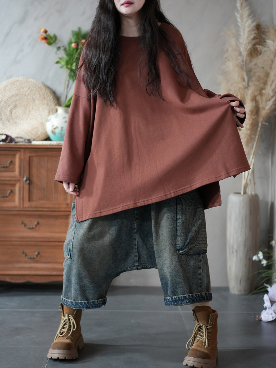 Damen-Frühlings-Hoodie aus 100 % Baumwolle, künstlerisch, einfarbig
