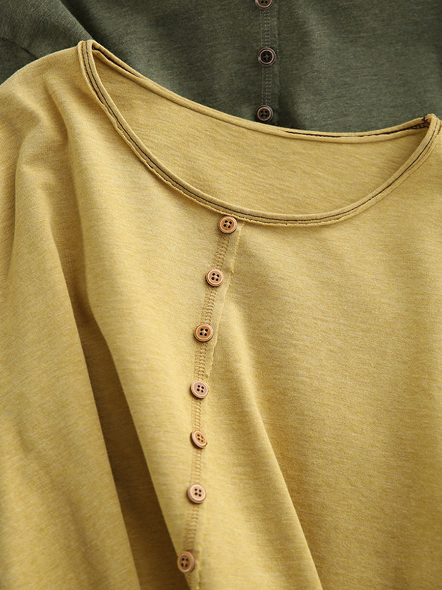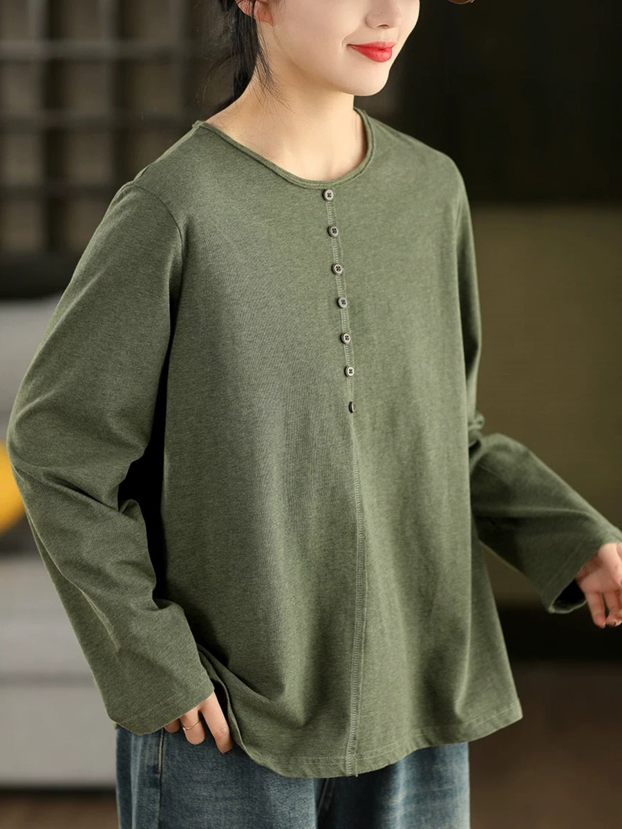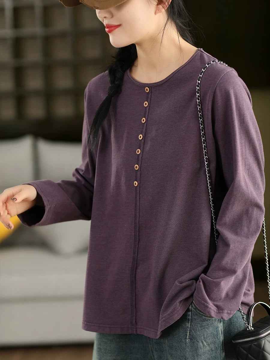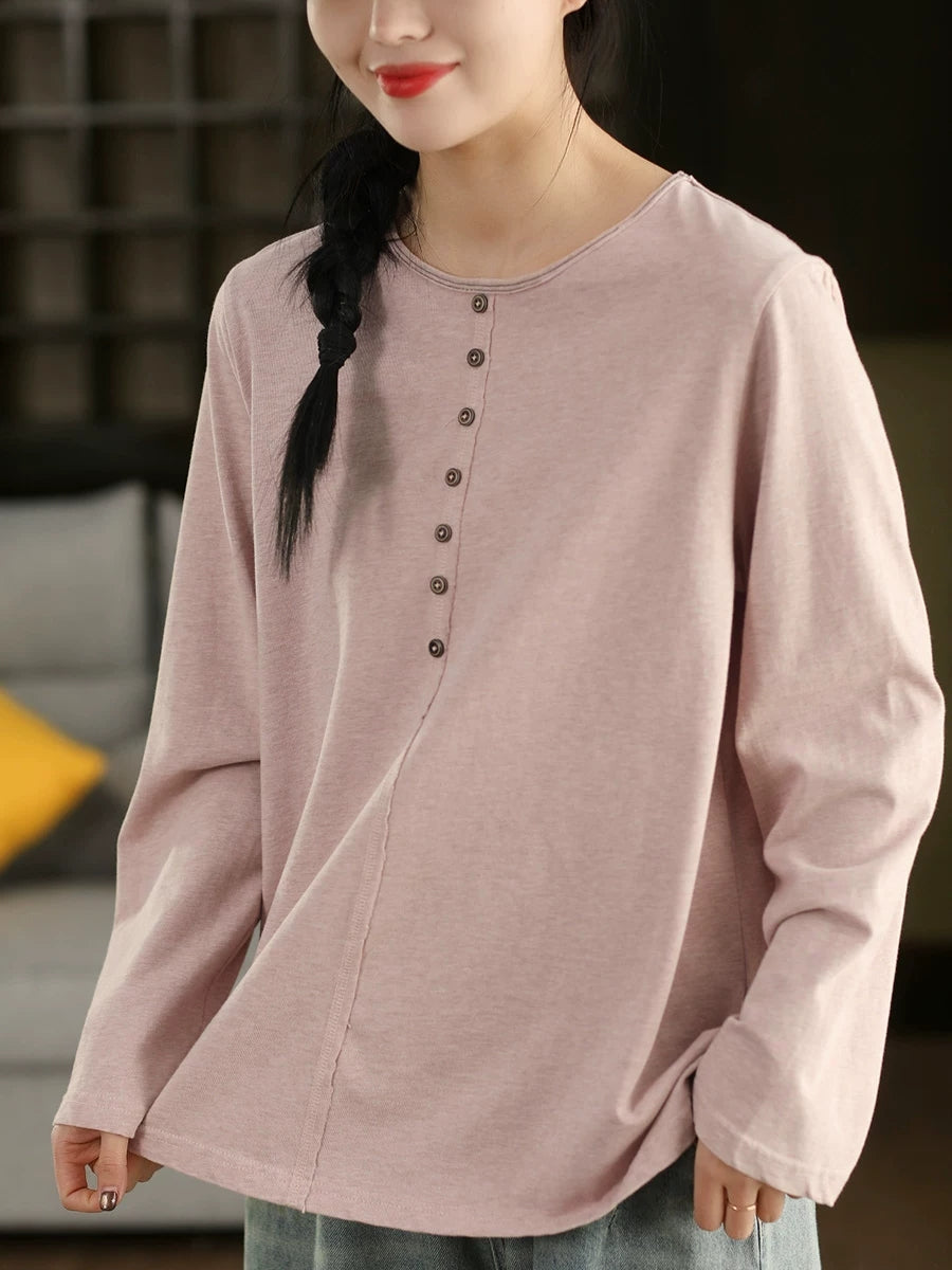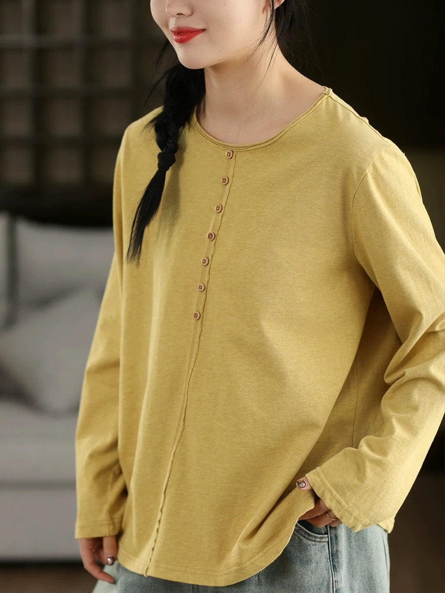 Frühlingsbluse für Damen, künstlerisch, einfarbig, 100 % Baumwolle, Rundhalsausschnitt