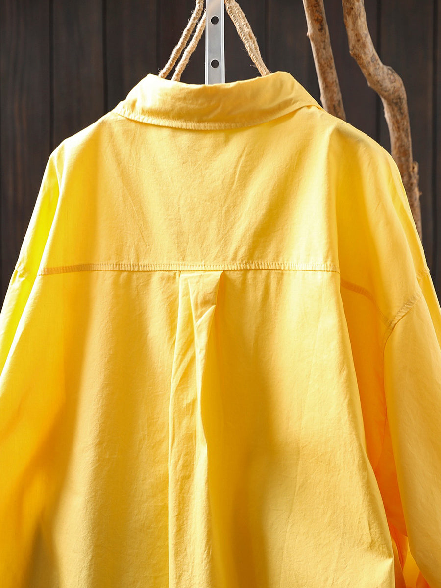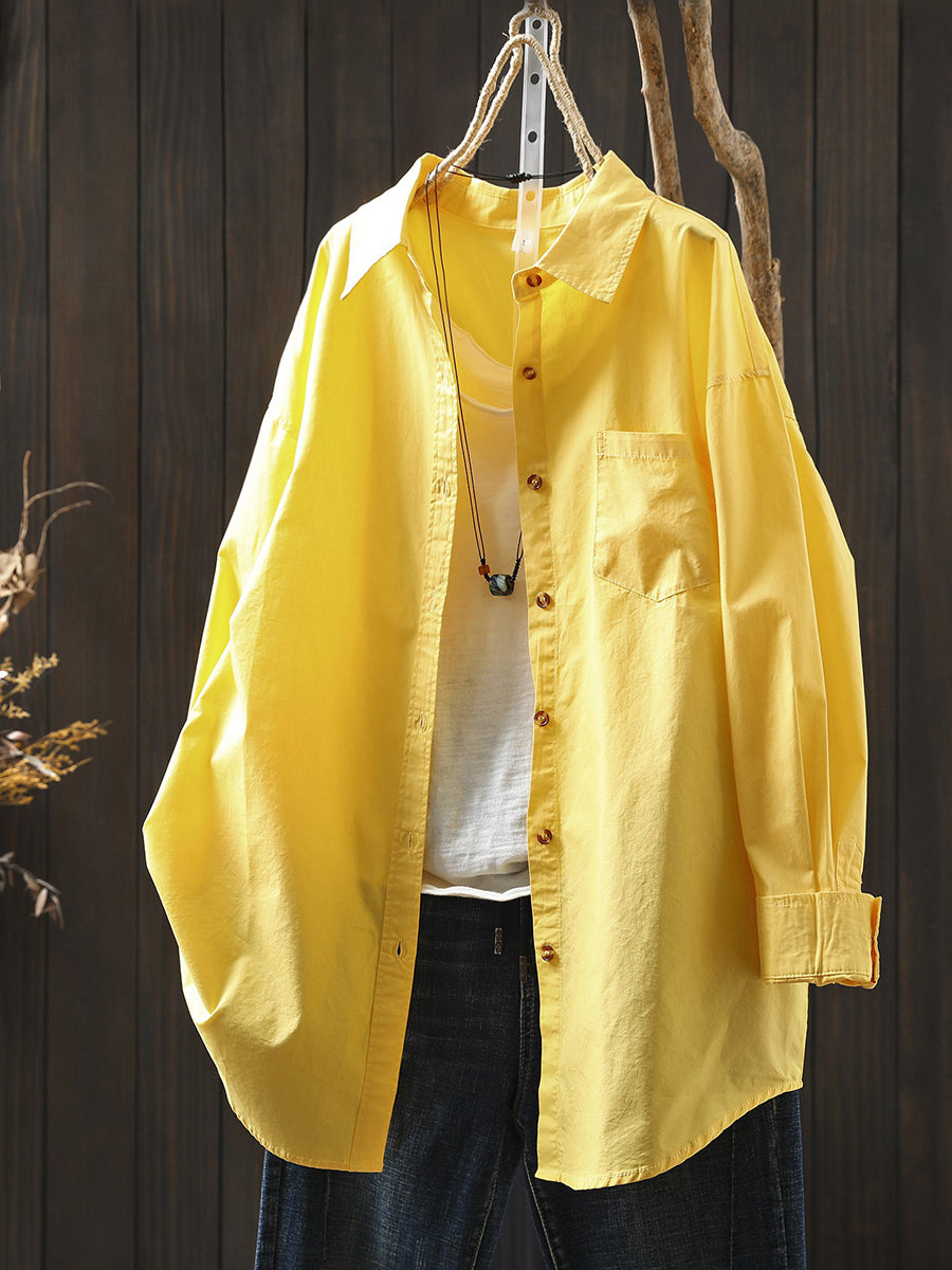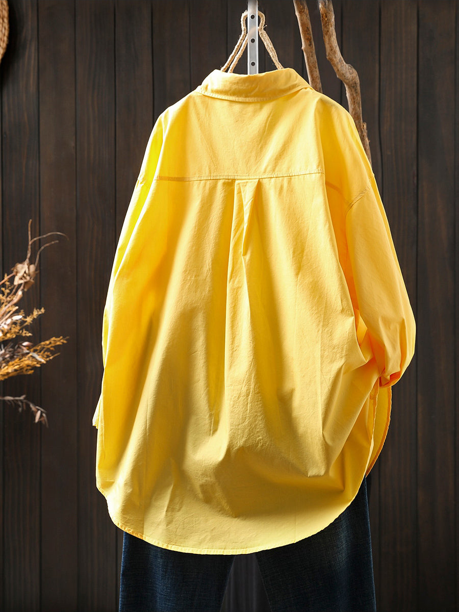Damen Frühlingsbluse aus 100% Baumwolle, künstlerisch, einfarbig