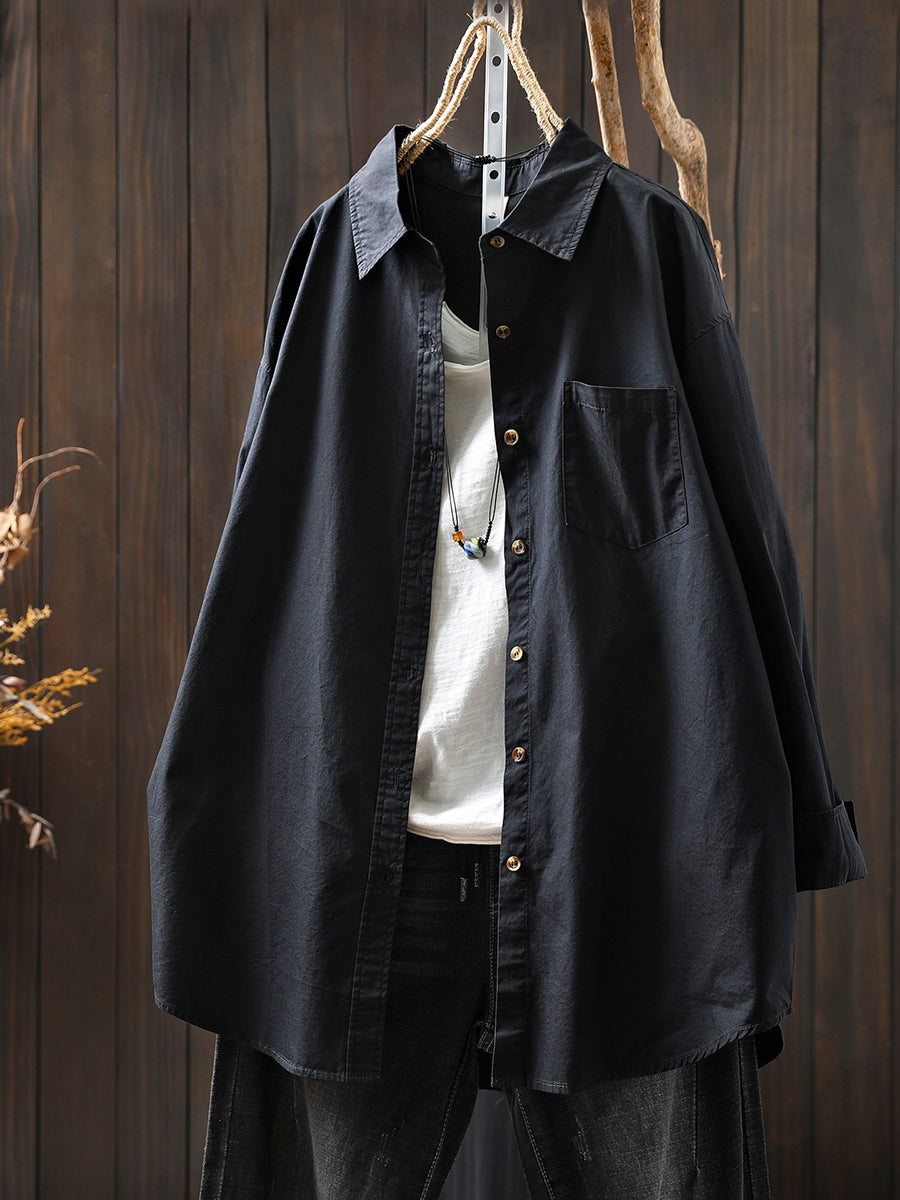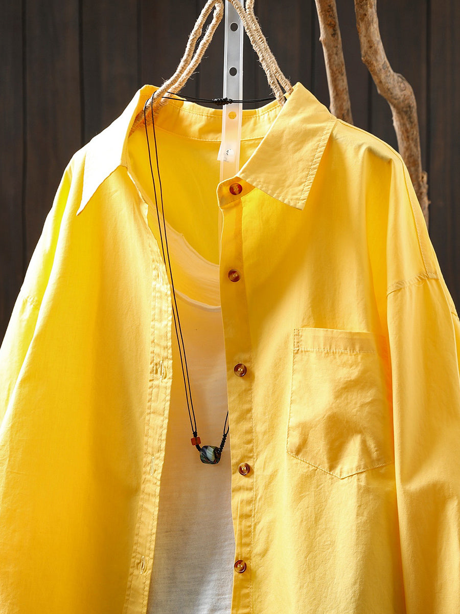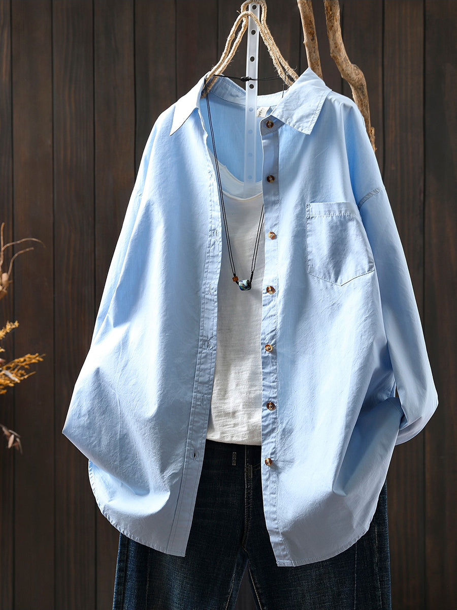 Damen Frühlingsbluse aus 100% Baumwolle, künstlerisch, einfarbig