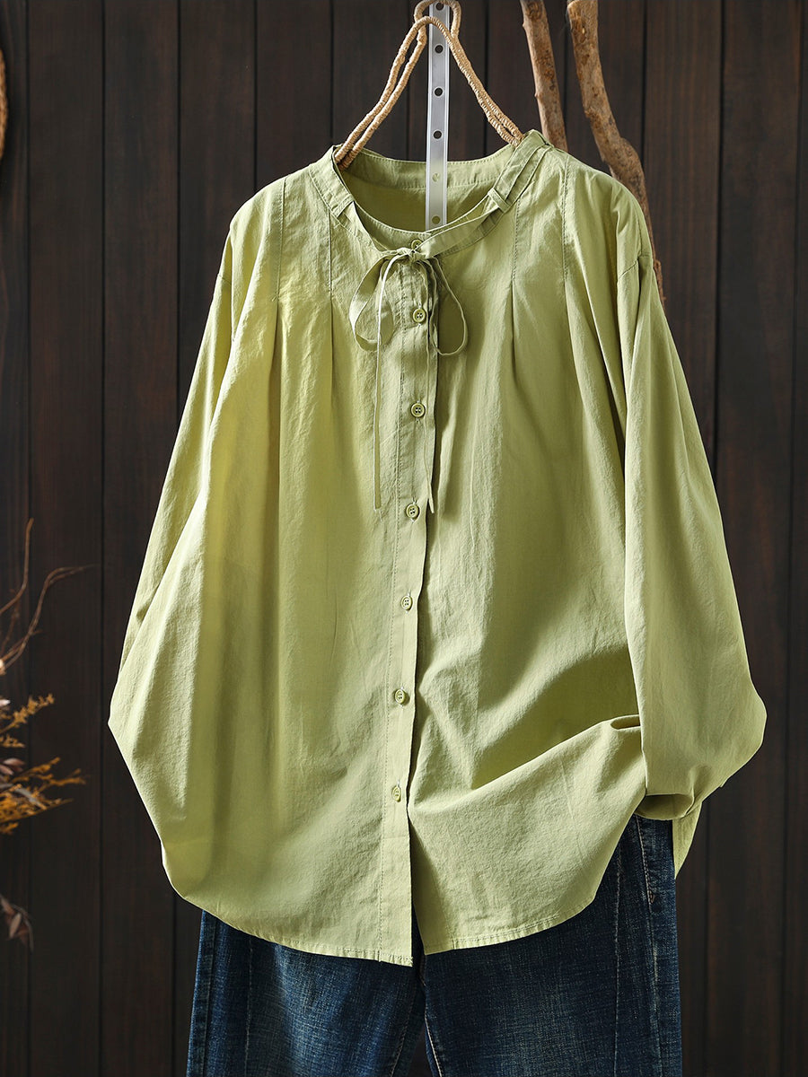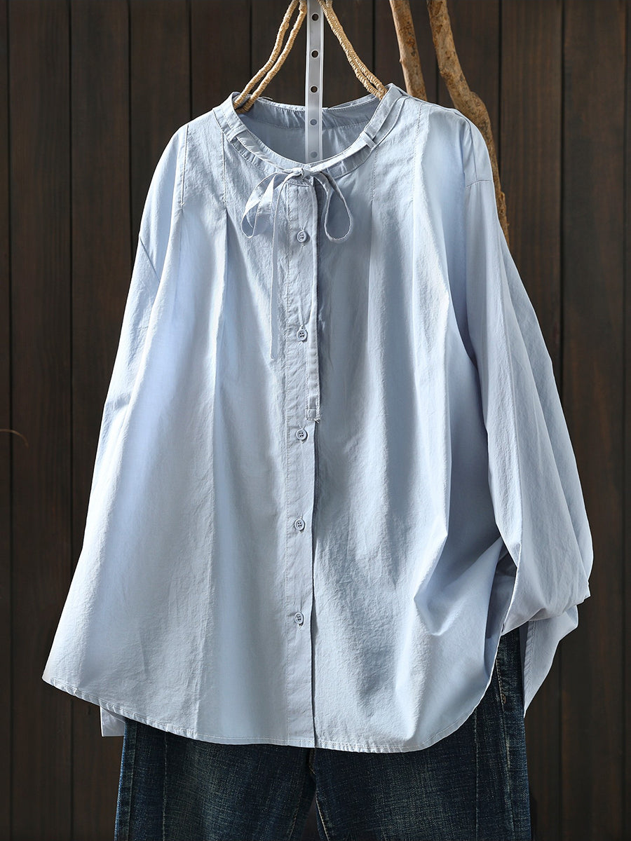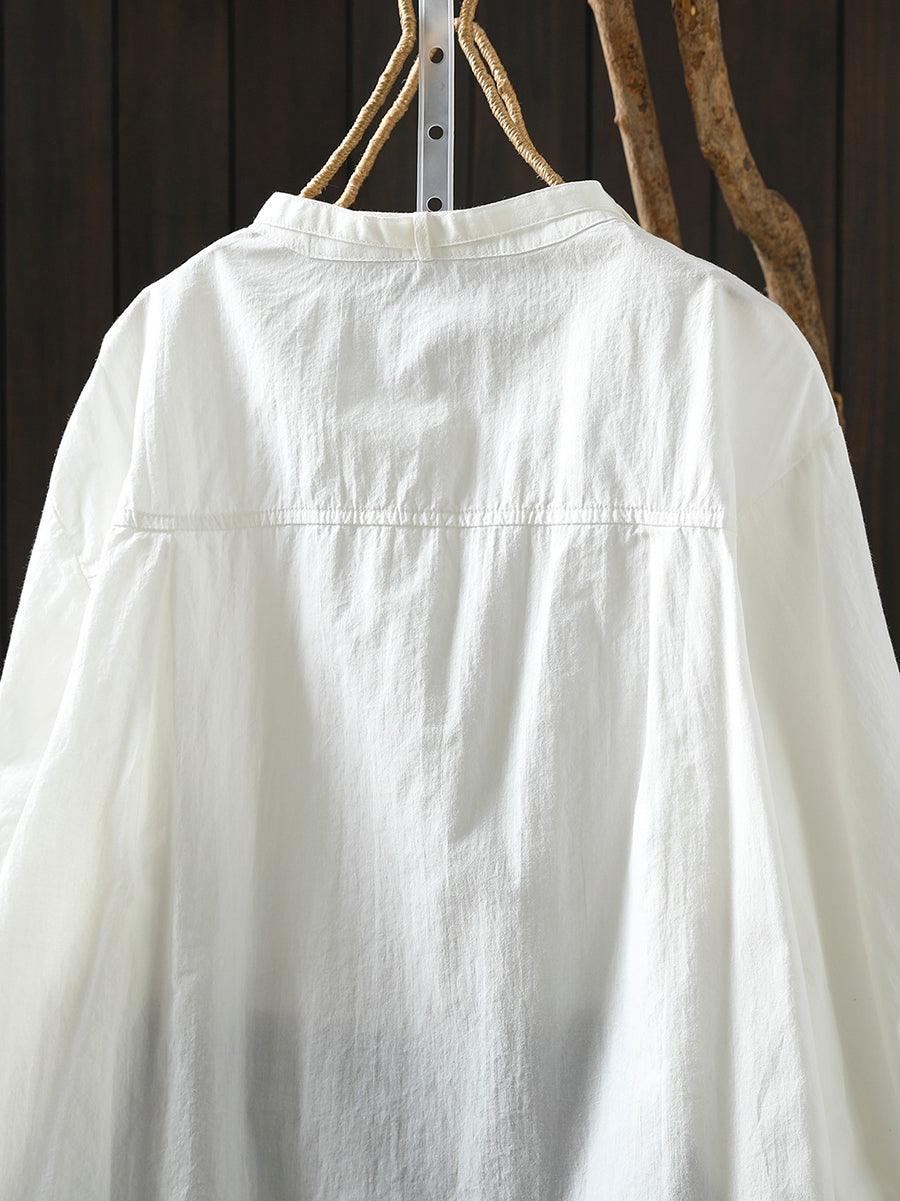 Damenbluse mit Stehkragen, einfarbig, 100 % Baumwolle, Frühlingsstil