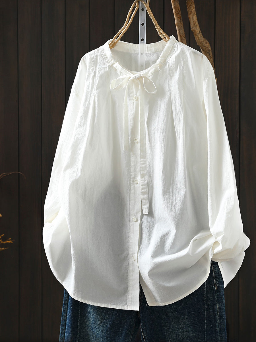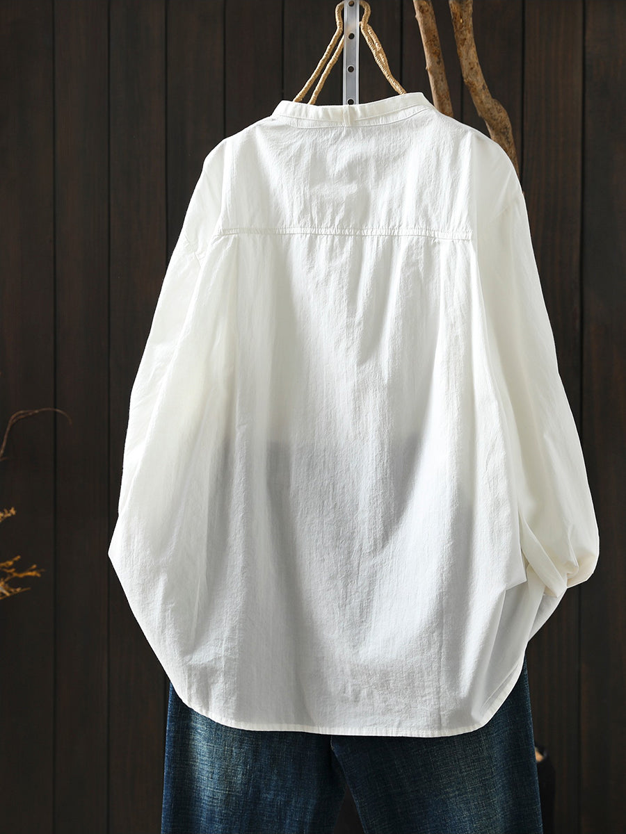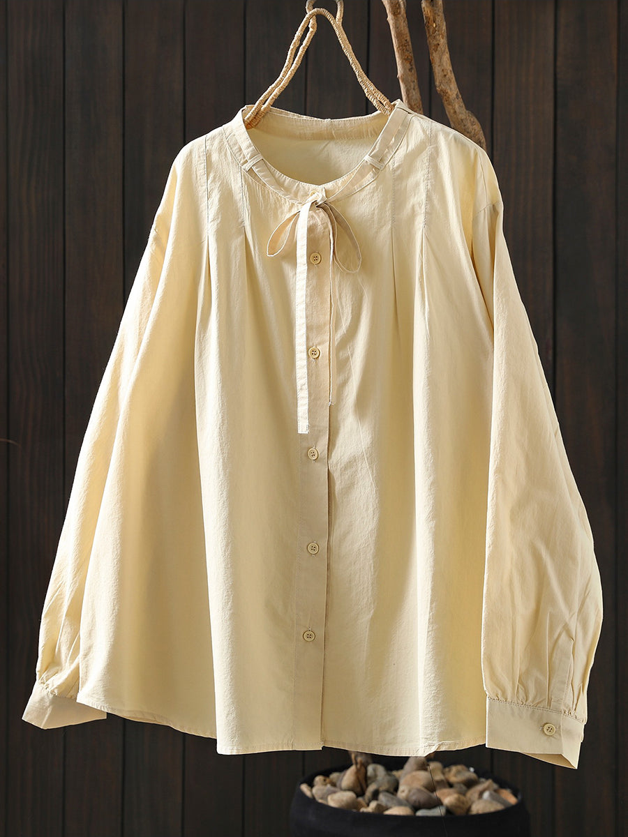 Damenbluse mit Stehkragen, einfarbig, 100 % Baumwolle, Frühlingsstil
