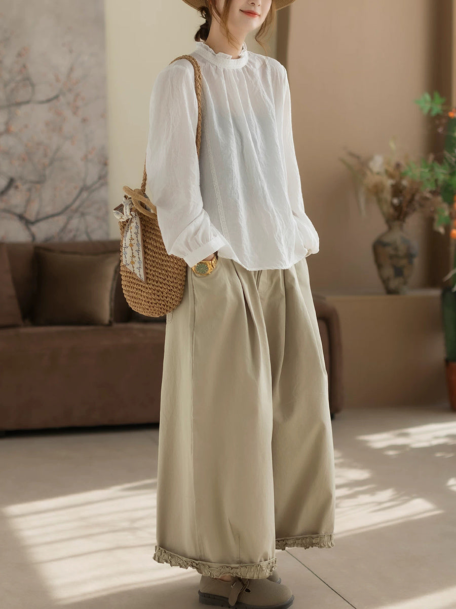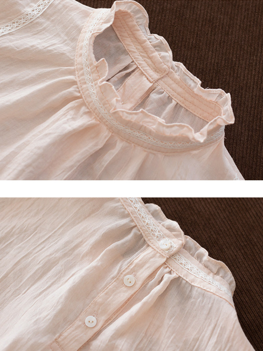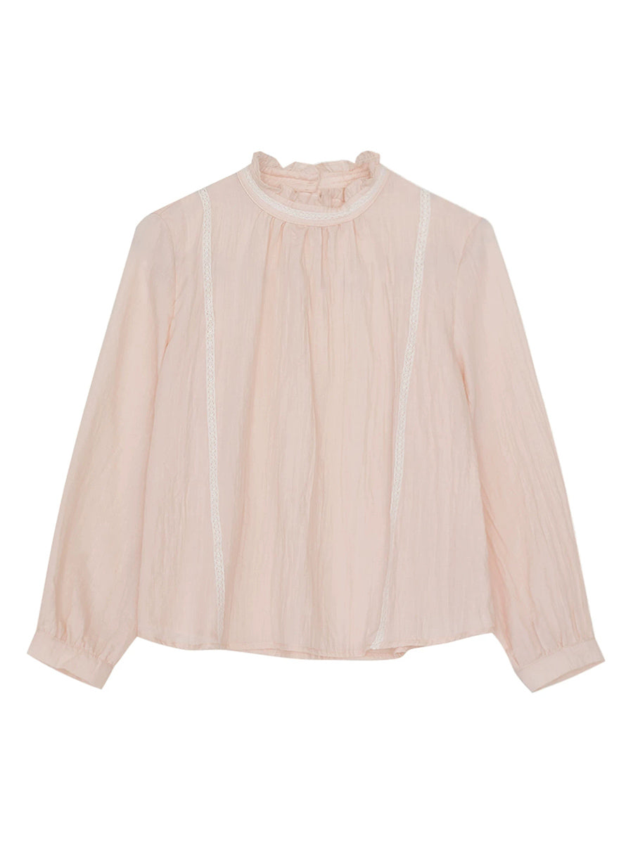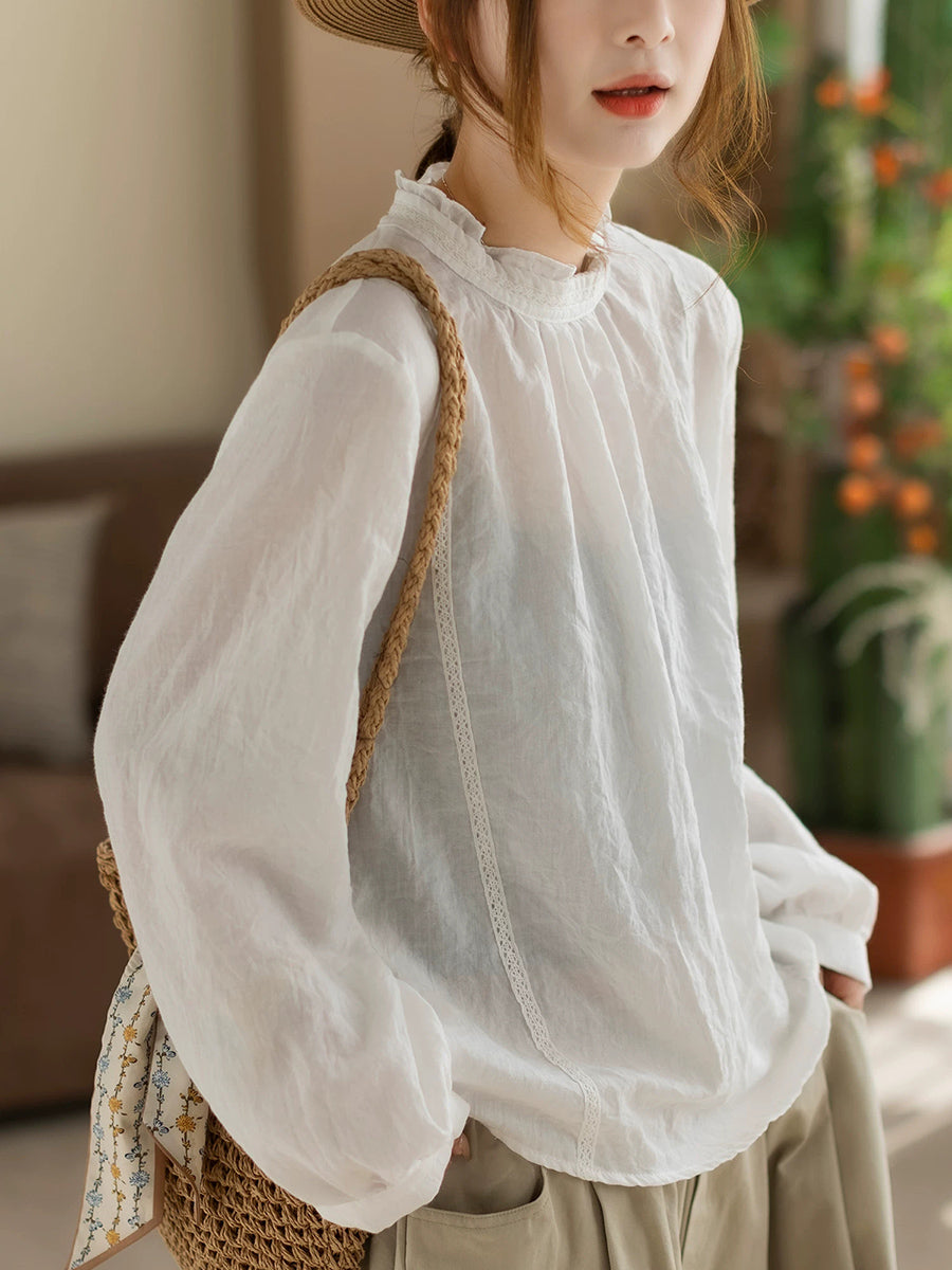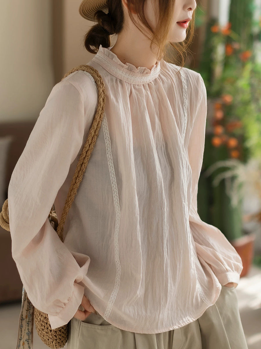 Damen Frühlingsbluse aus Baumwolle in Unifarben mit Stehkragen