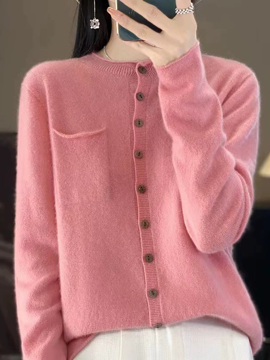 Damen Frühlings-Cardigan mit Rundhalsausschnitt, künstlerisch, einfarbig