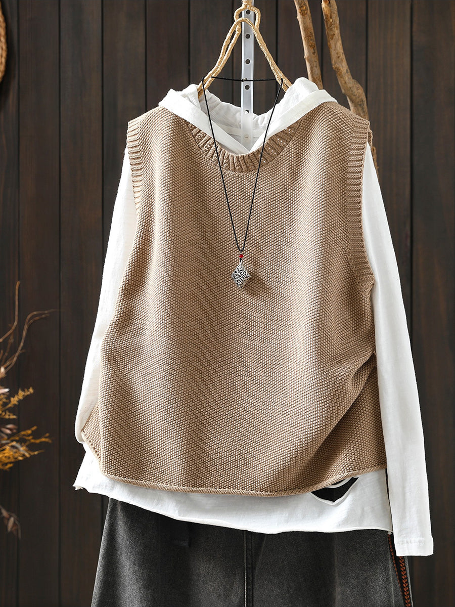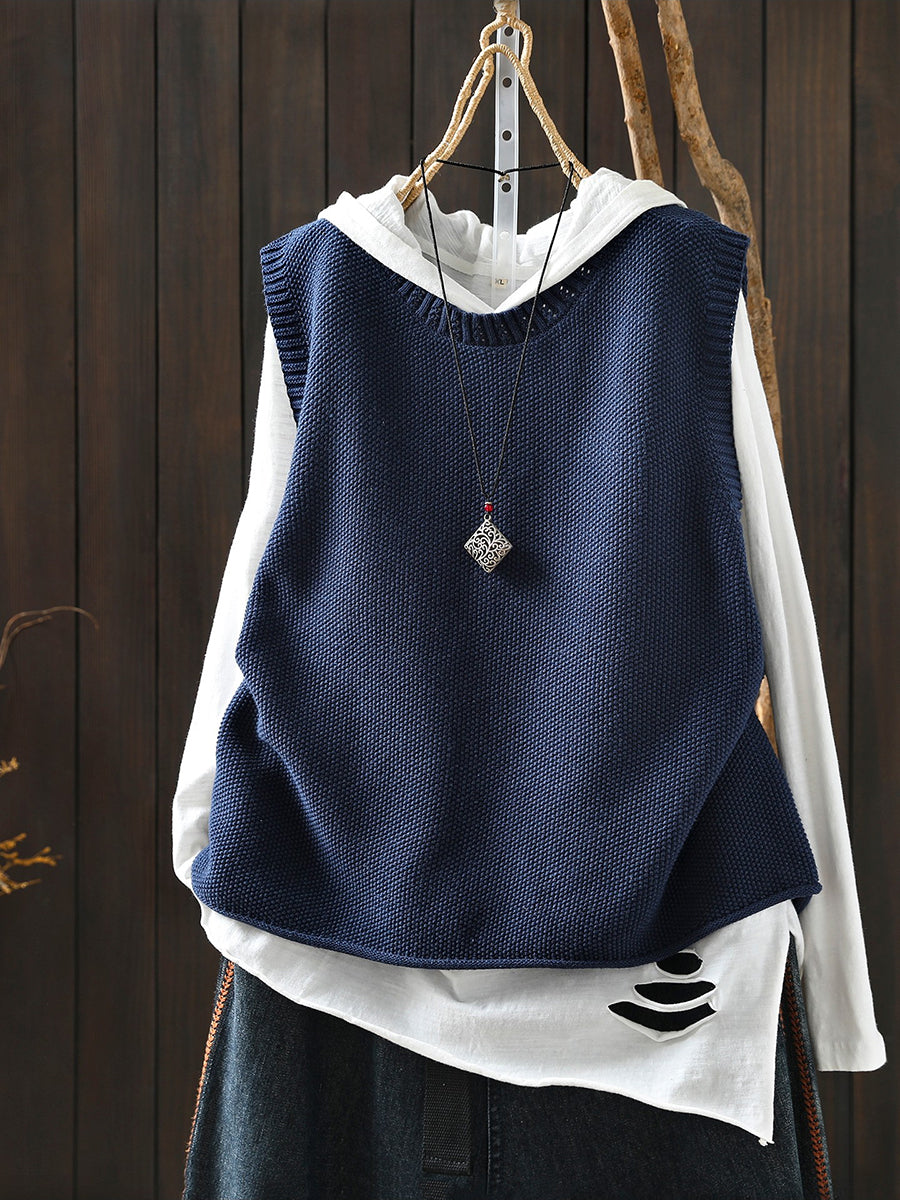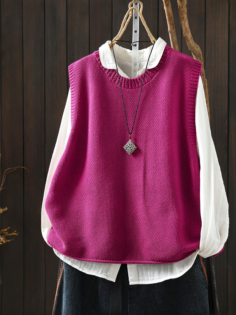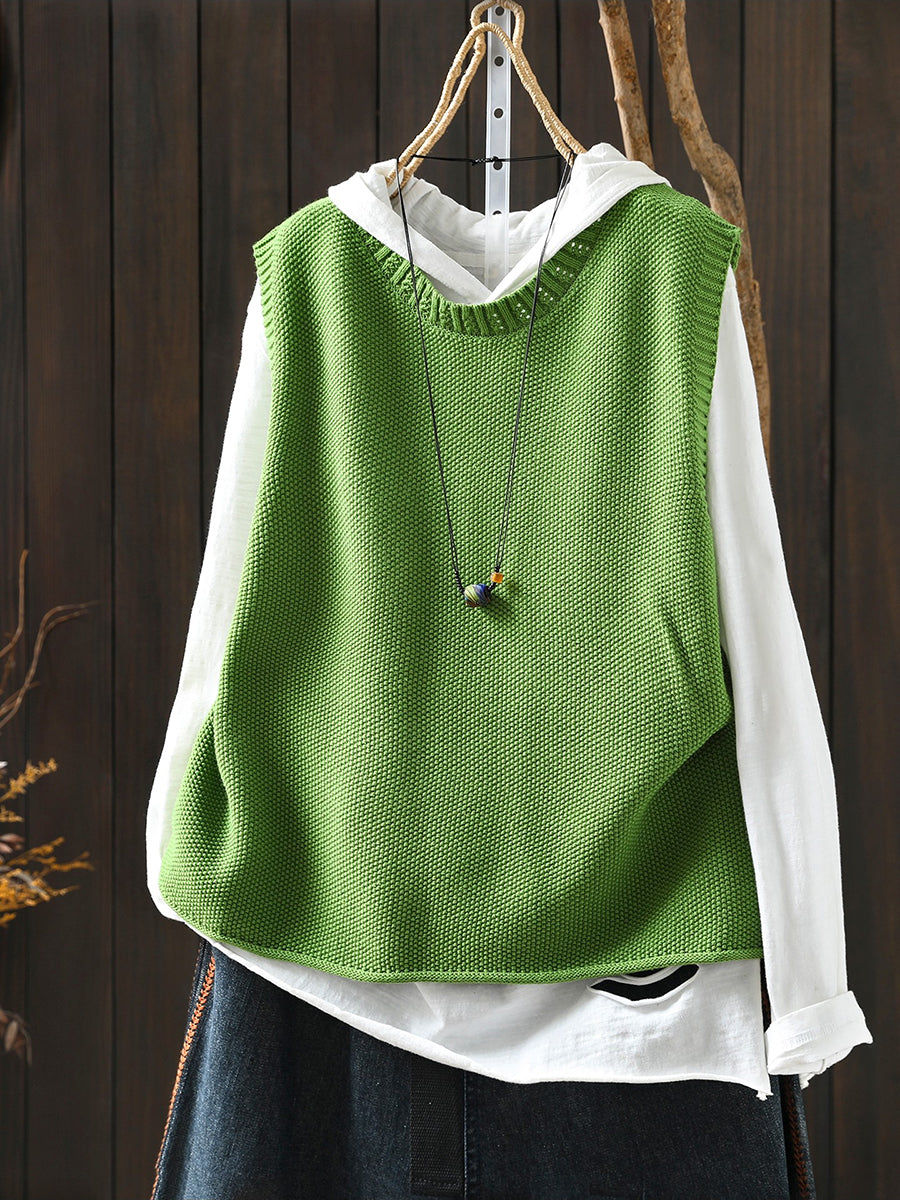 Damen Frühlings-Strickweste mit Rundhalsausschnitt, einfarbig, künstlerisch gestaltet