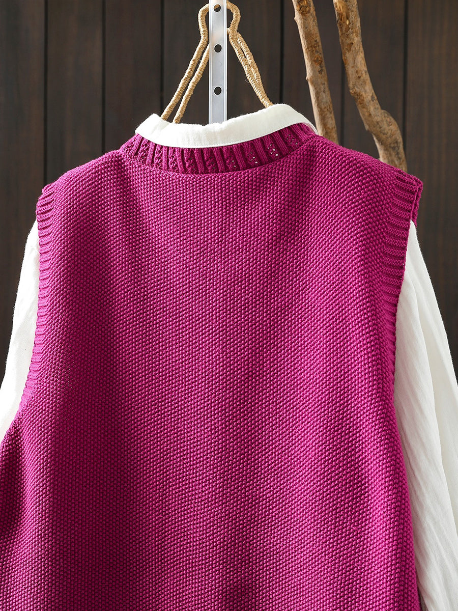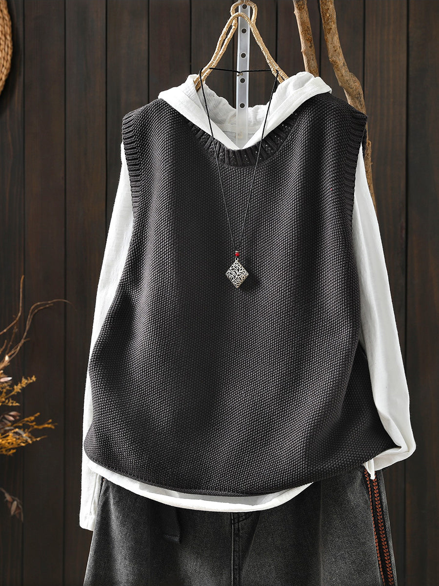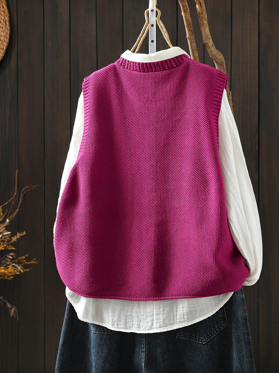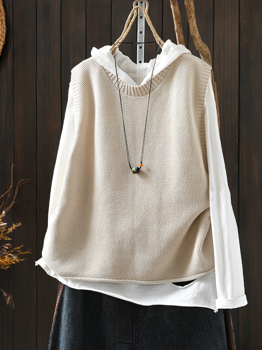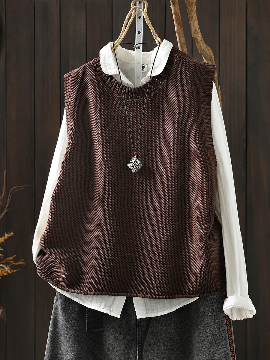 Damen Frühlings-Strickweste mit Rundhalsausschnitt, einfarbig, künstlerisch gestaltet
