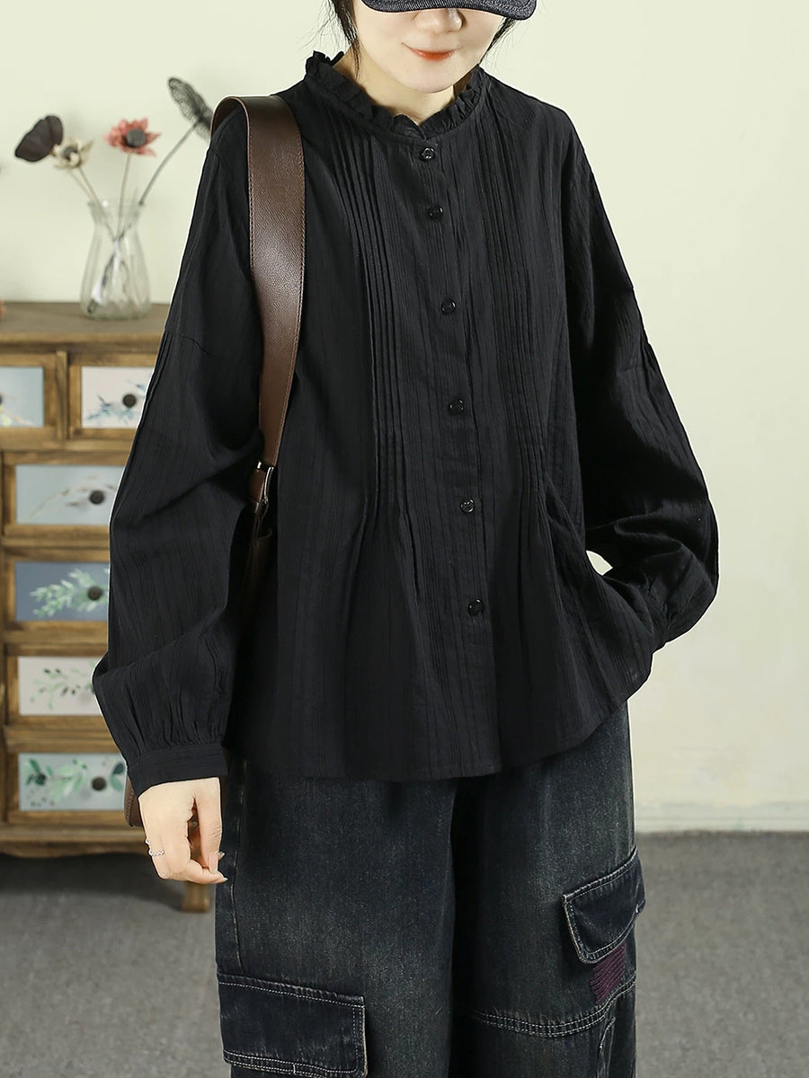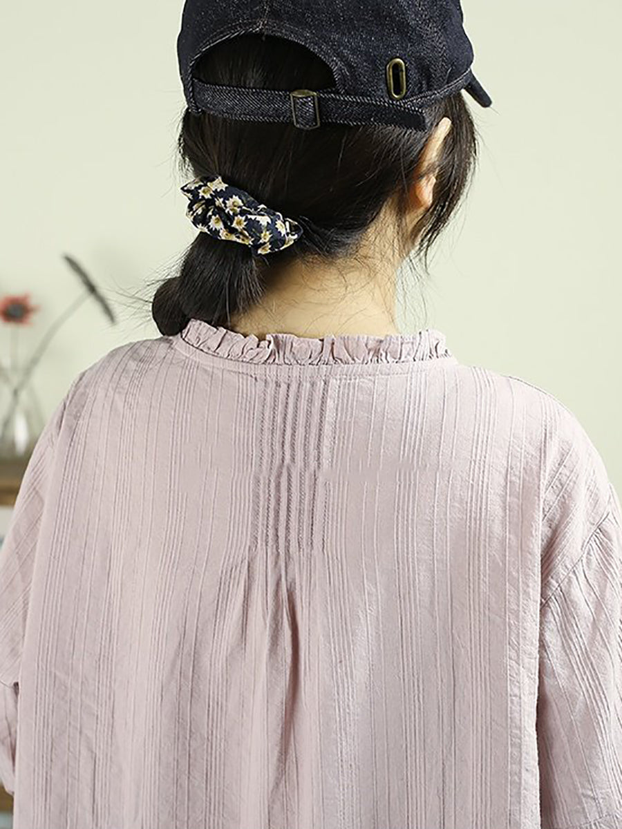 Damen Frühlingsbluse mit Stehkragen, künstlerisch, einfarbig, mit Streifenmuster