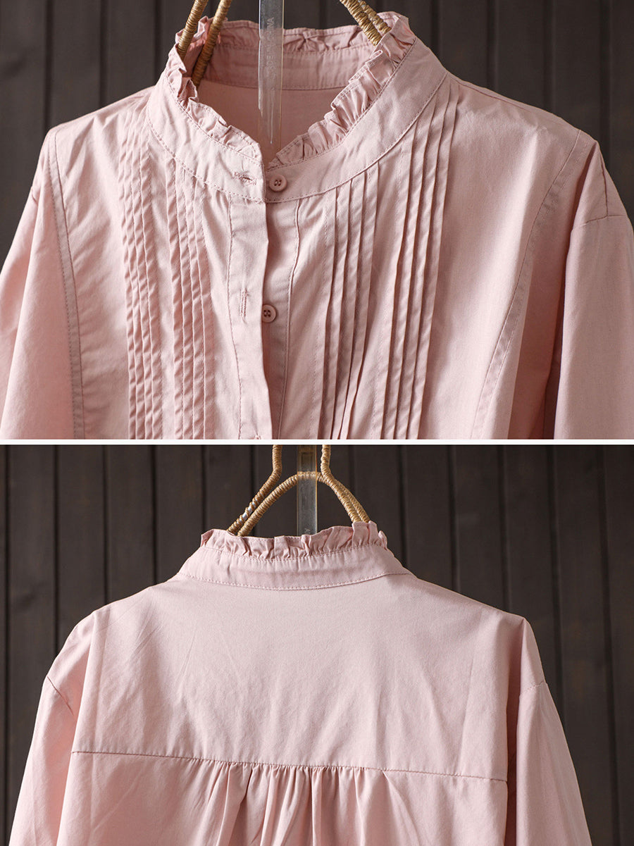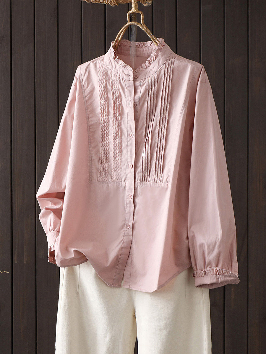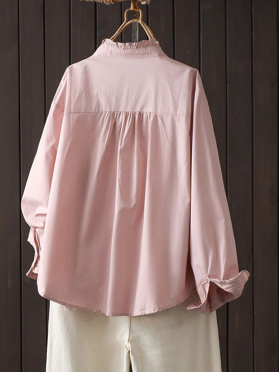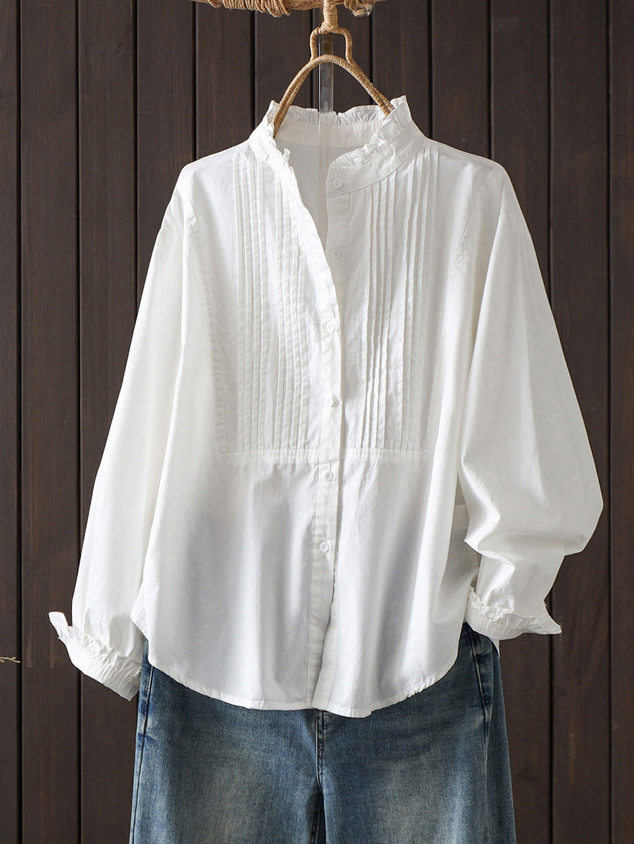 Damen Frühlingsbluse aus 100% Baumwolle, künstlerisch, einfarbig, gerafft