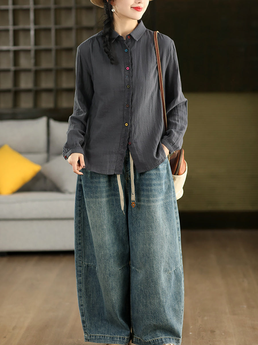 Damen Frühlingshemd aus 100% Baumwolle mit künstlerischem Muster