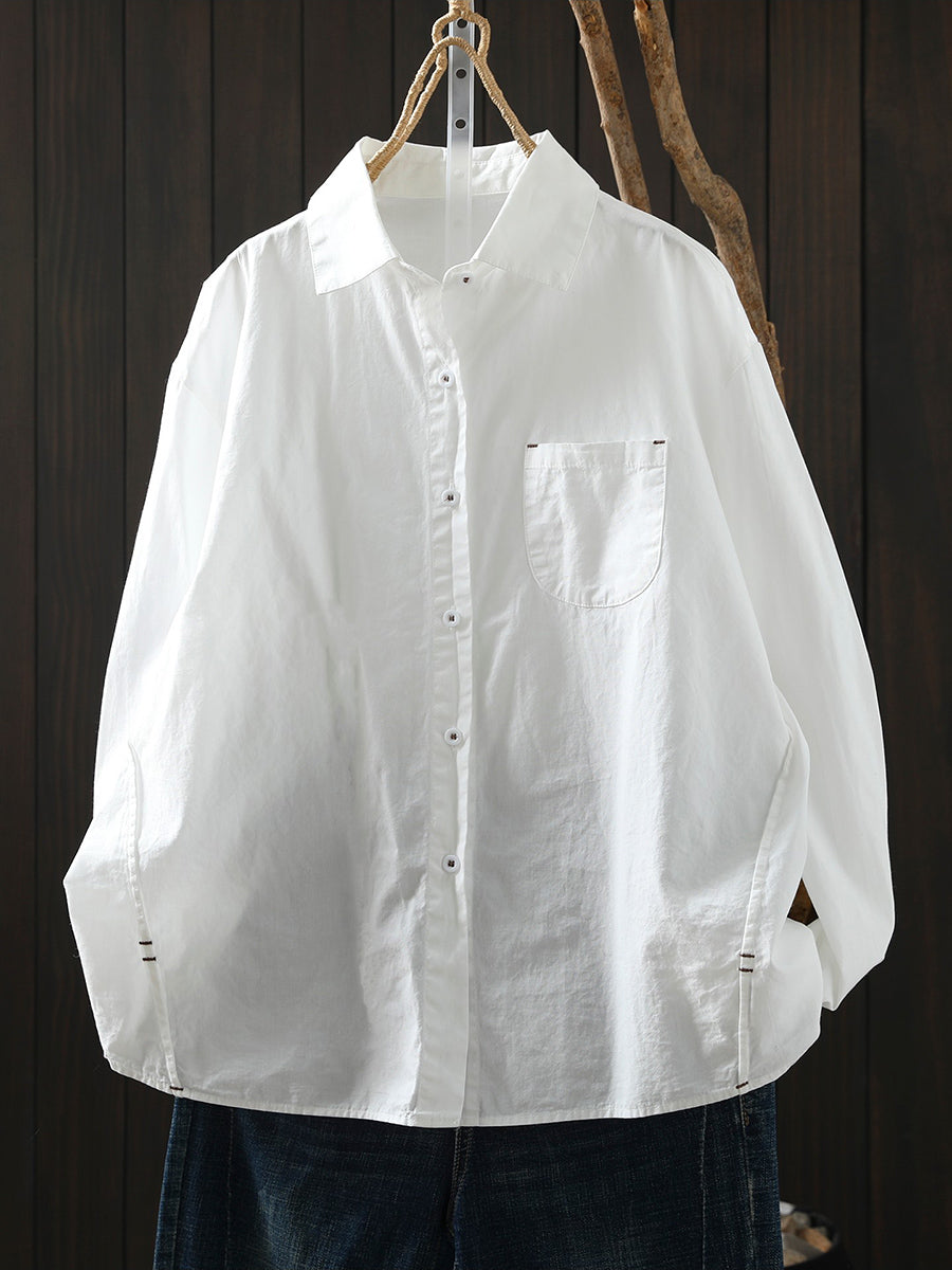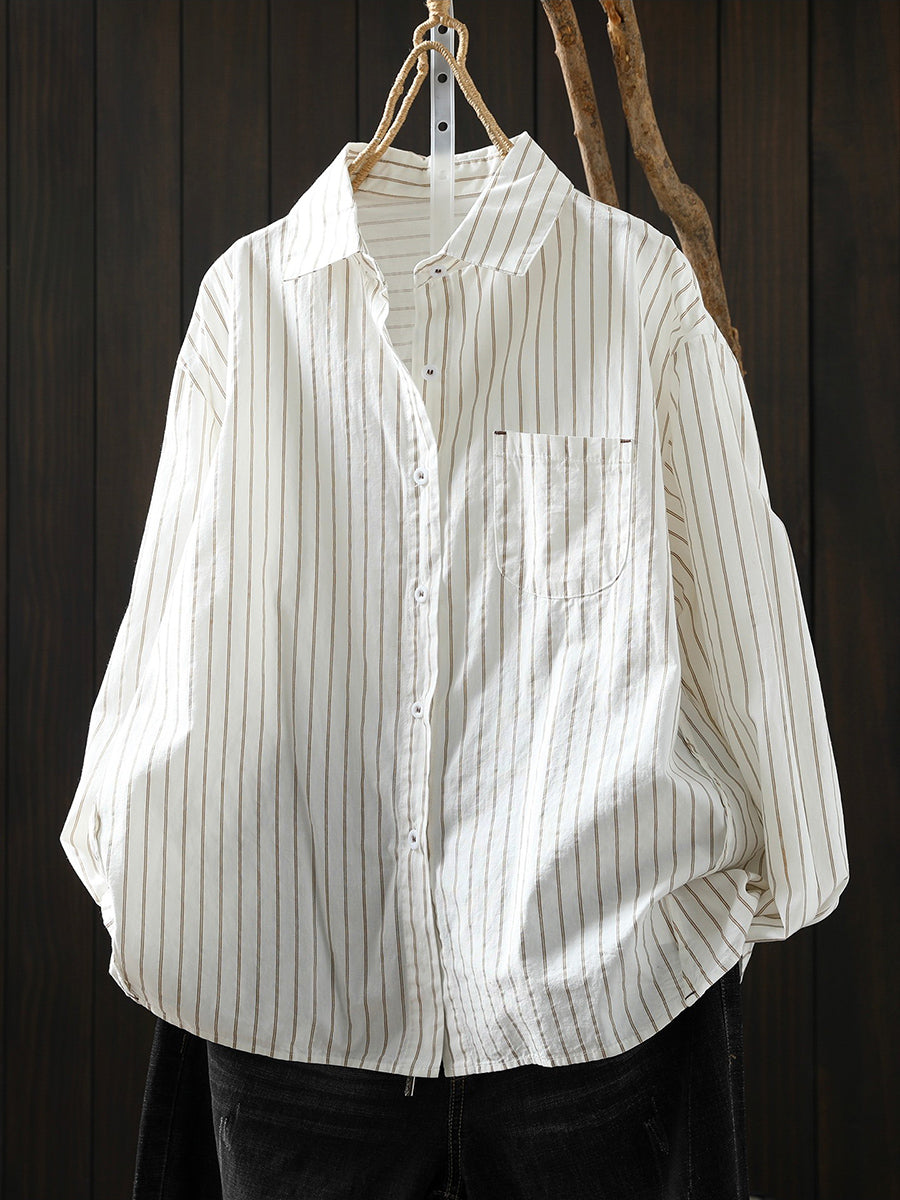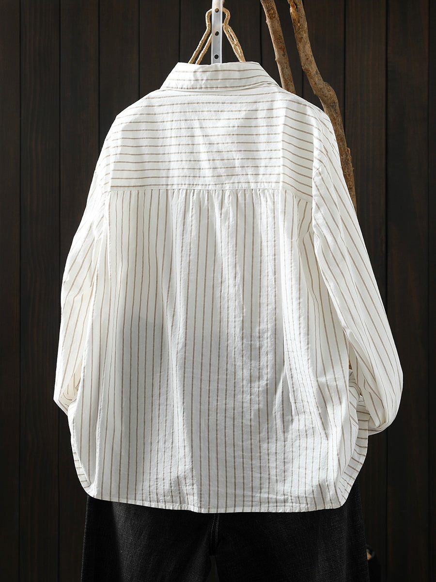 Damen Frühlingshemd mit künstlerischem Streifenmuster aus 100 % Baumwolle
