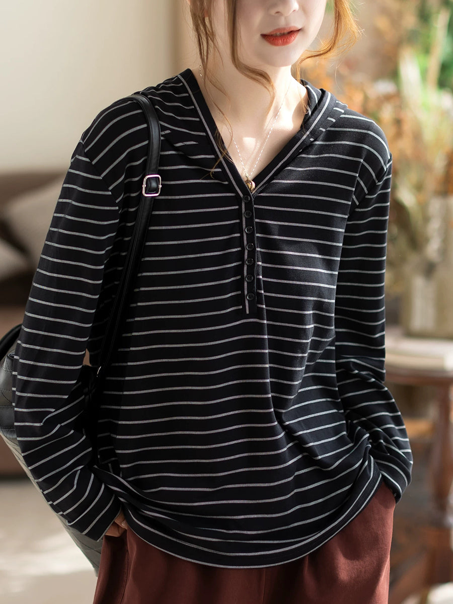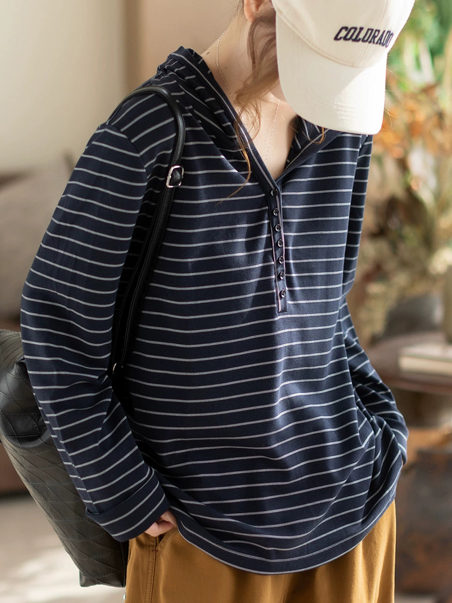 Damen Frühlingsbluse mit künstlerischem Streifenmuster, Baumwoll-Hoodie