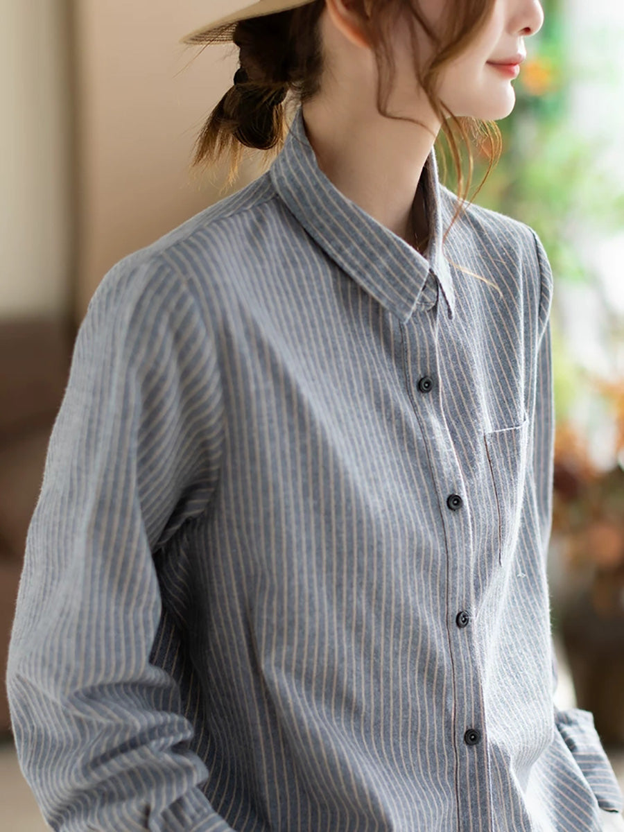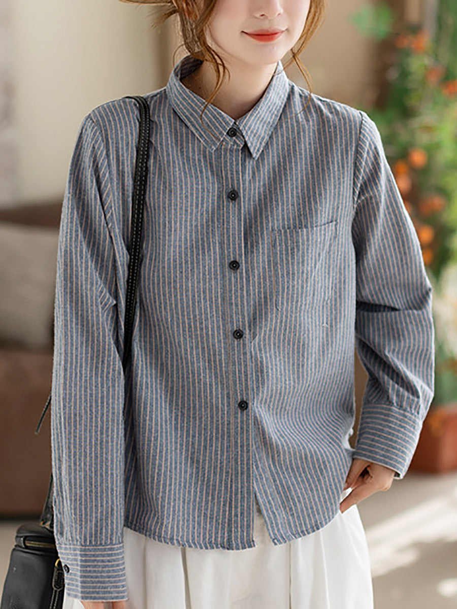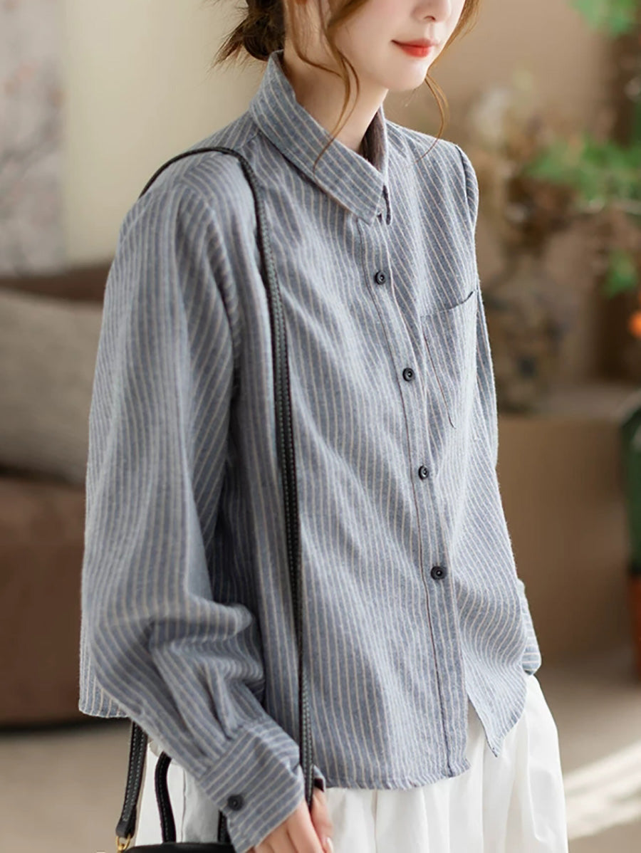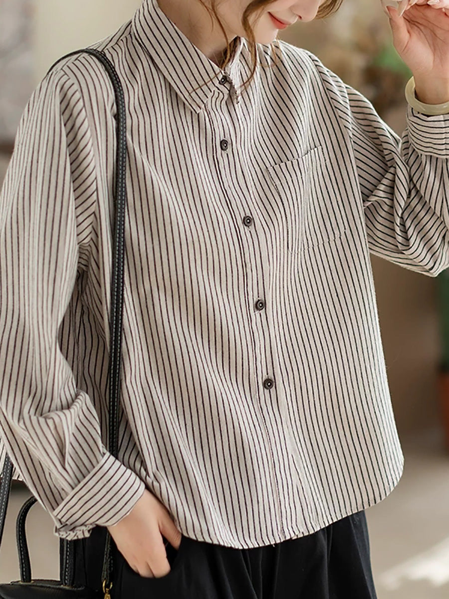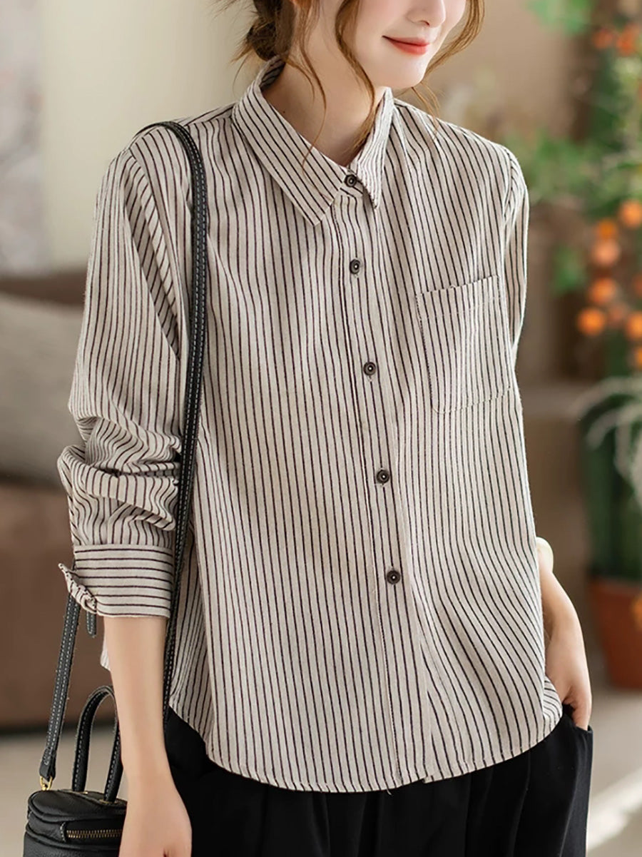 Damen Frühlingsbluse aus Baumwolle mit künstlerischem Streifenmuster
