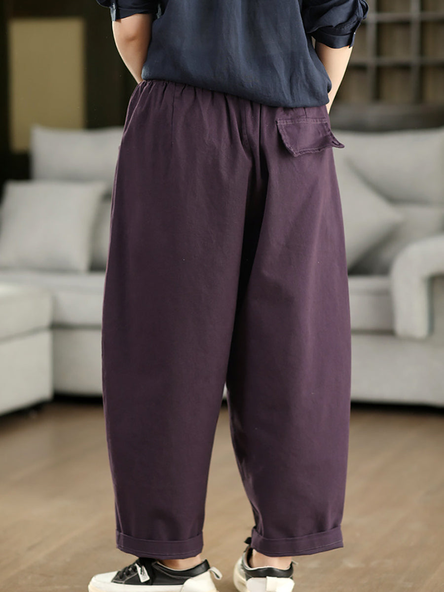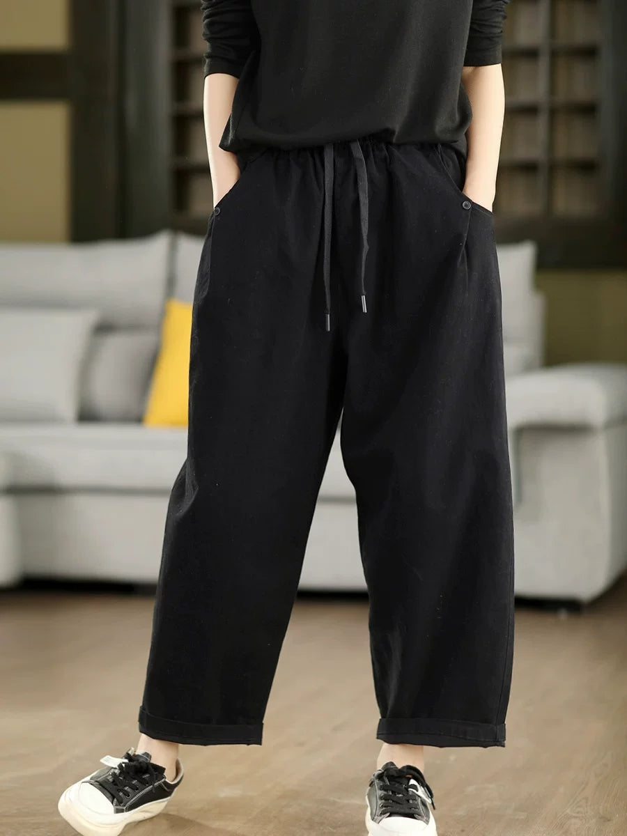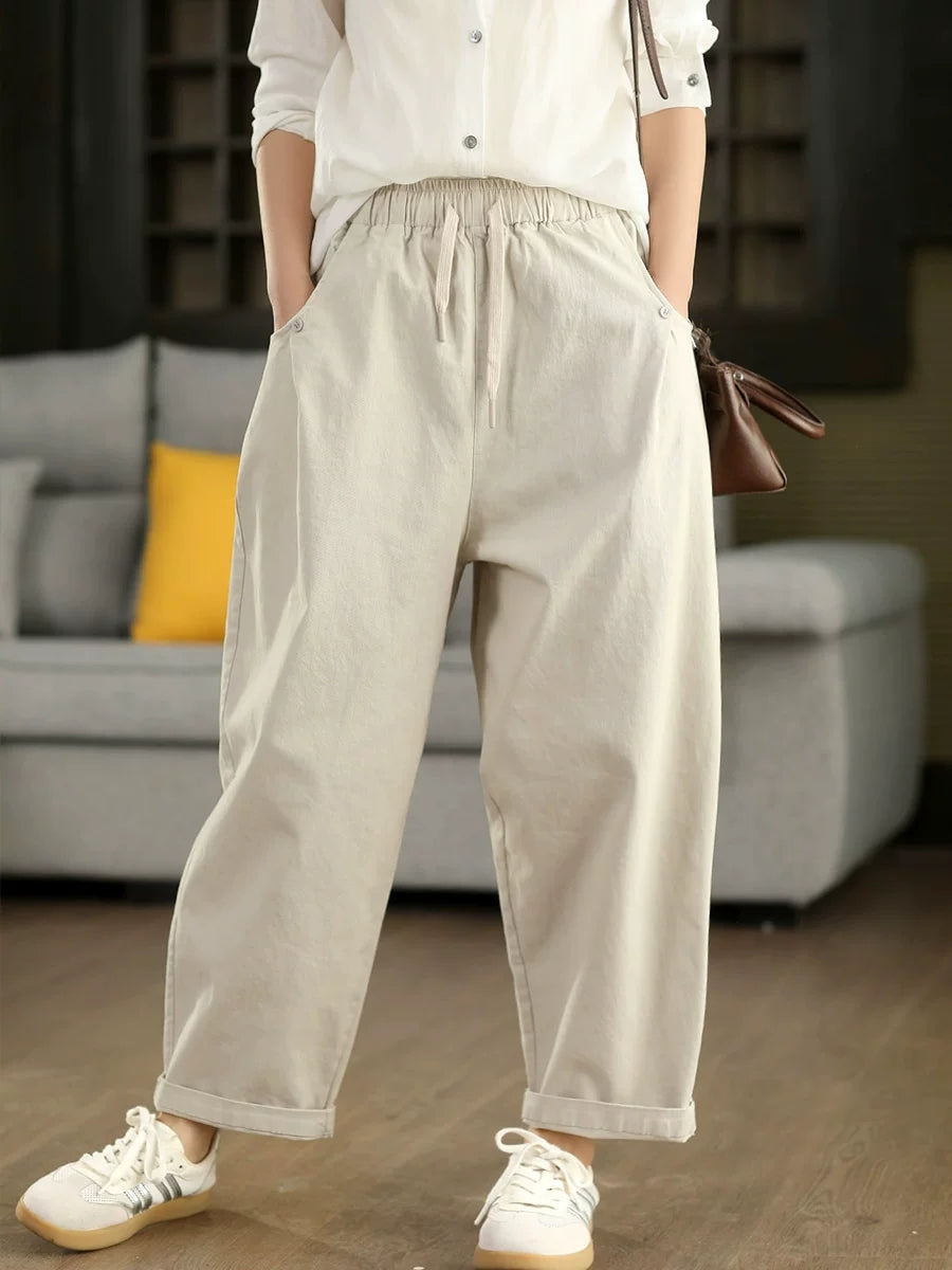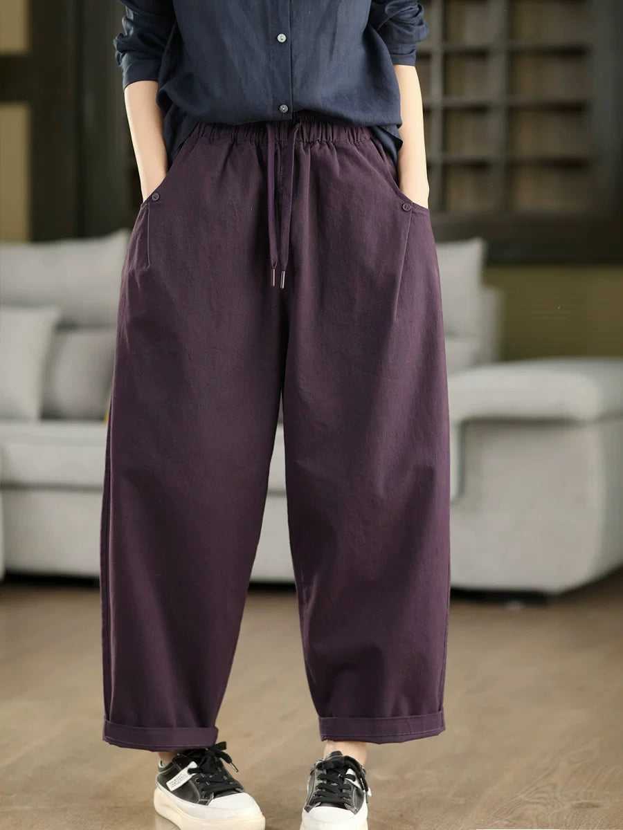 Lässige Damen-Haremshose aus 100 % Baumwolle, einfarbig, für den Frühling