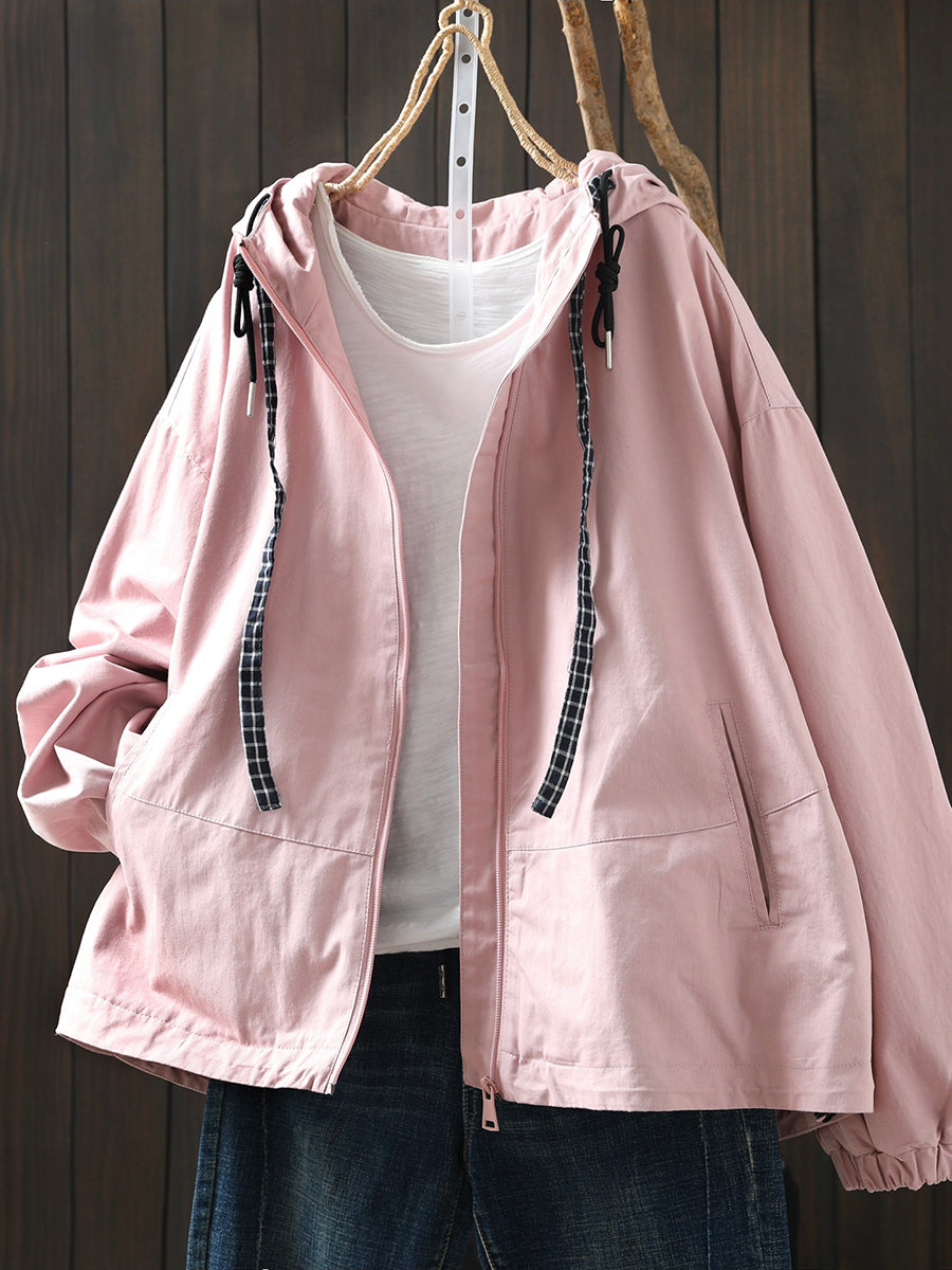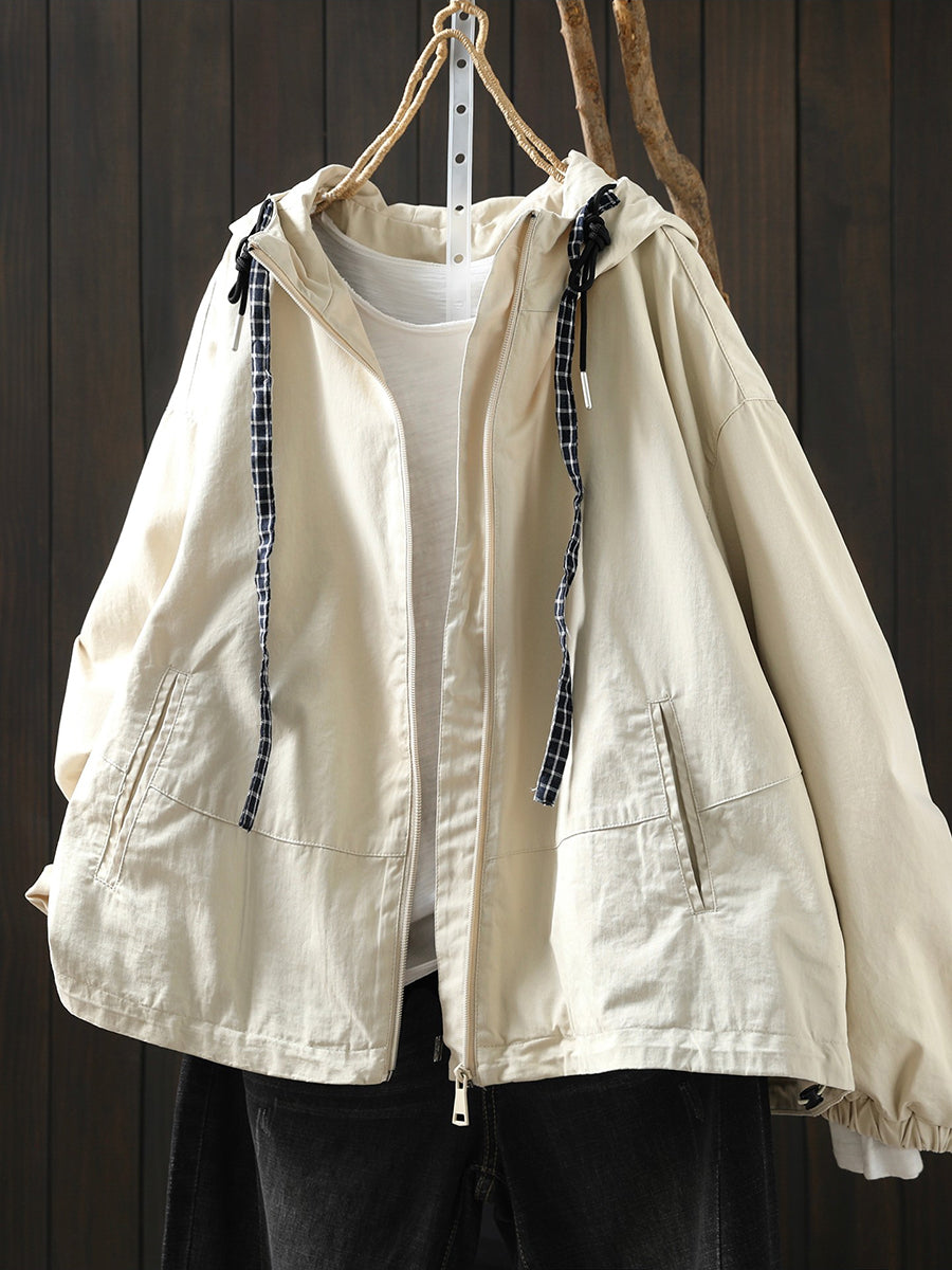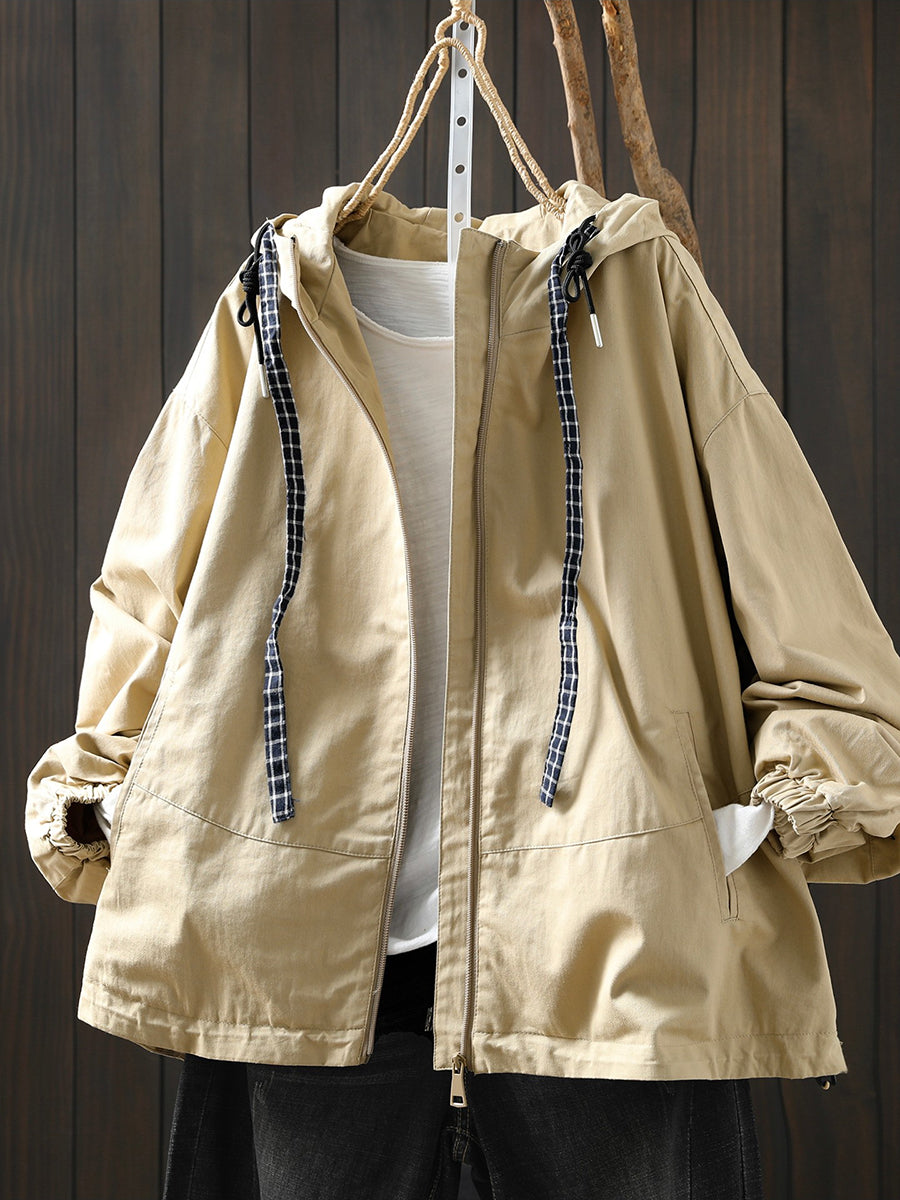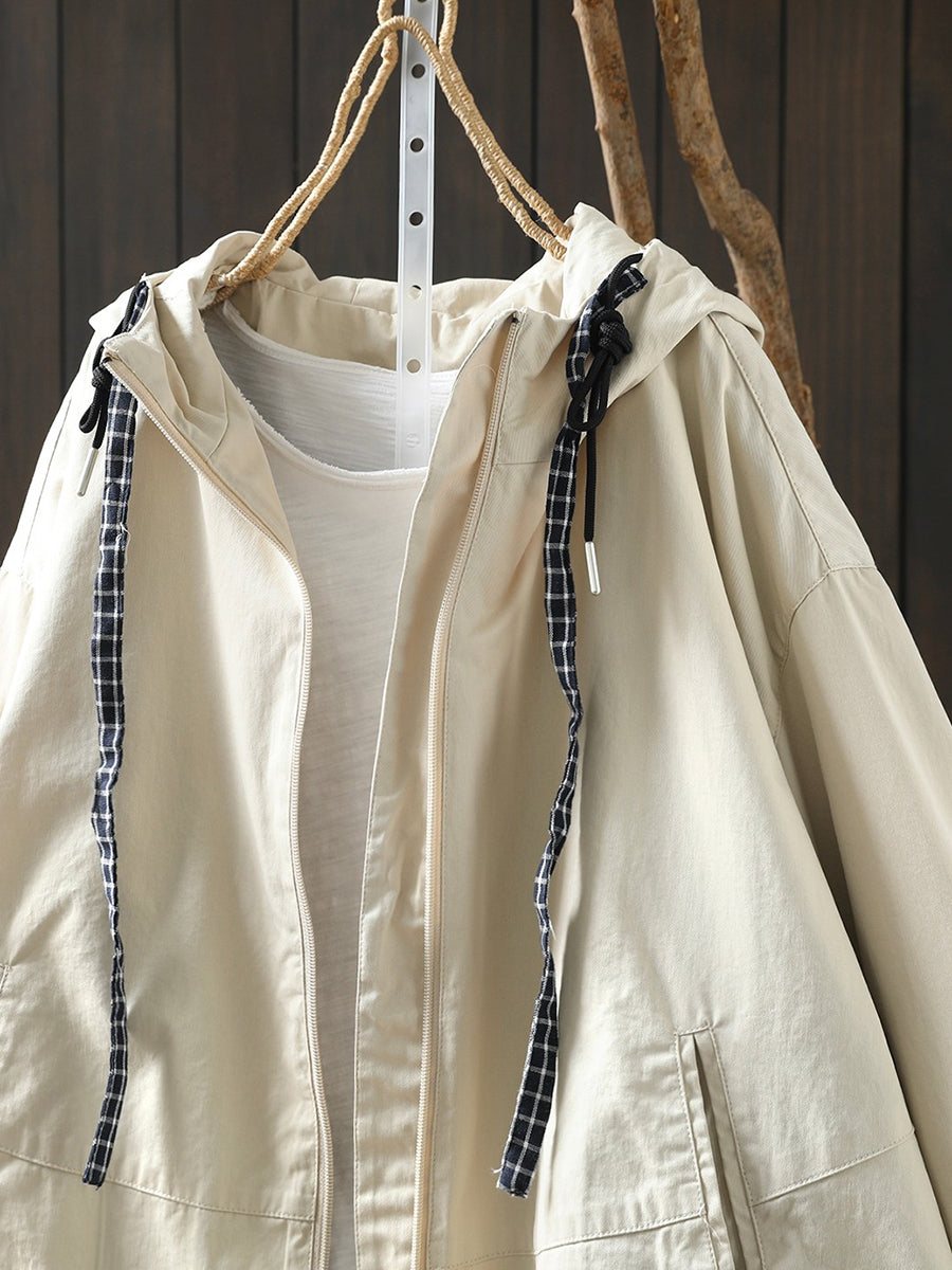 Damen-Frühlingsmantel mit Kapuze, einfarbig, 100 % Baumwolle, lässig