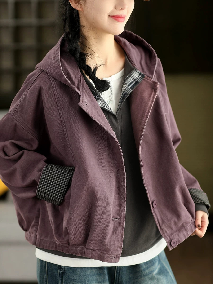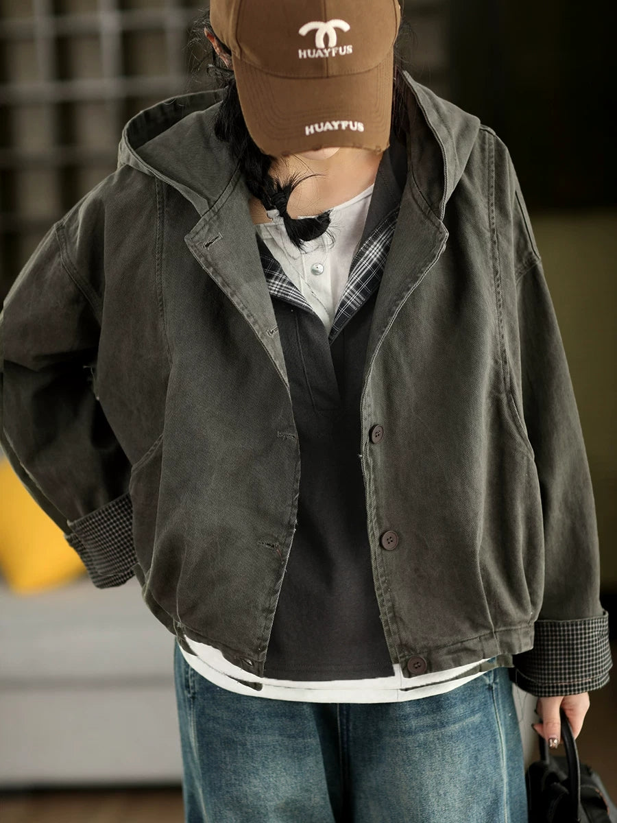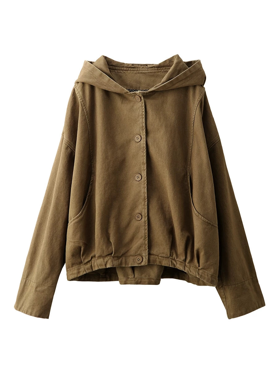 Damen-Frühlingsmantel mit Kapuze, einfarbig, 100 % Baumwolle, lässig