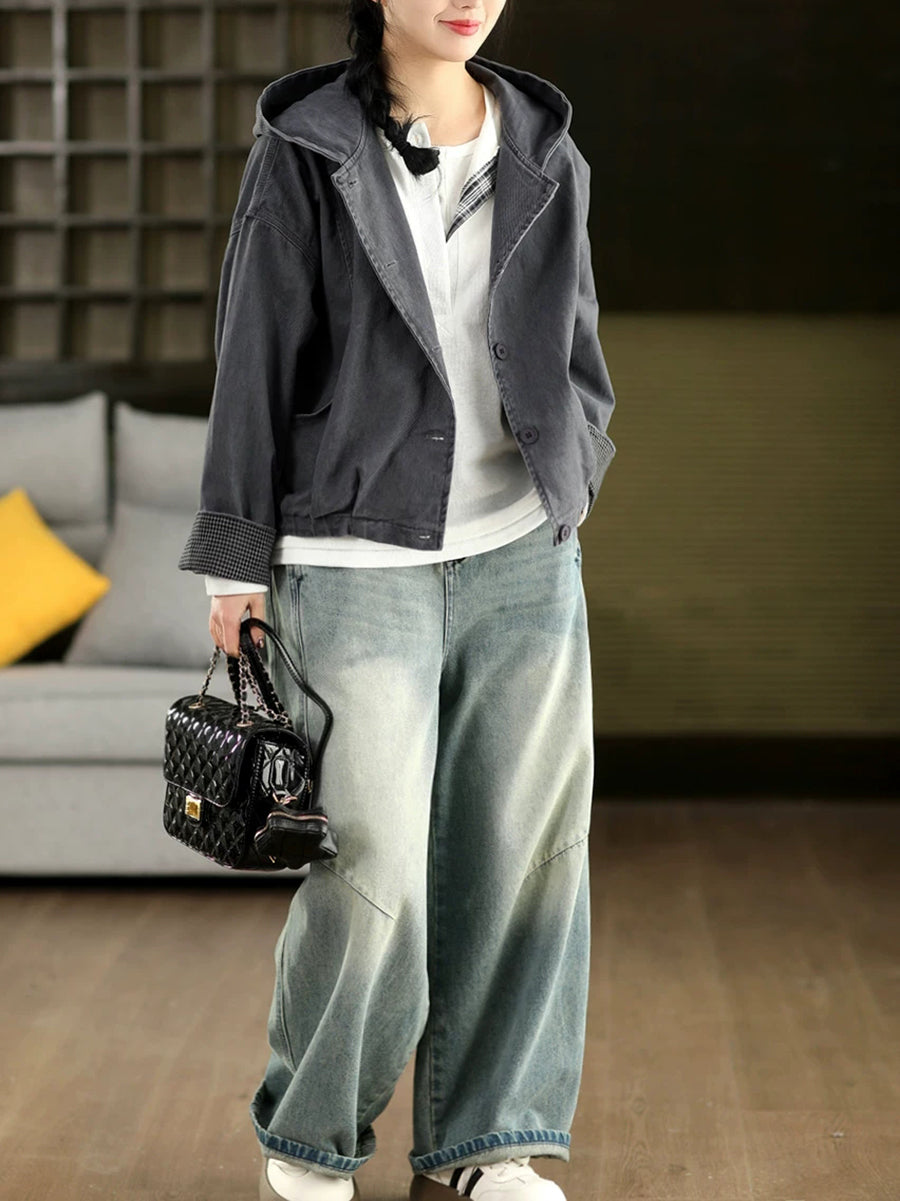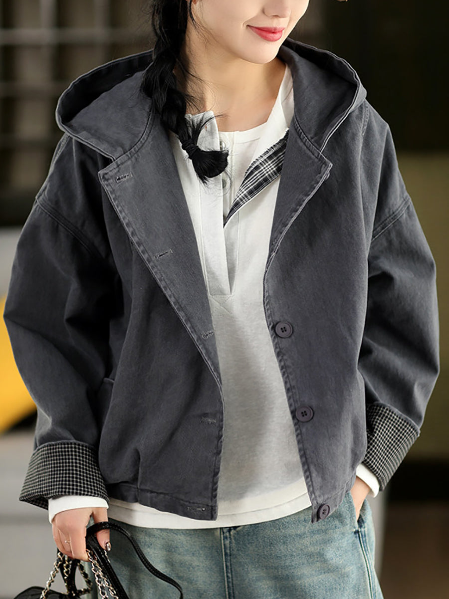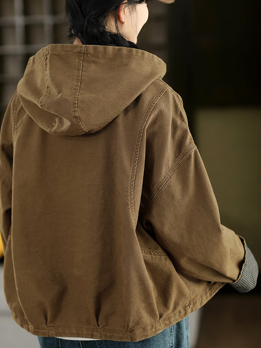Damen-Frühlingsmantel mit Kapuze, einfarbig, 100 % Baumwolle, lässig