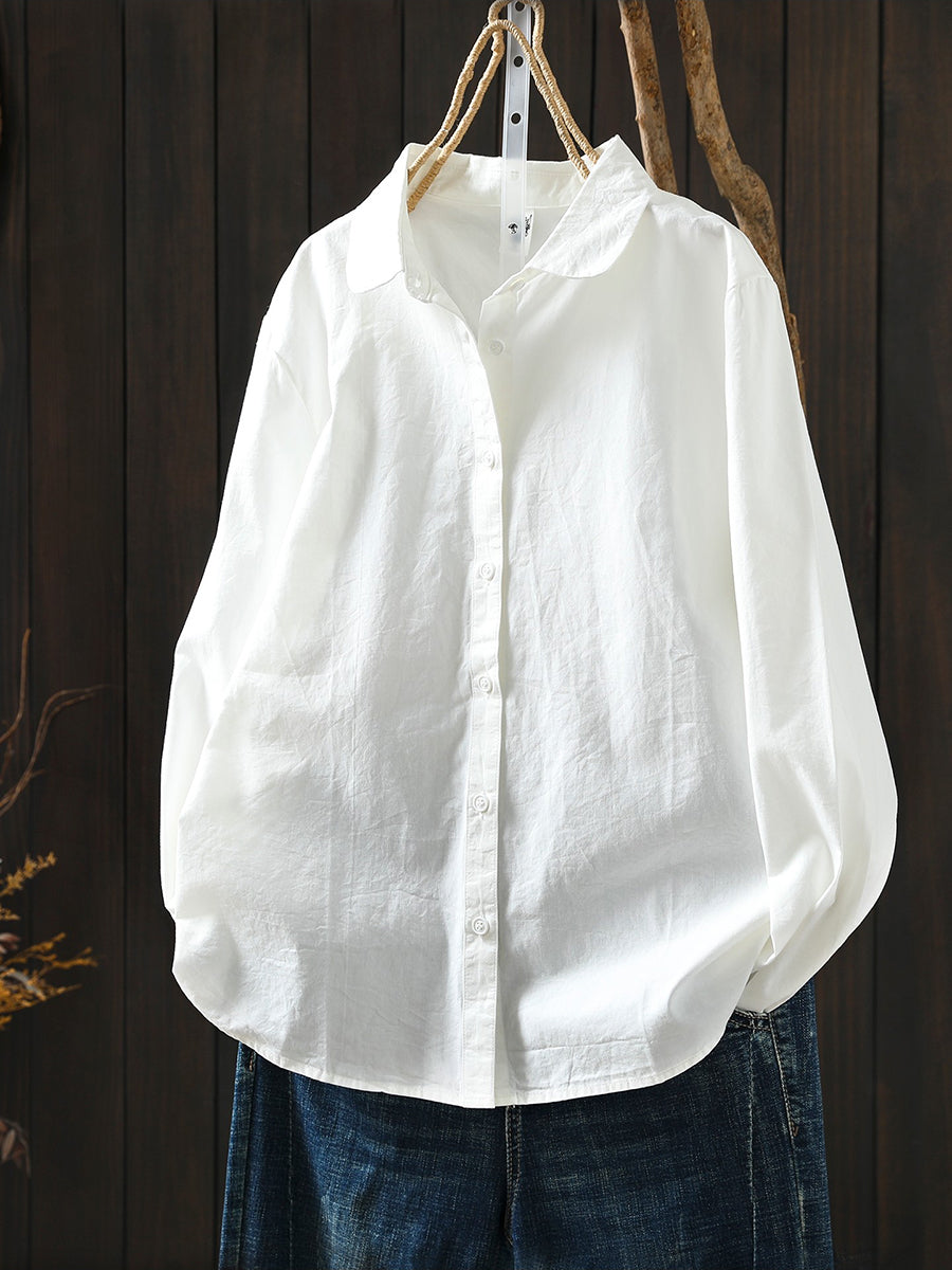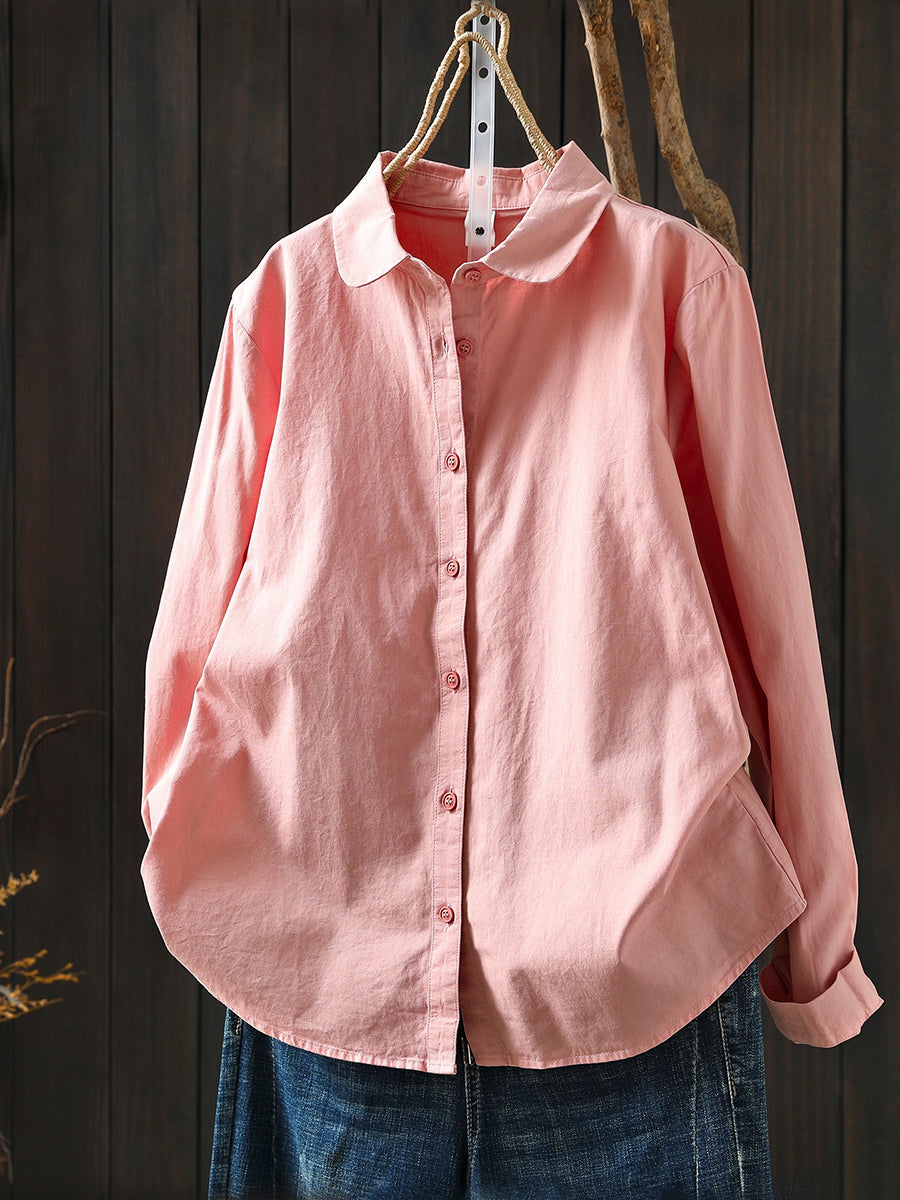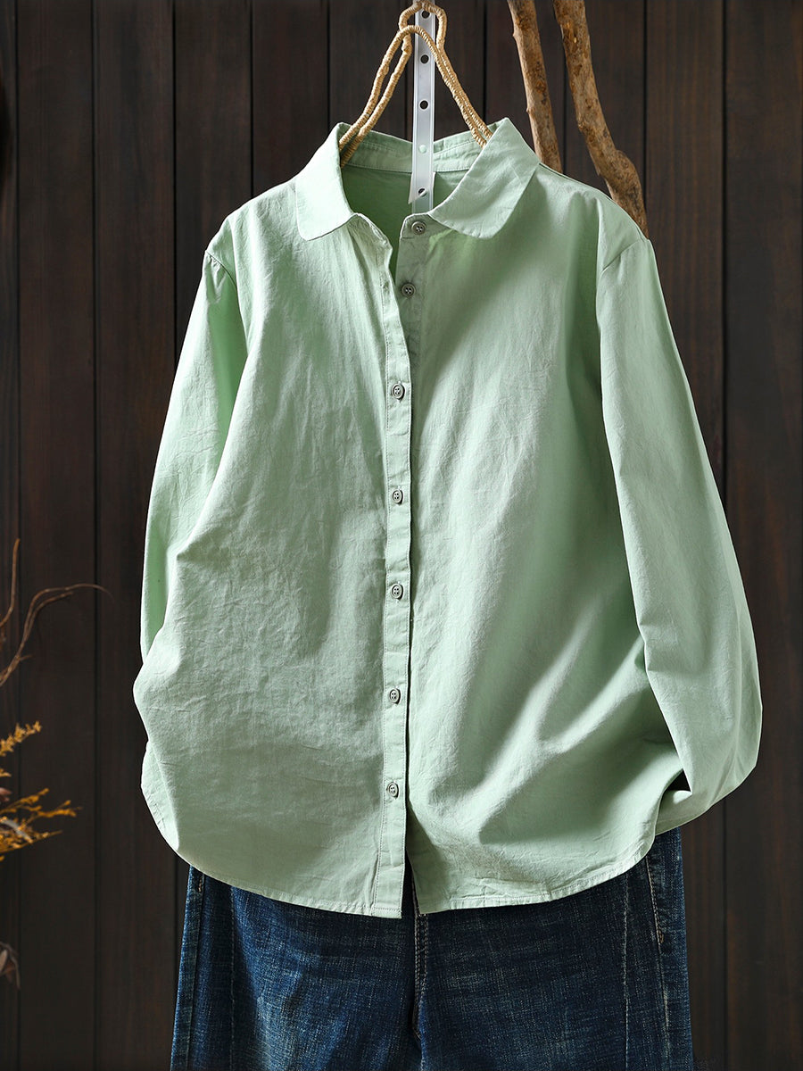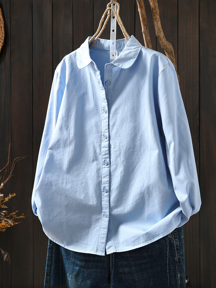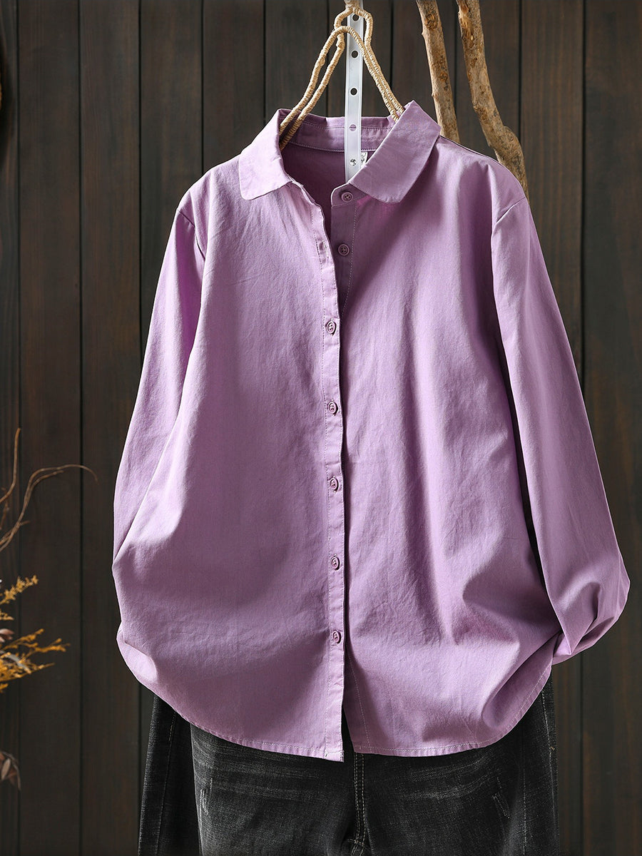Damen-Frühlingsbluse, lässig, einfarbig, 100 % Baumwolle