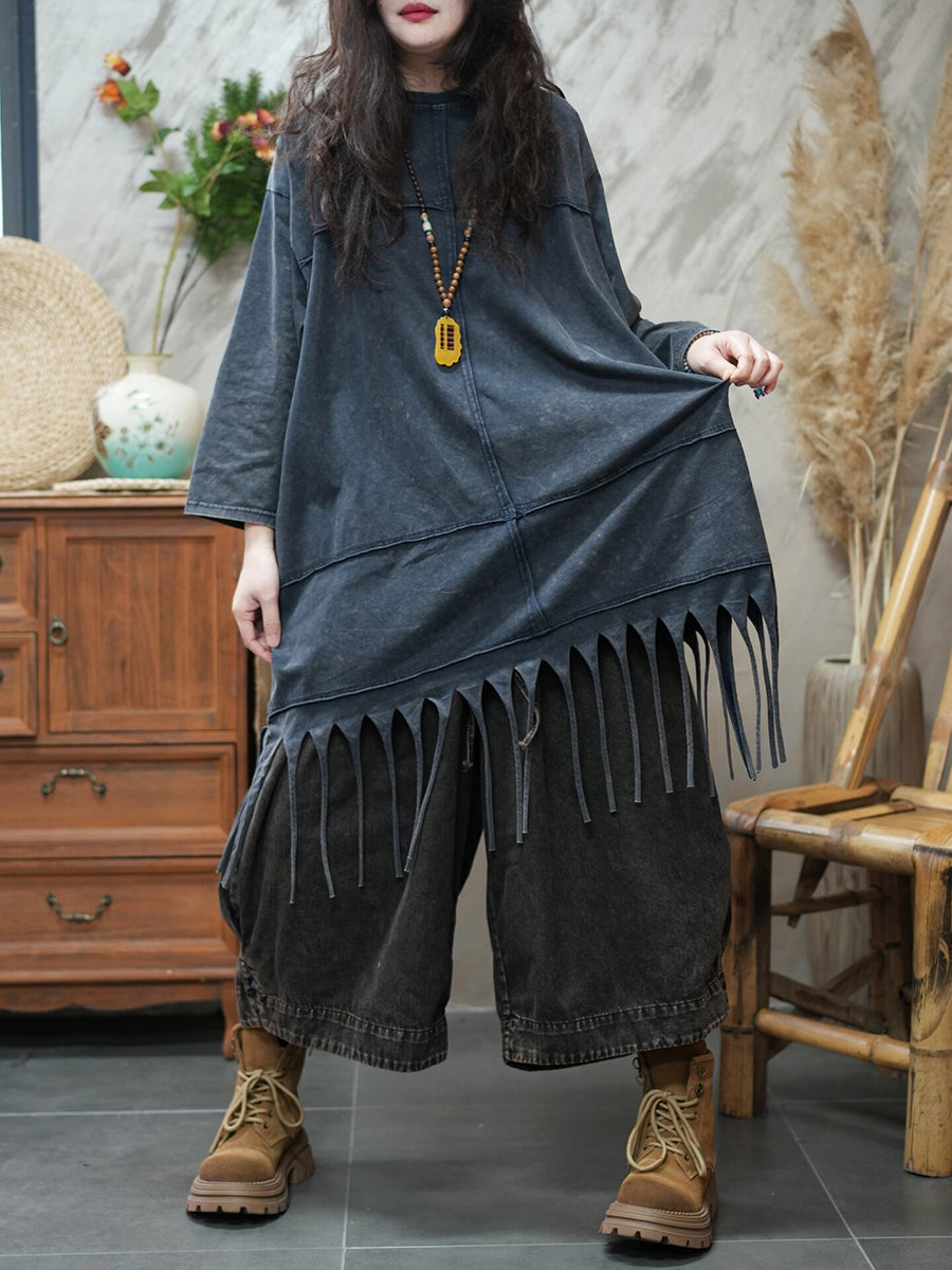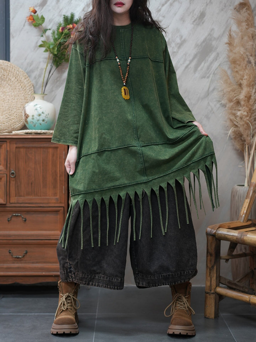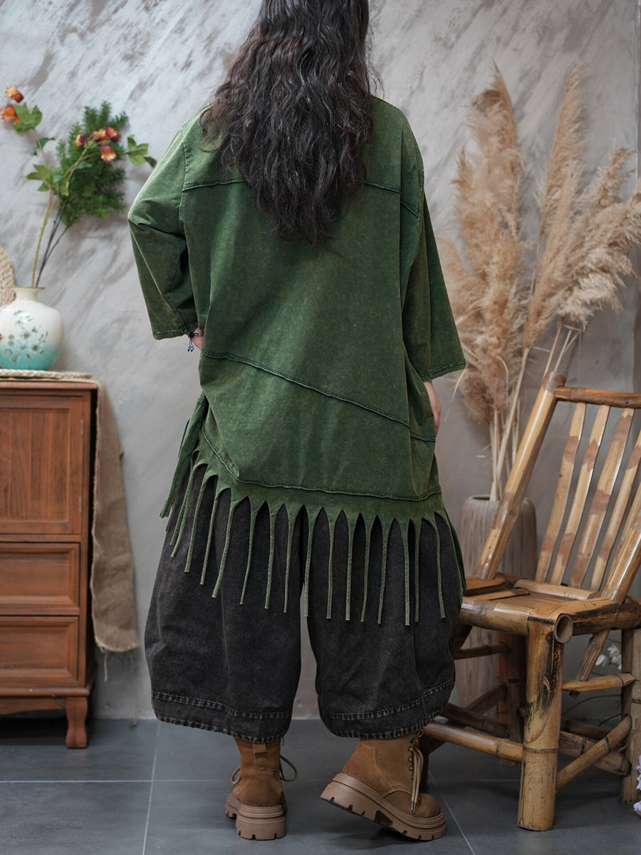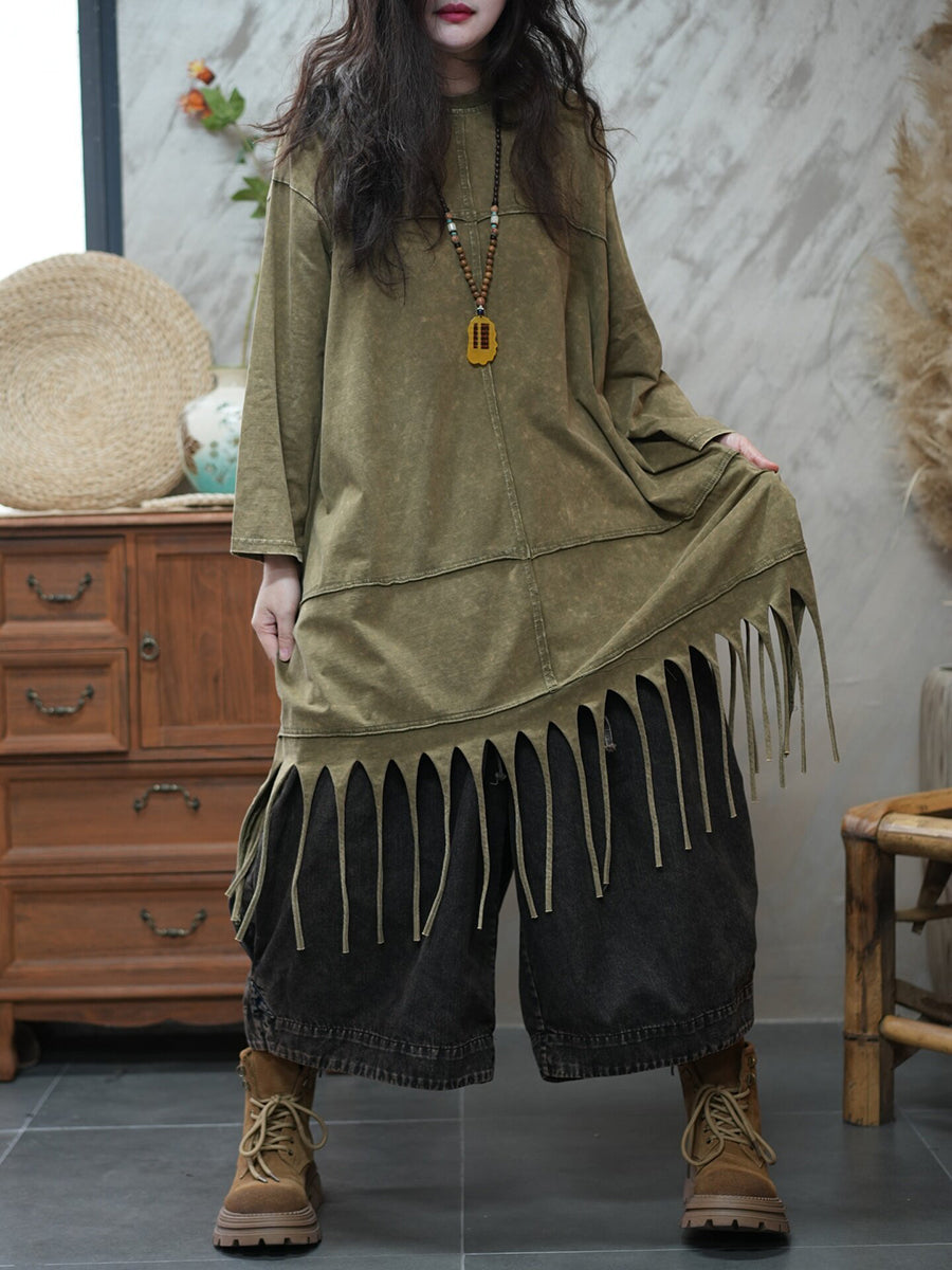 Damen-Frühlingsbluse mit Quasten, lässig, einfarbig, für den Alltag