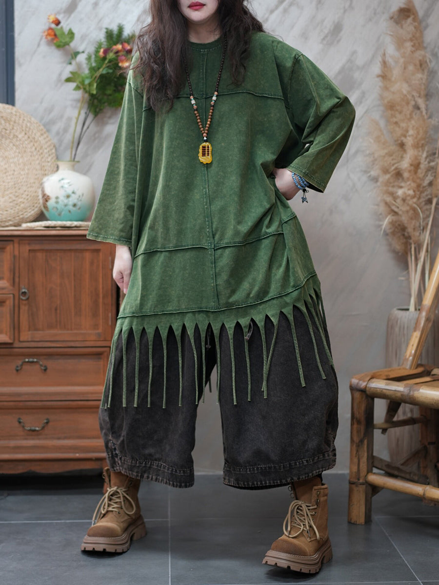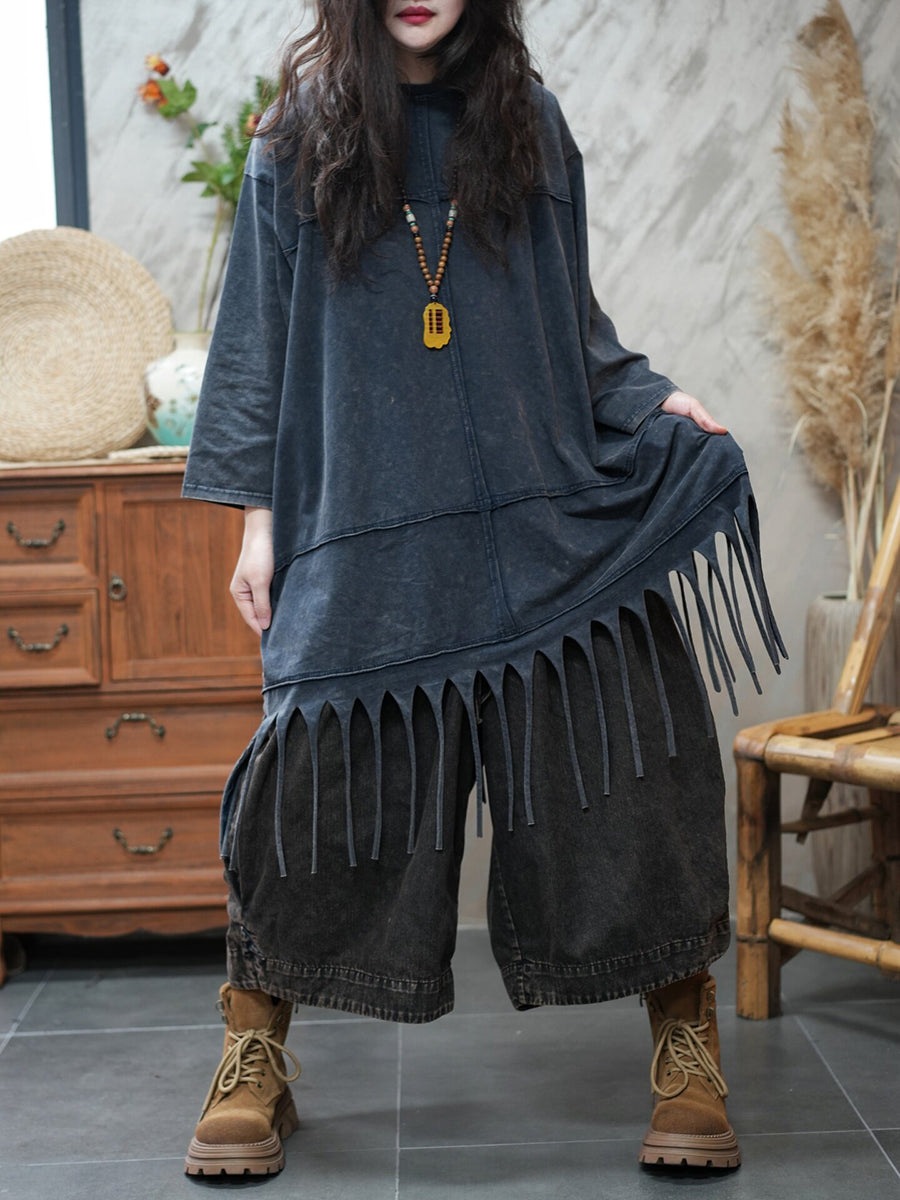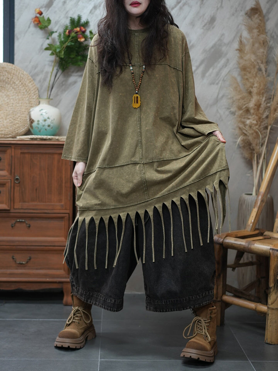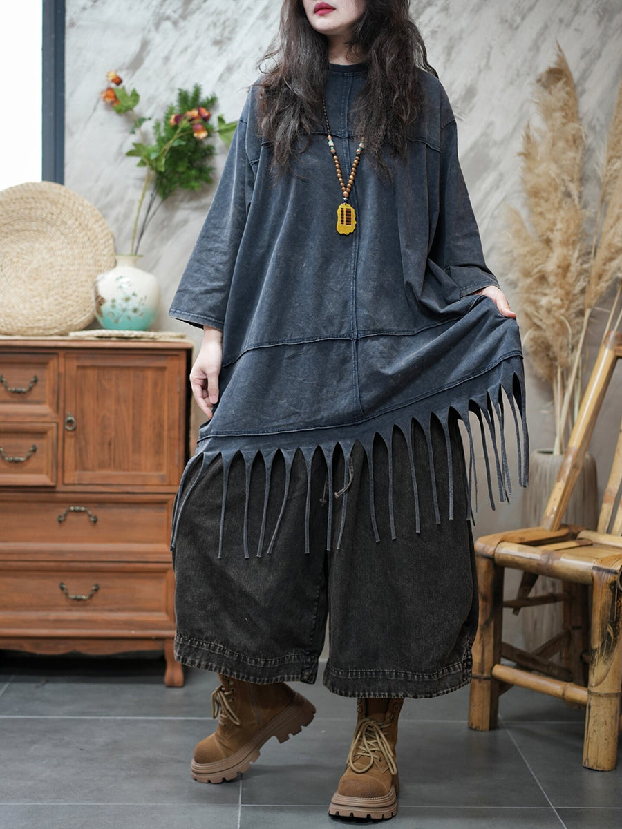 Damen-Frühlingsbluse mit Quasten, lässig, einfarbig, für den Alltag