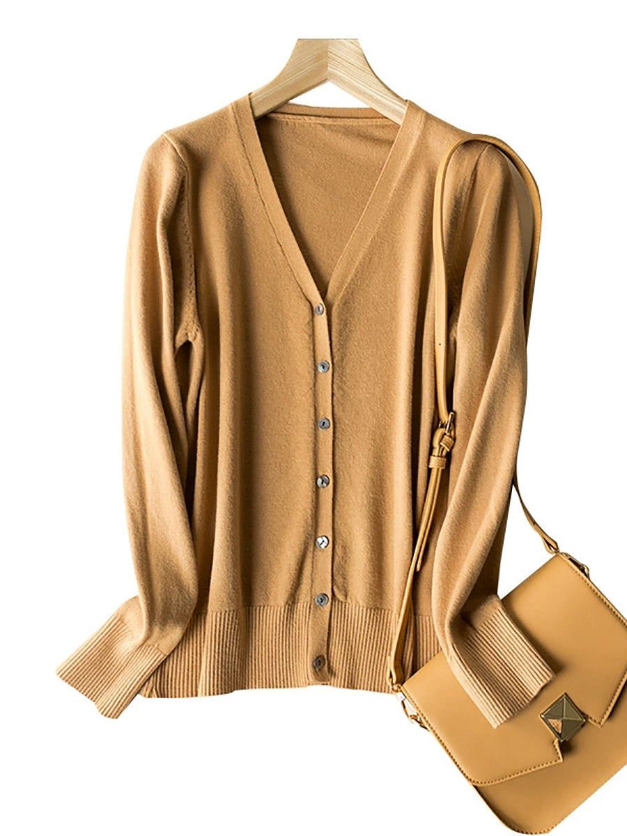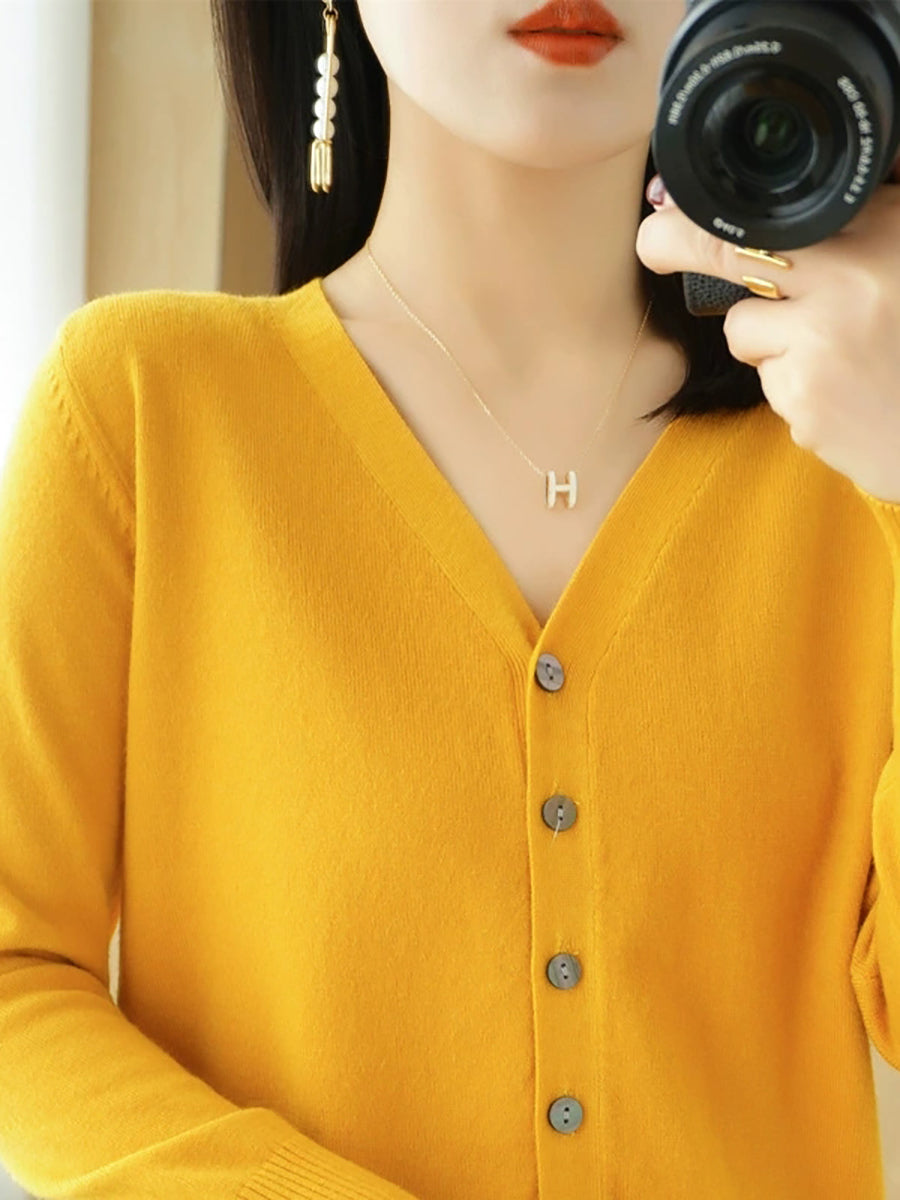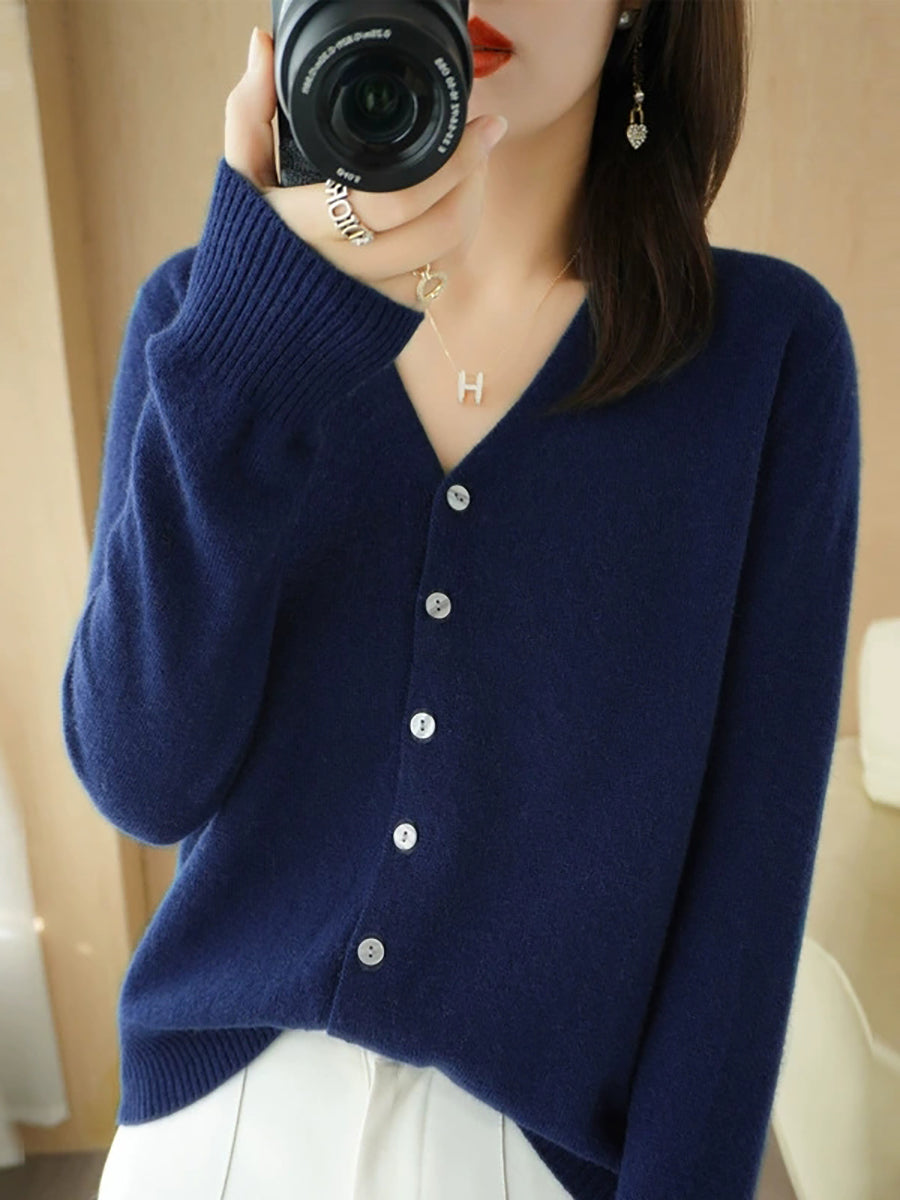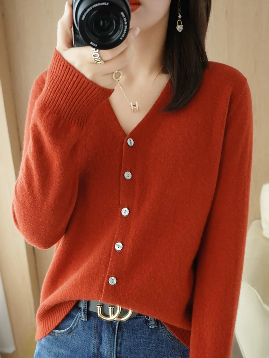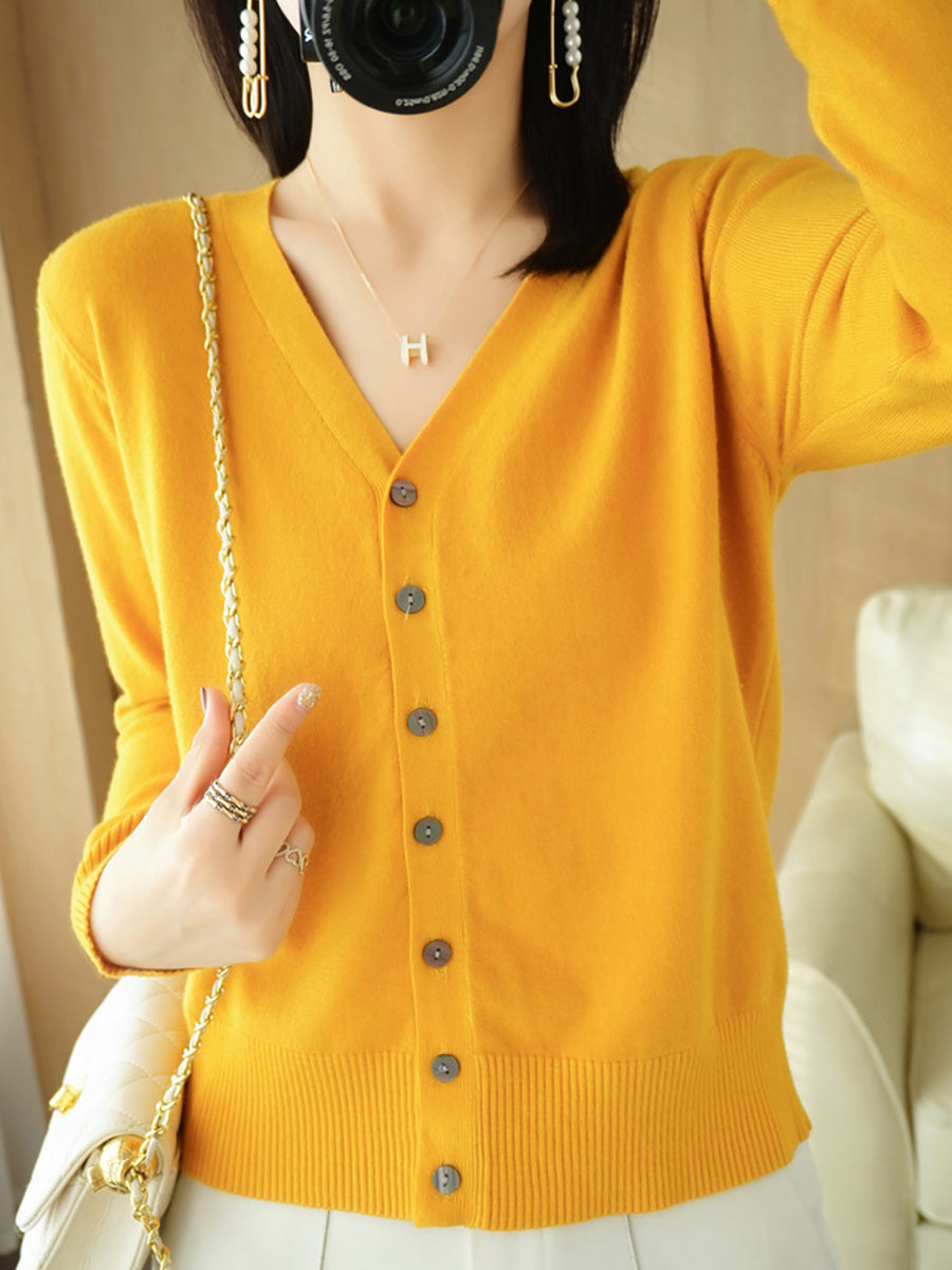 Damen-Frühlingspullover, lässig, einfarbig, V-Ausschnitt