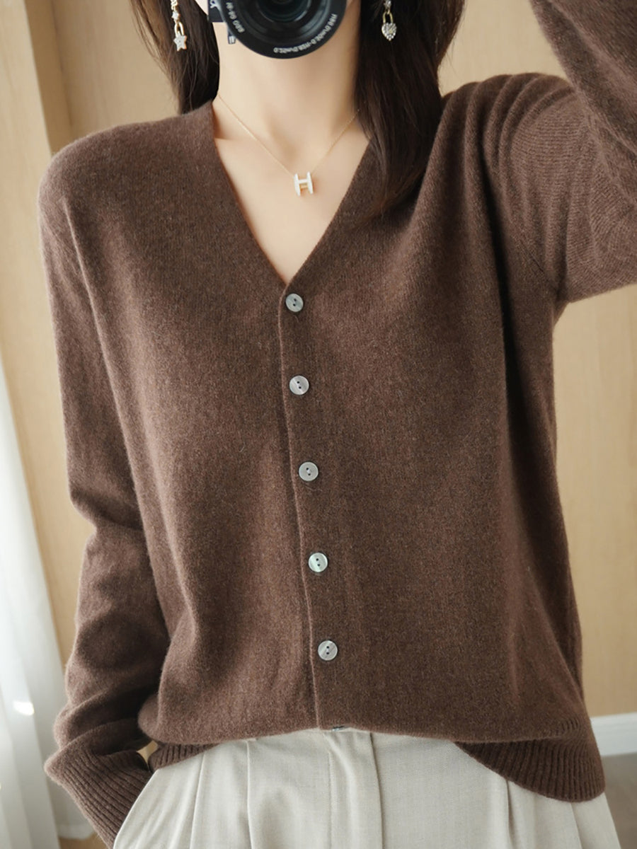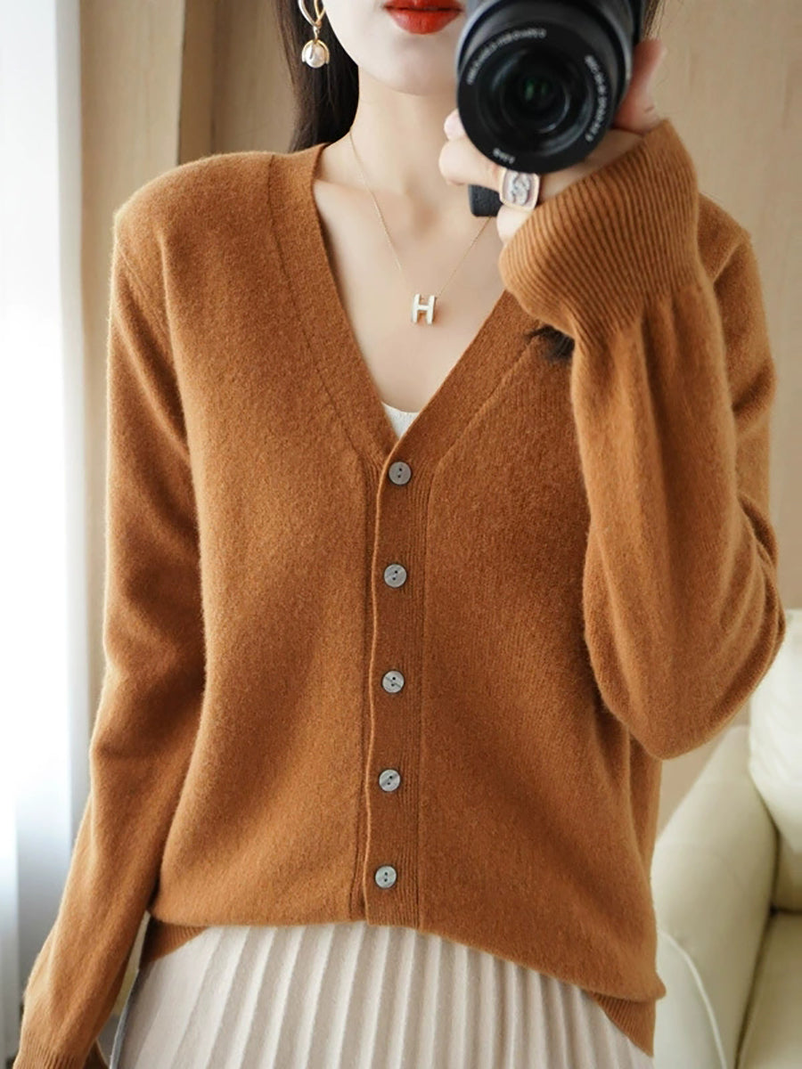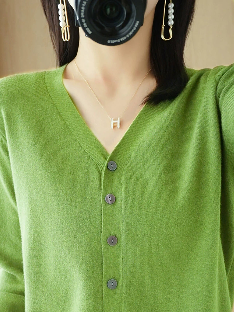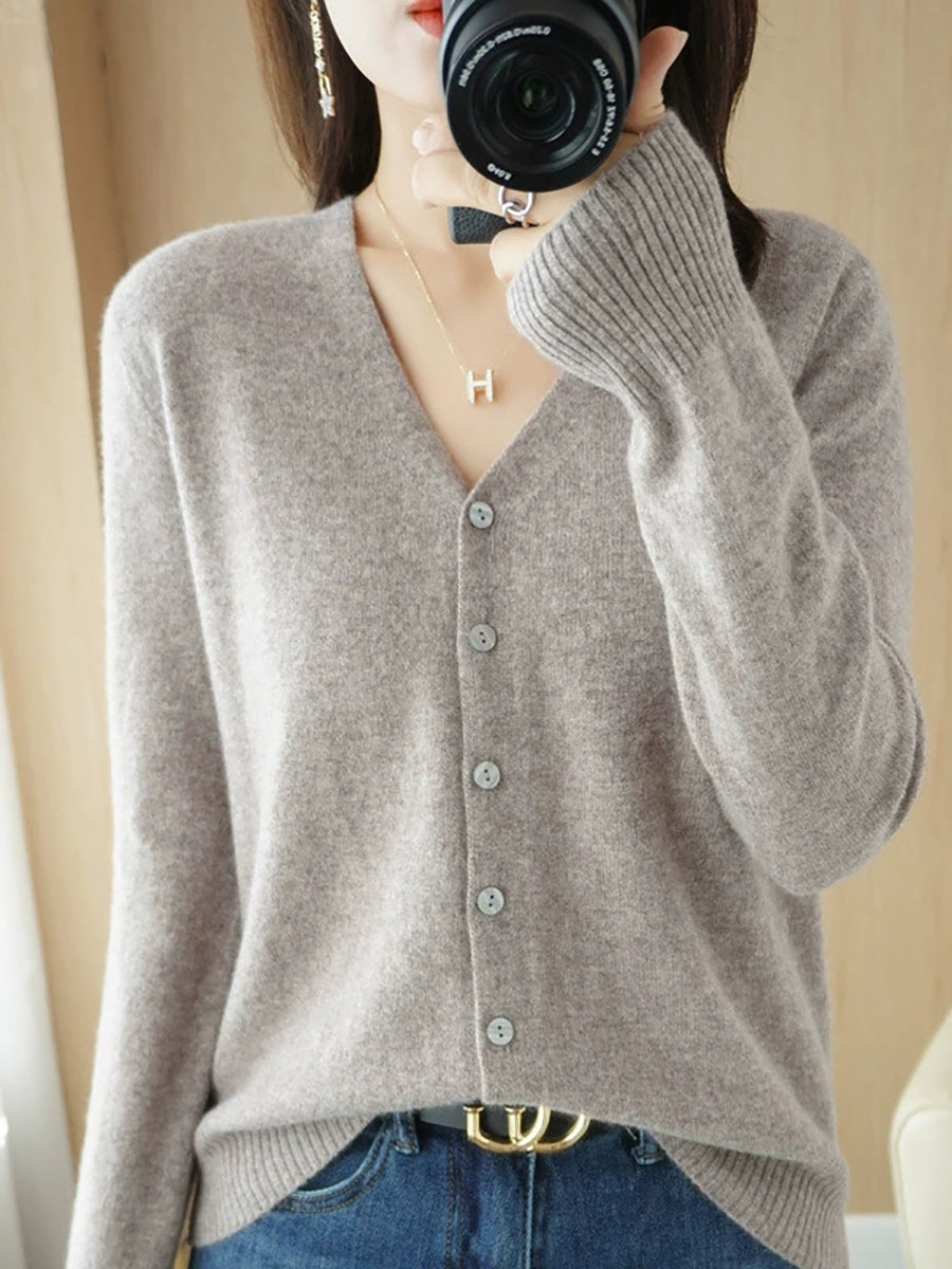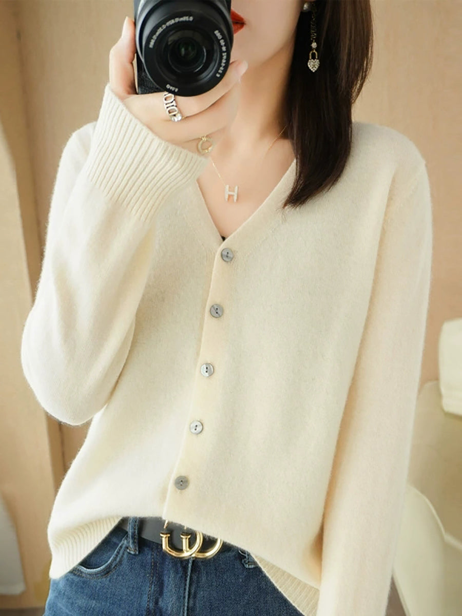 Damen-Frühlingspullover, lässig, einfarbig, V-Ausschnitt
