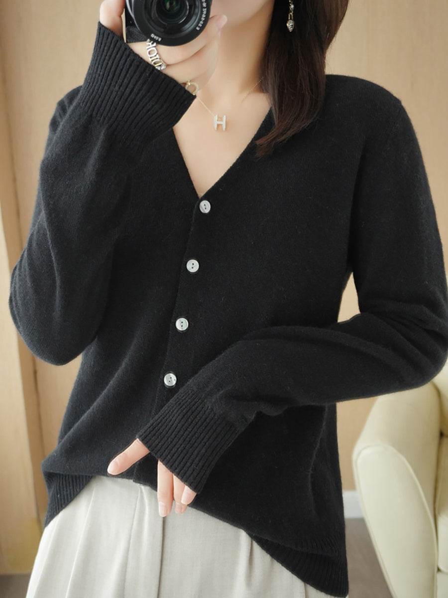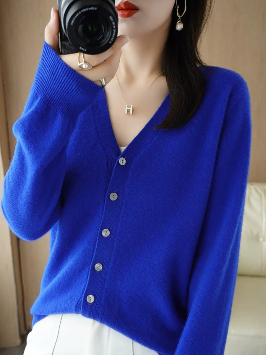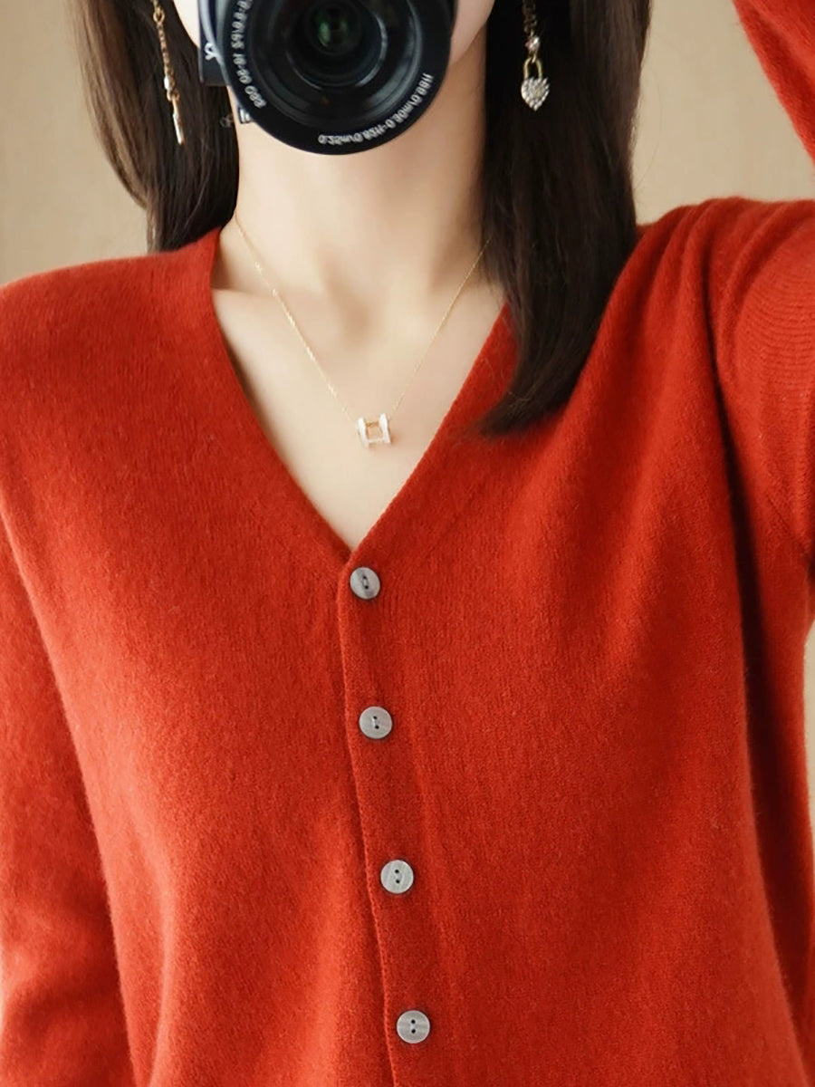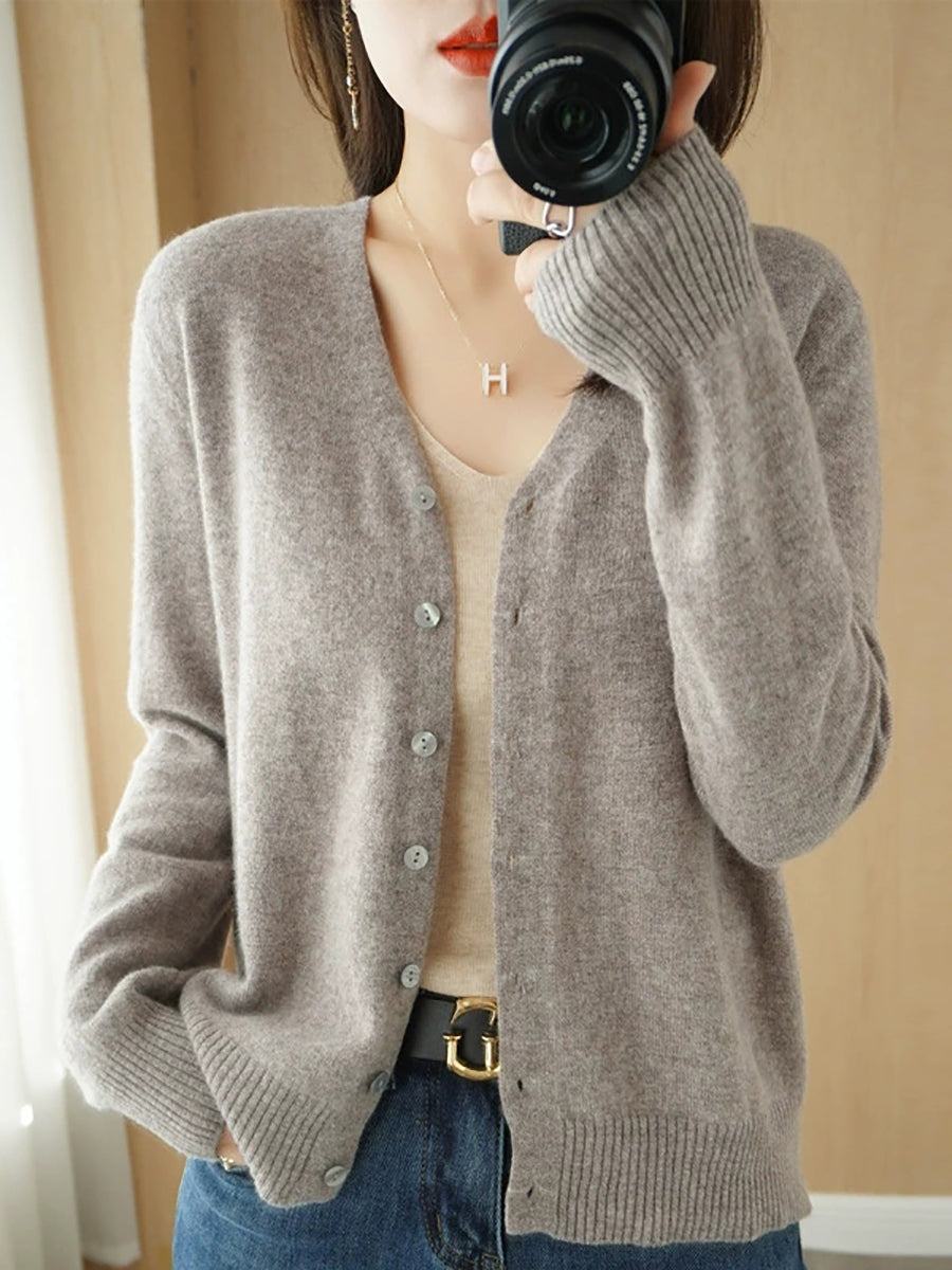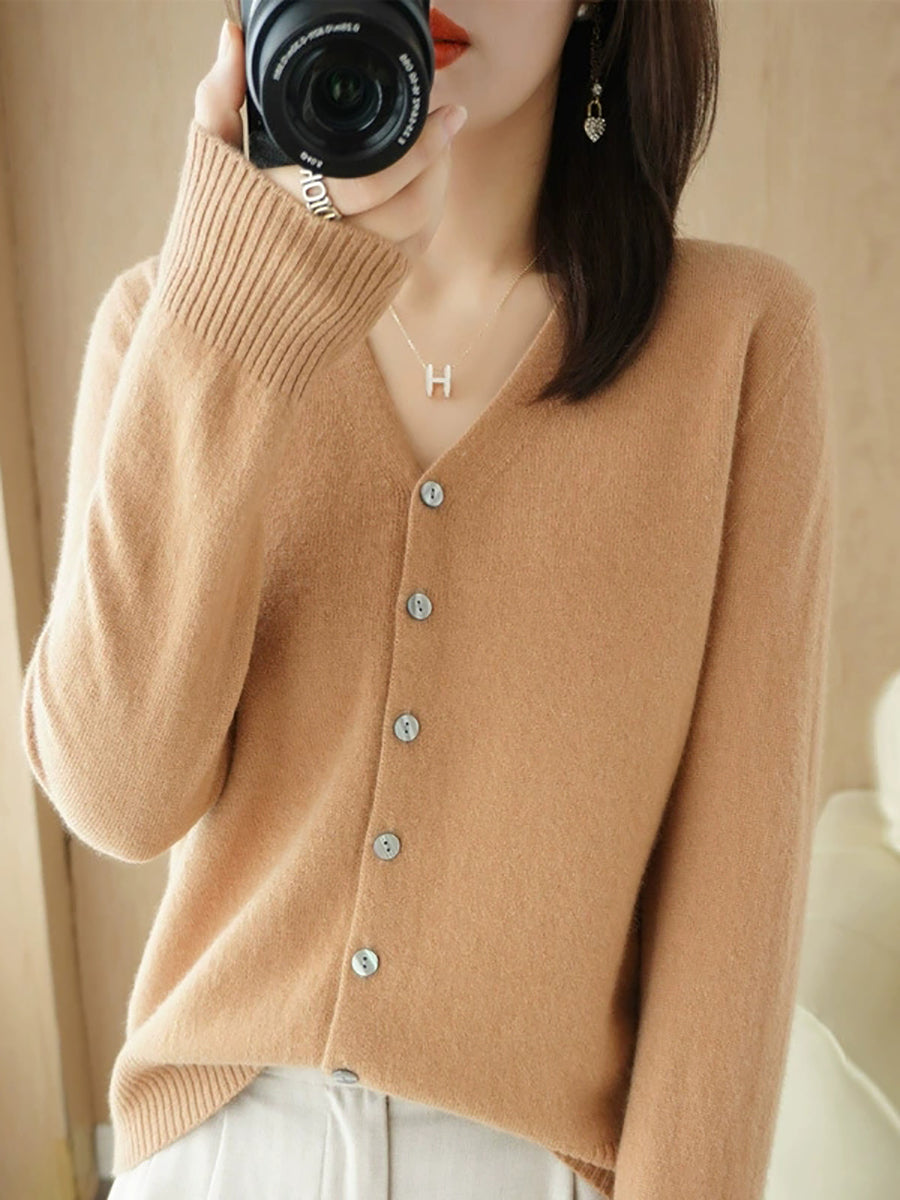 Damen-Frühlingspullover, lässig, einfarbig, V-Ausschnitt