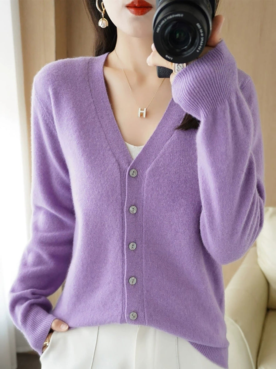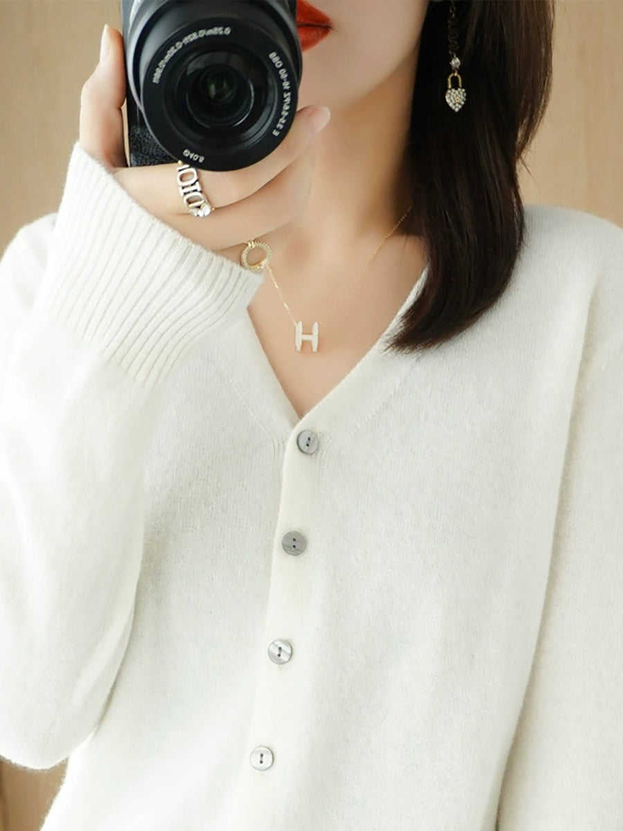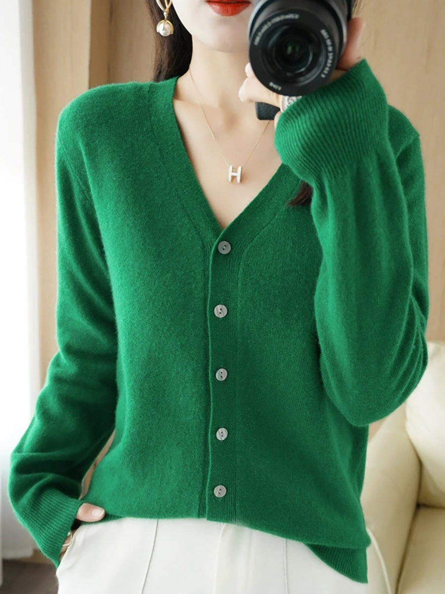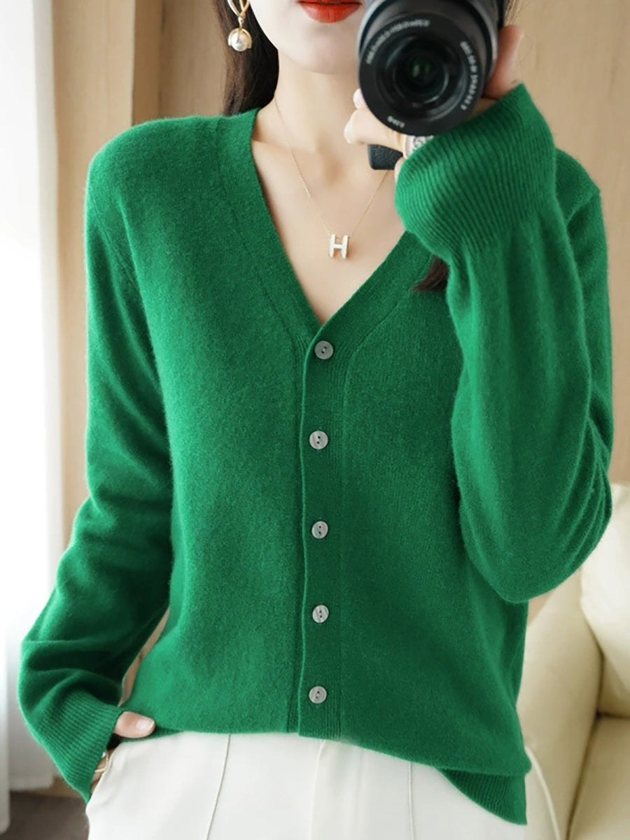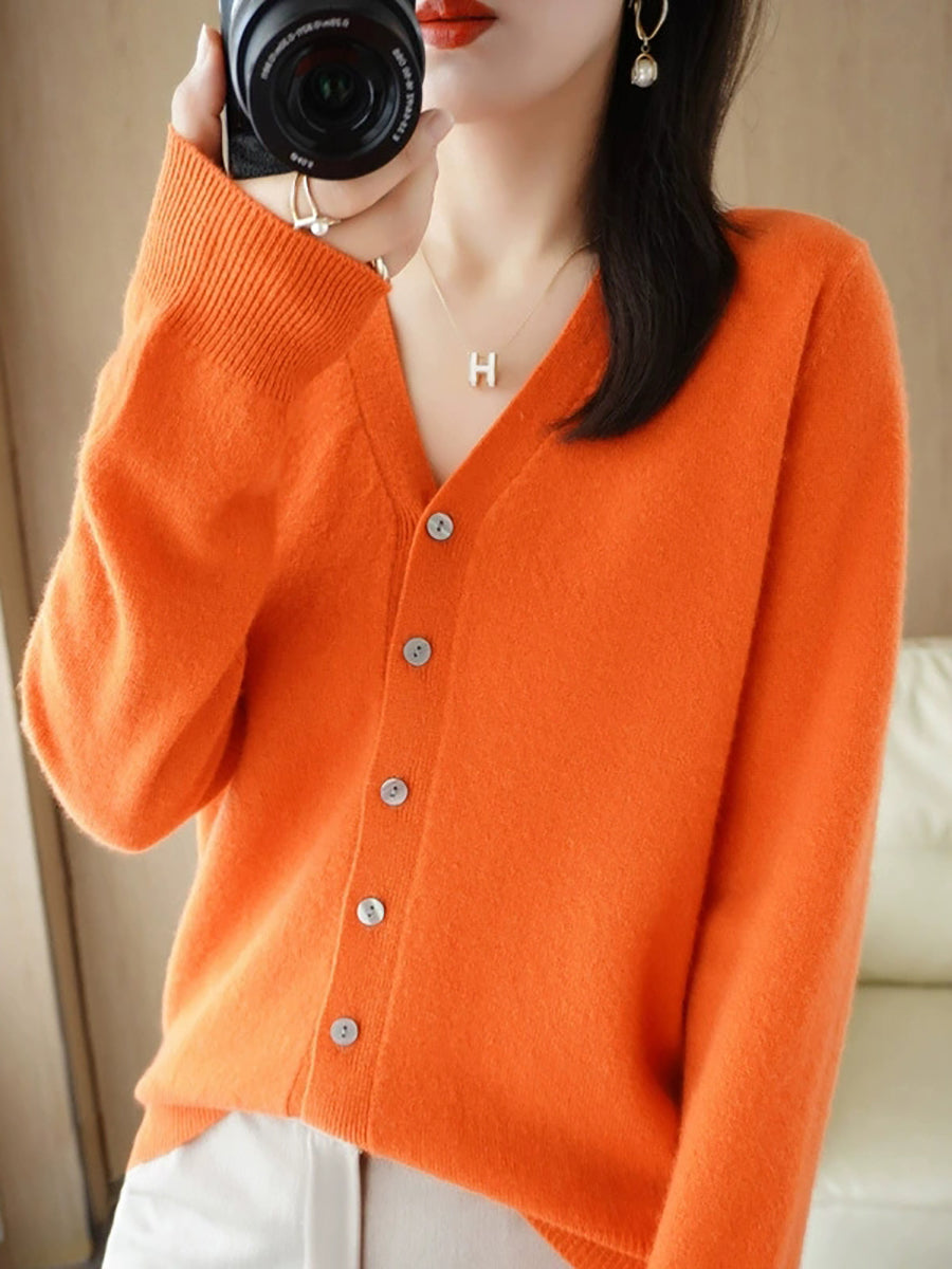 Damen-Frühlingspullover, lässig, einfarbig, V-Ausschnitt