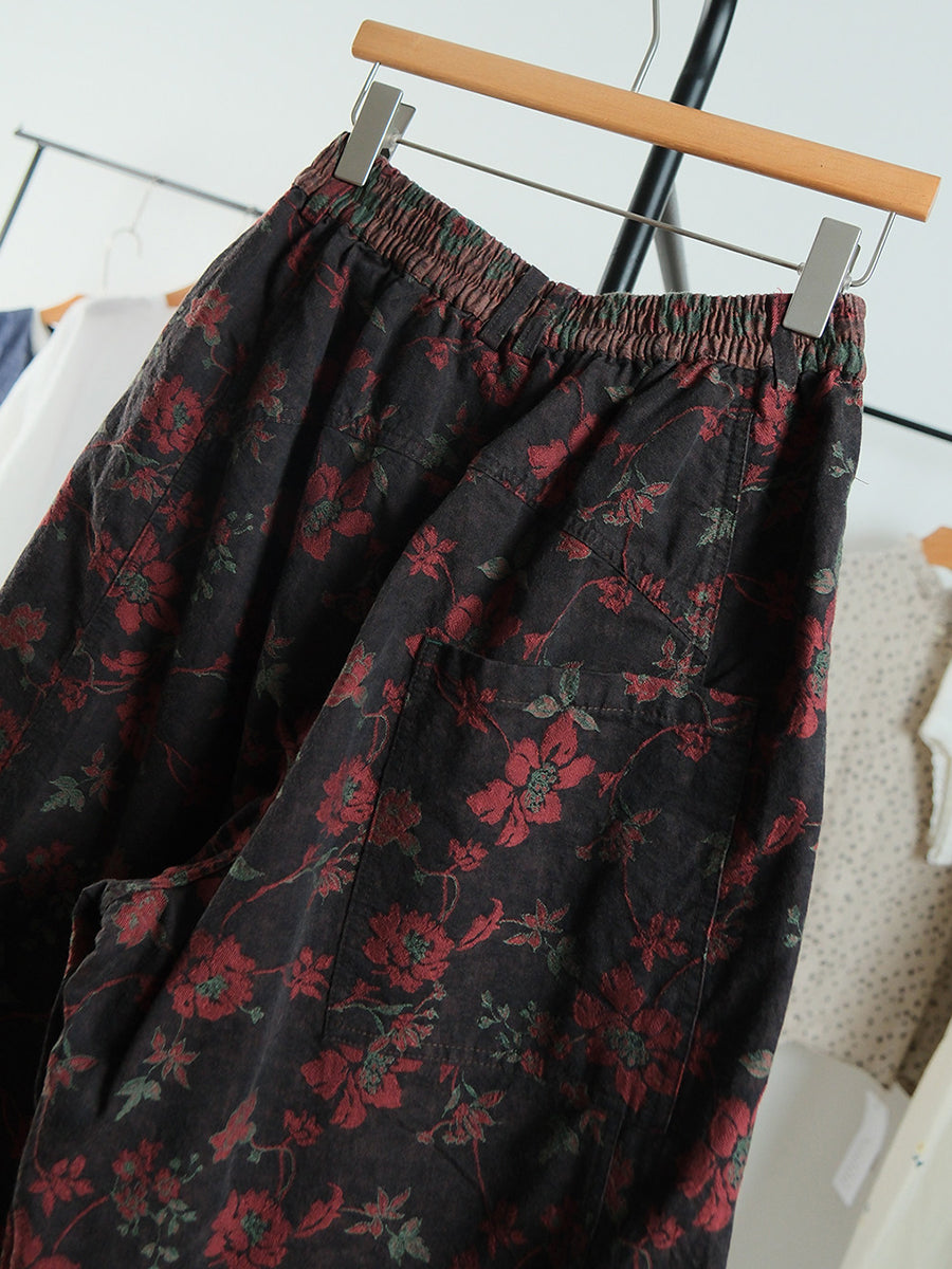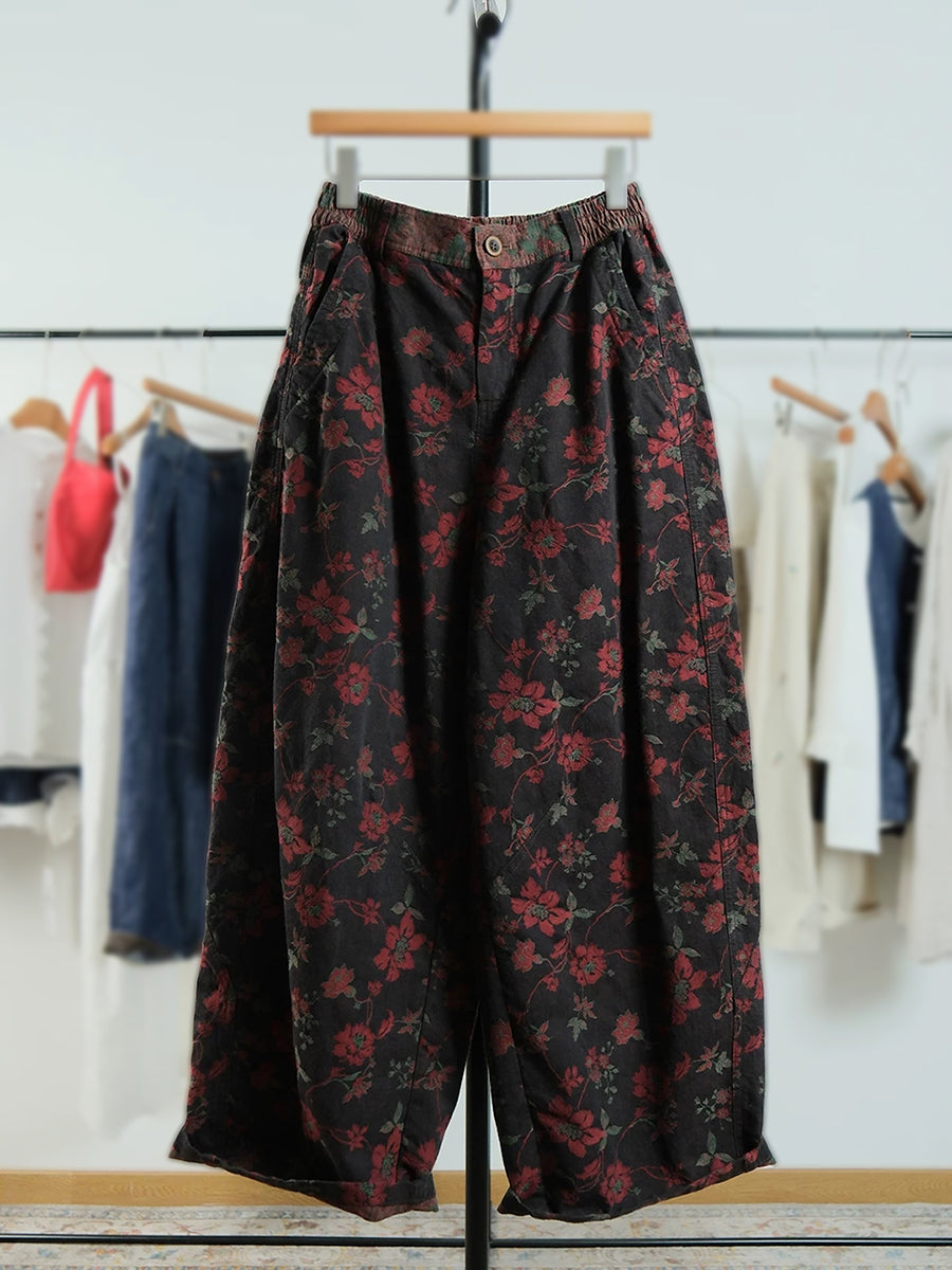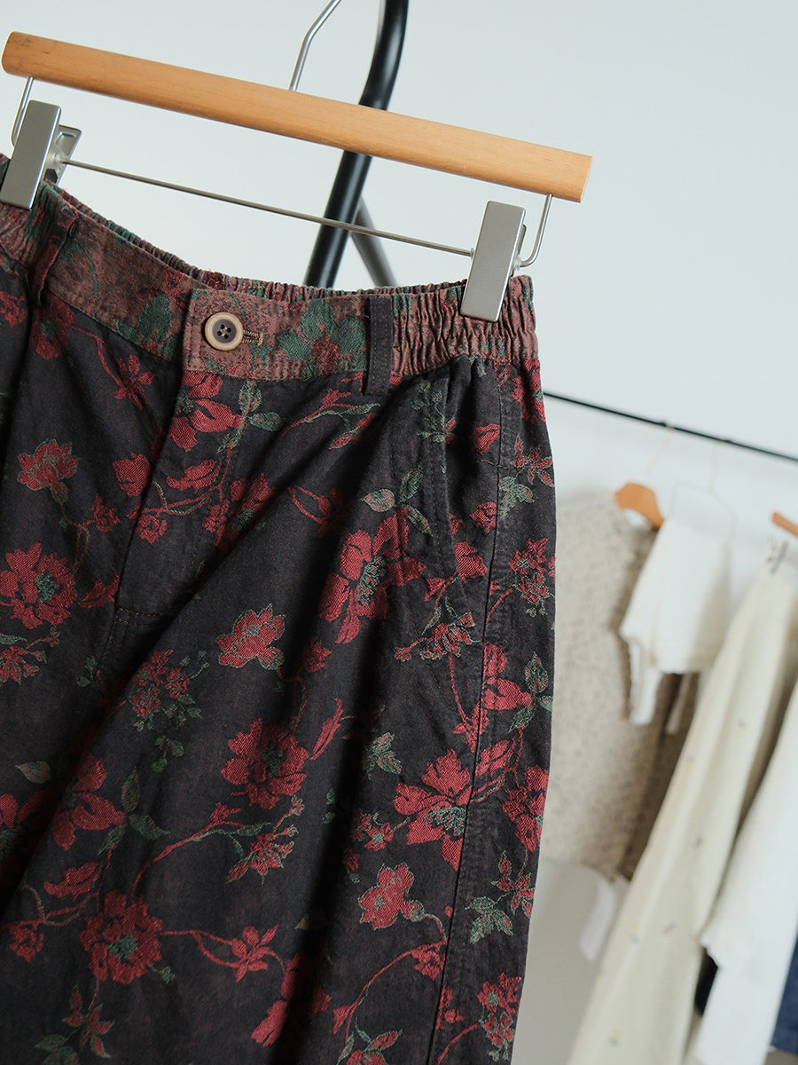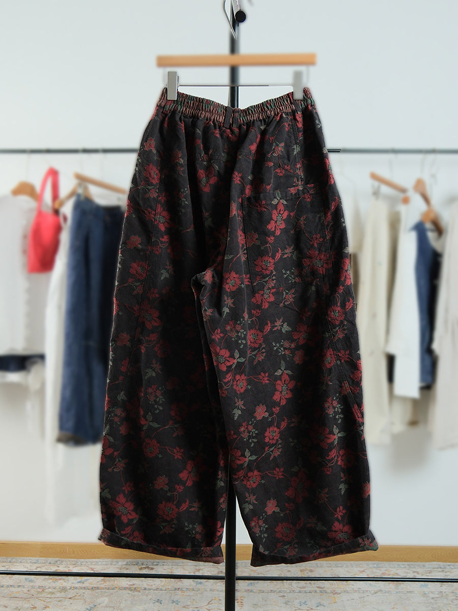 Damen-Hose mit weitem Bein und Frühlingsblumenmuster