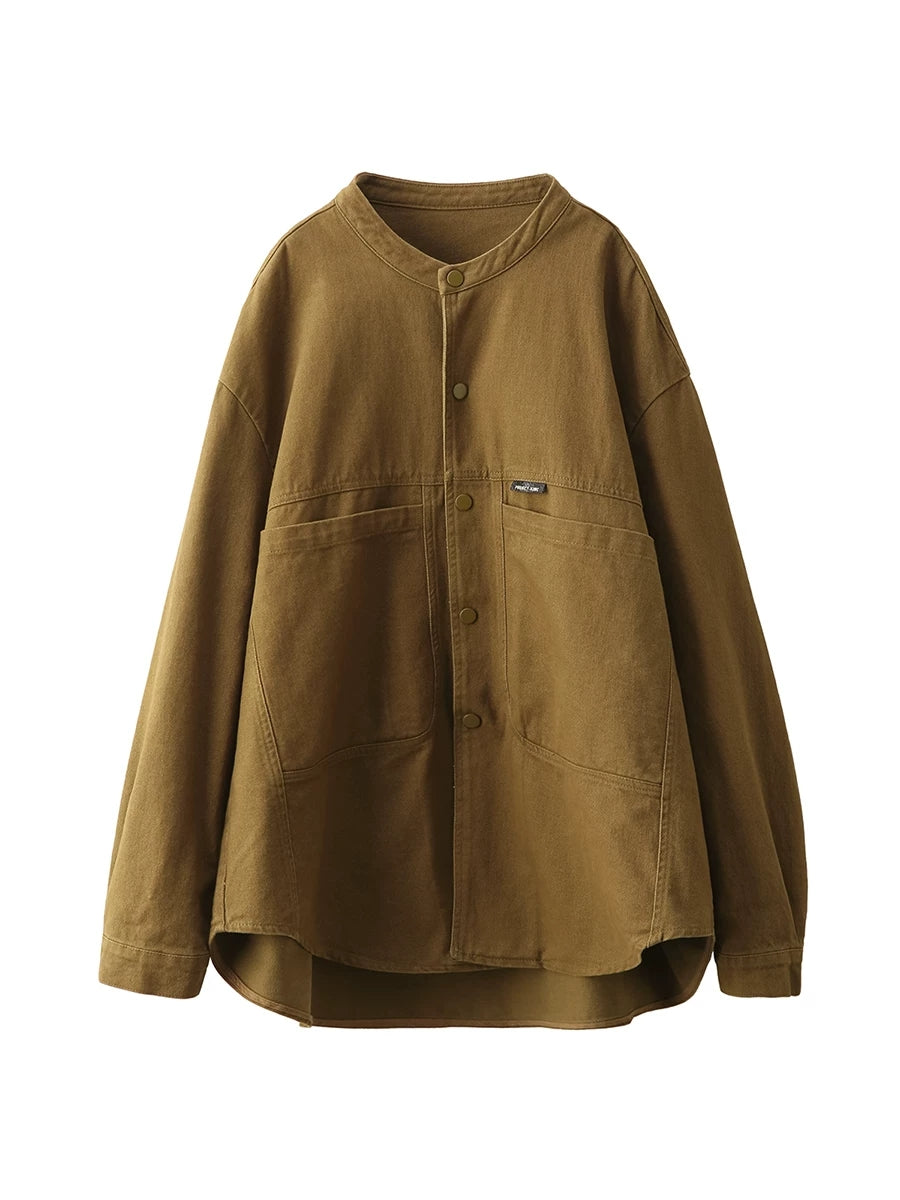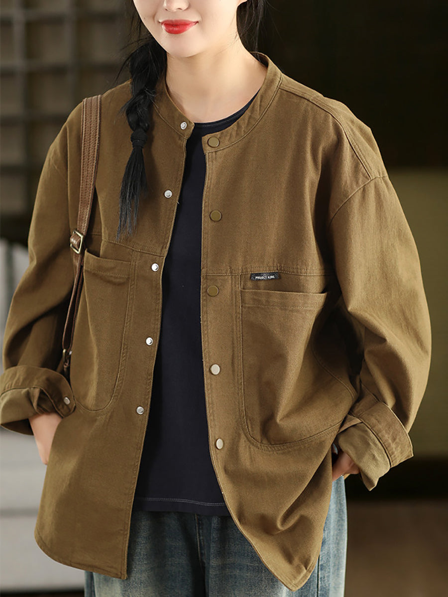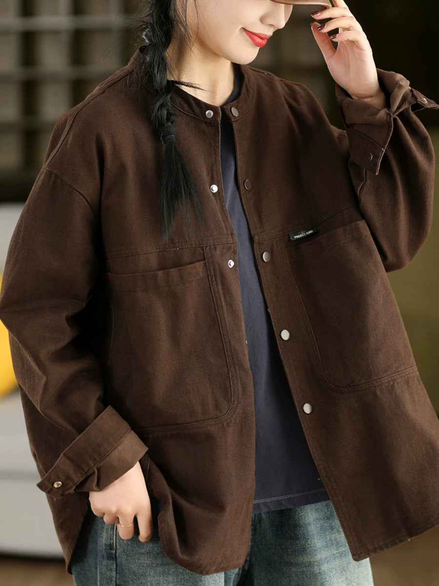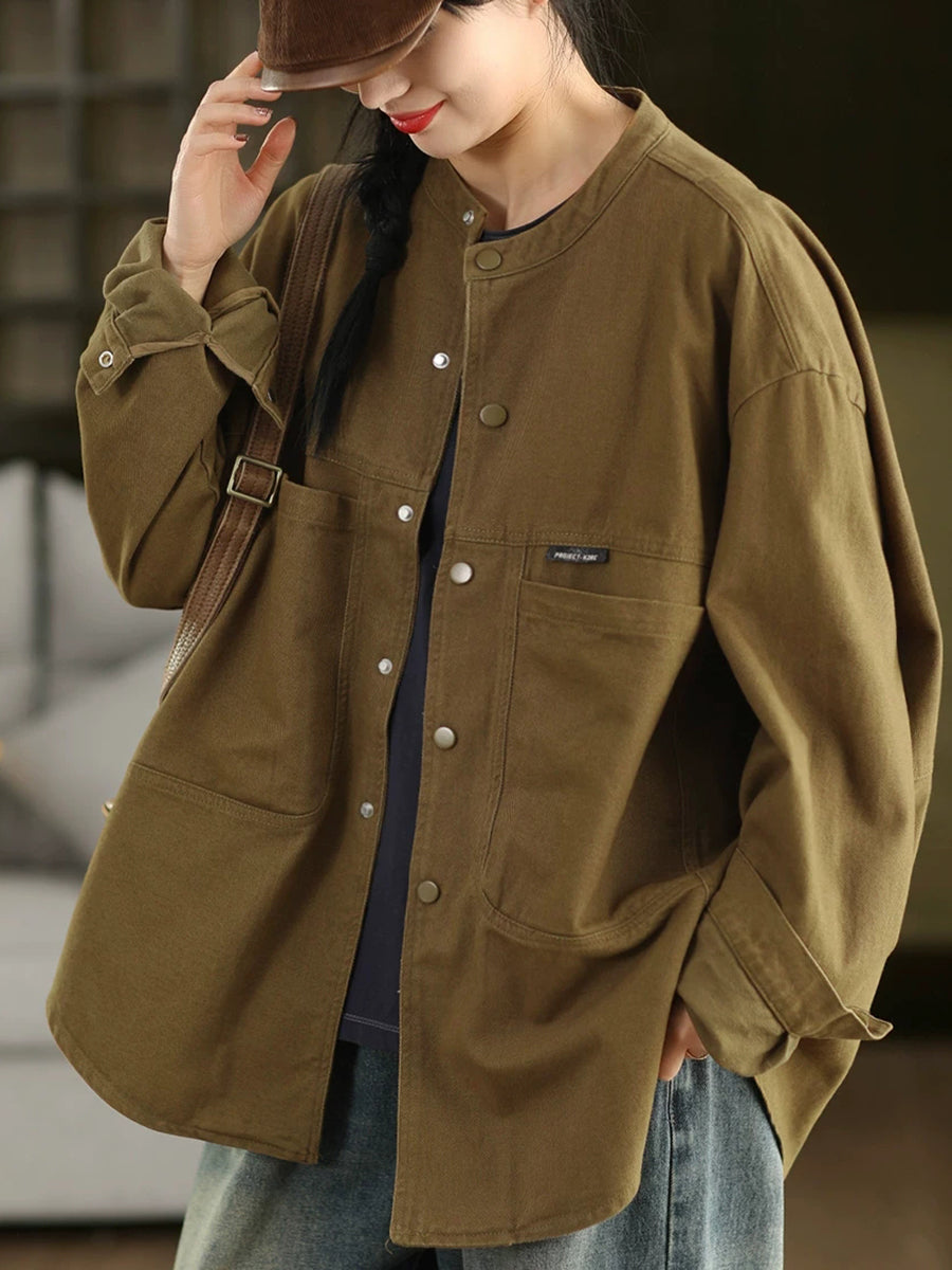Damen Frühlingshemd-Mantel aus 100% Baumwolle, einfarbig