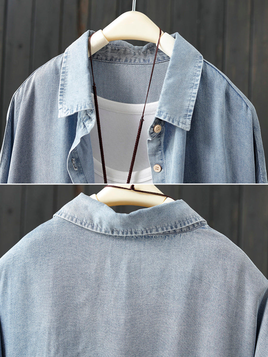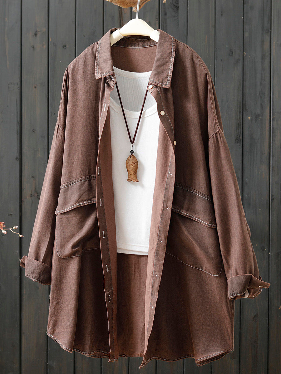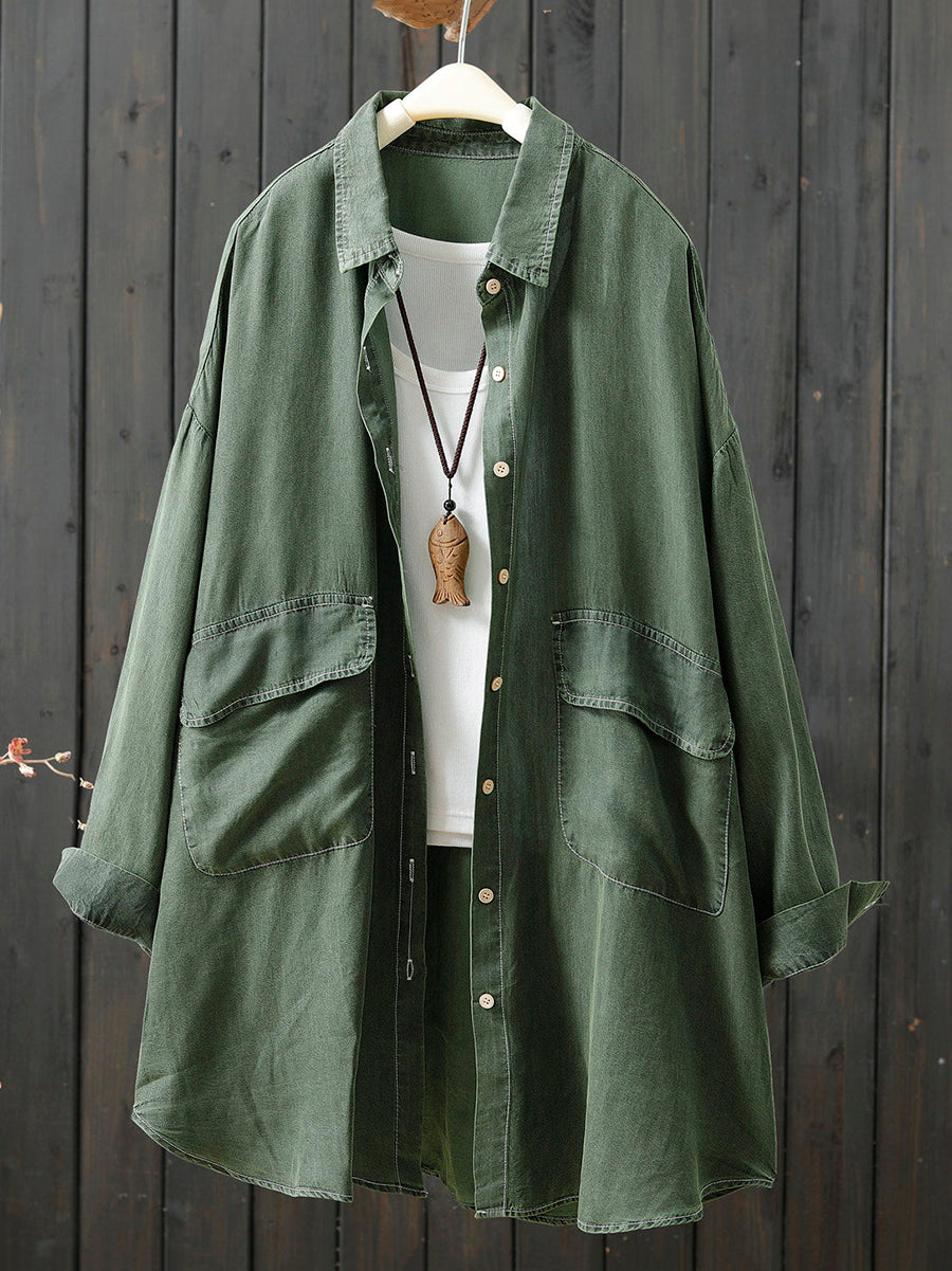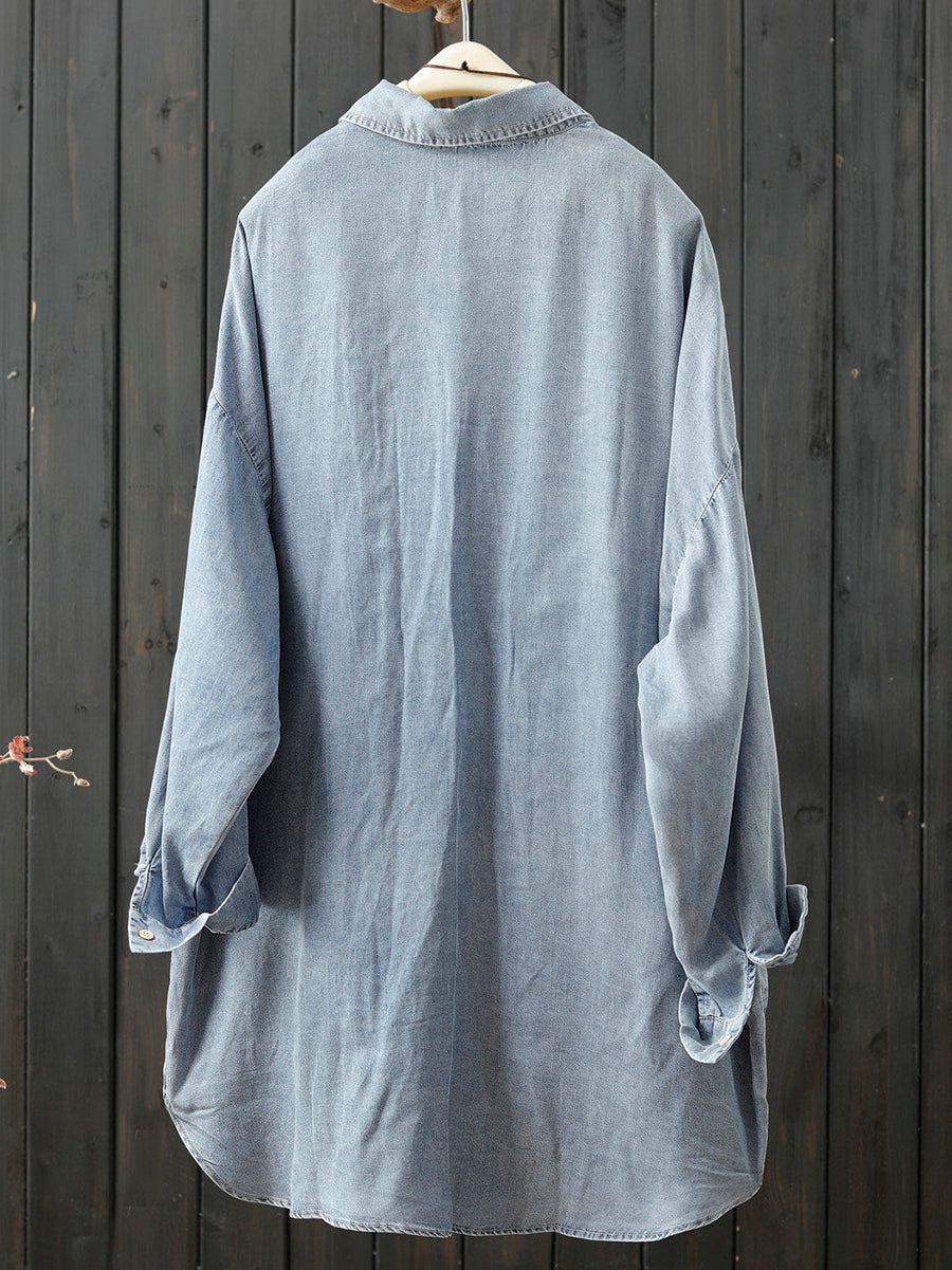 Damen Frühlingsbluse aus reinfarbiger Baumwolle