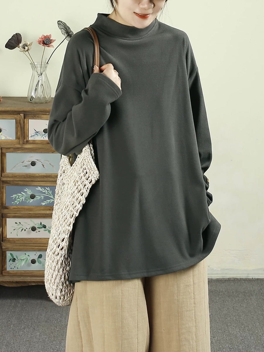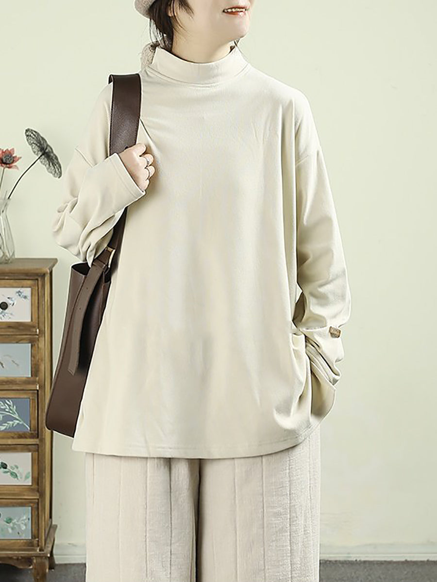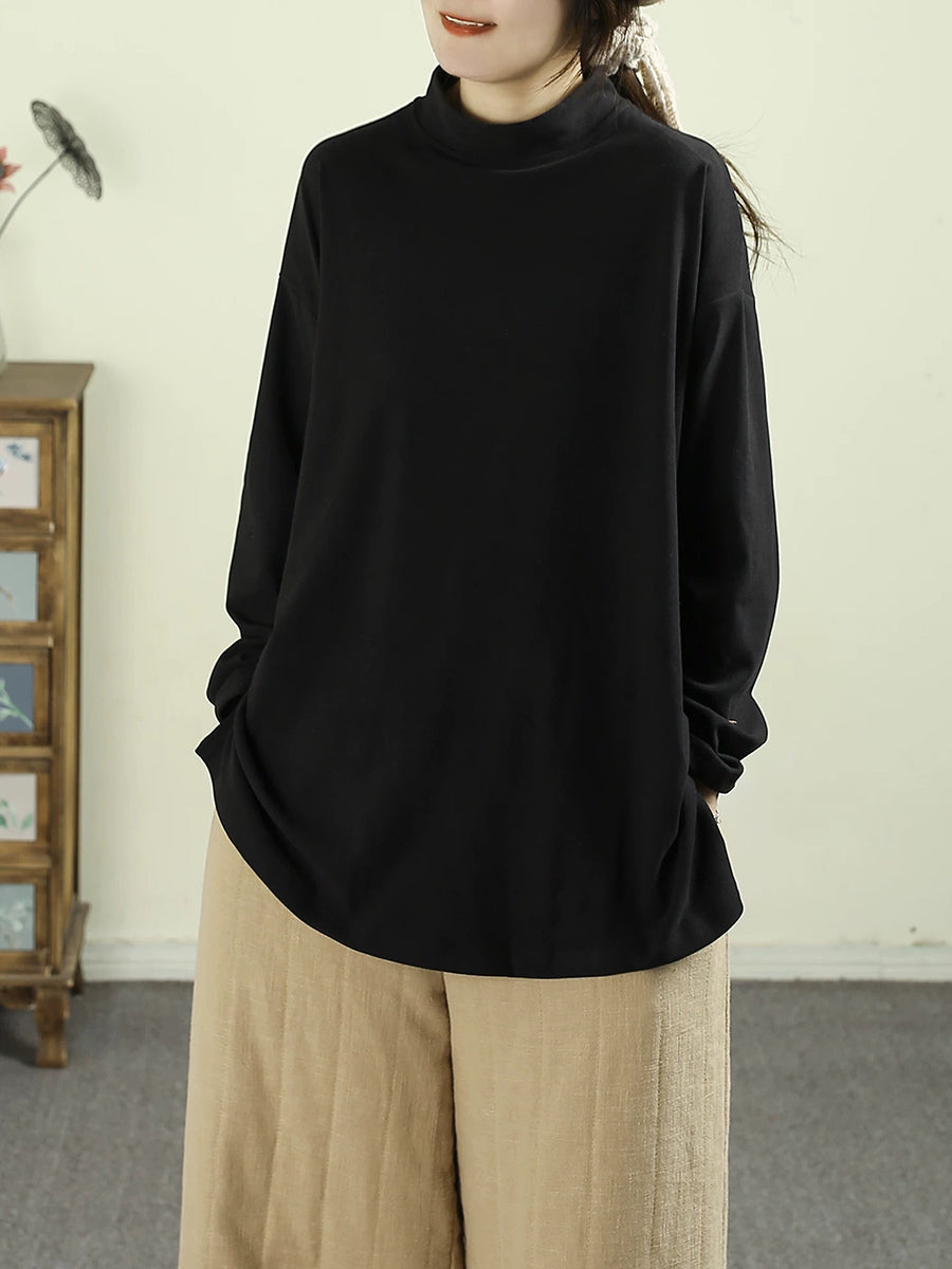 Damen Frühlingsbluse mit halben Rollkragen in Unifarben