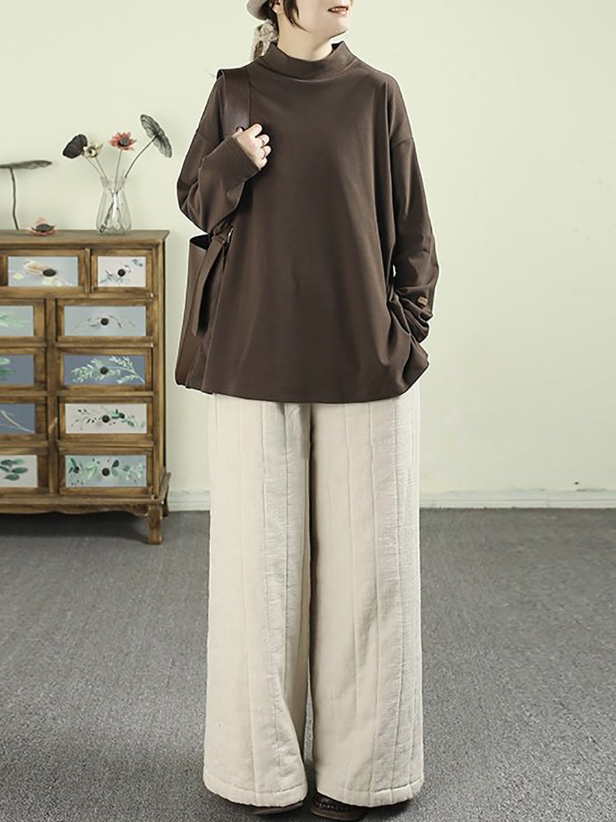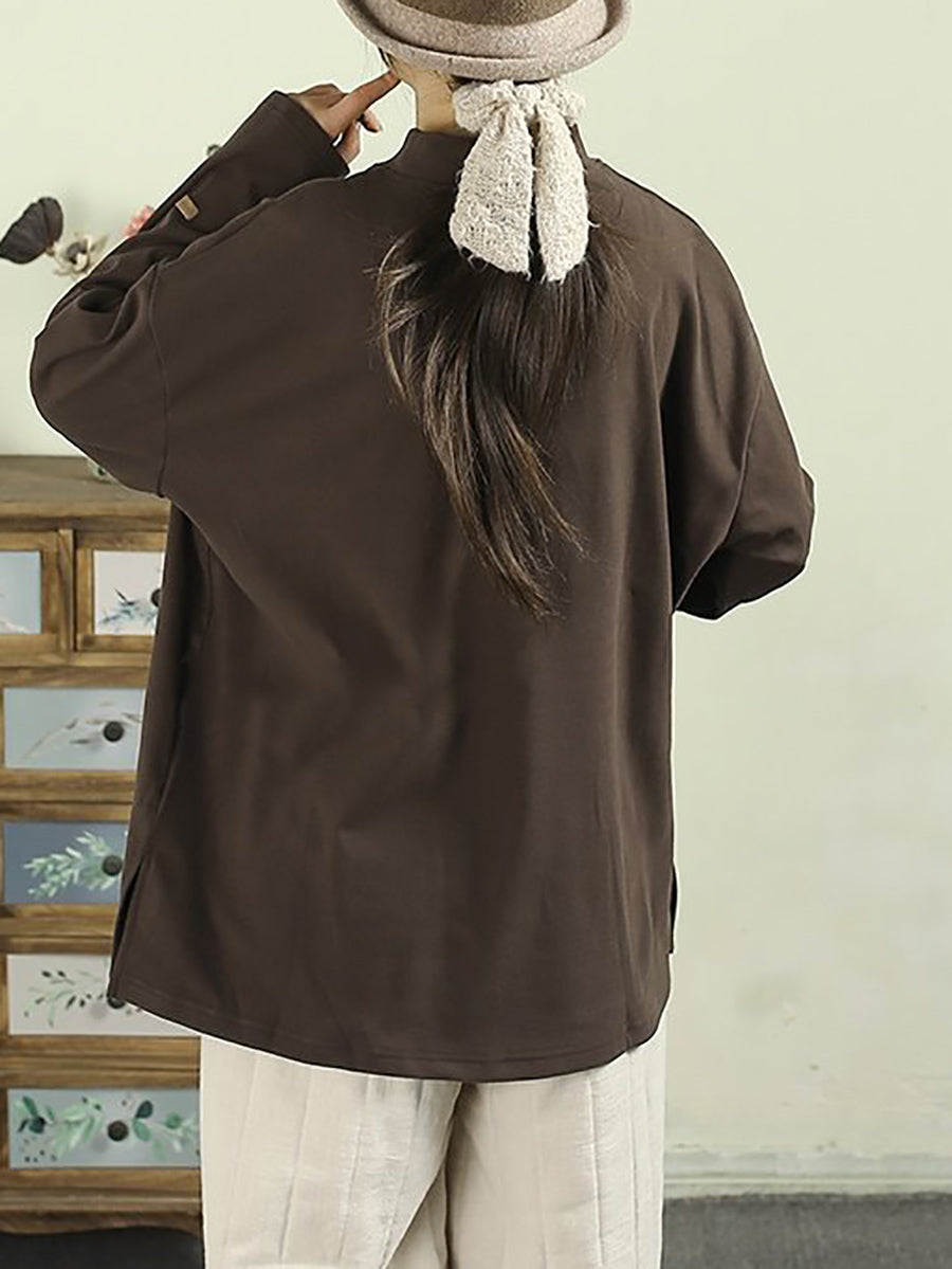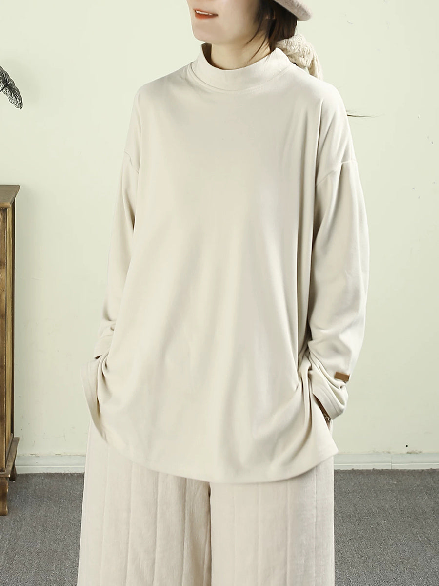 Damen Frühlingsbluse mit halben Rollkragen in Unifarben