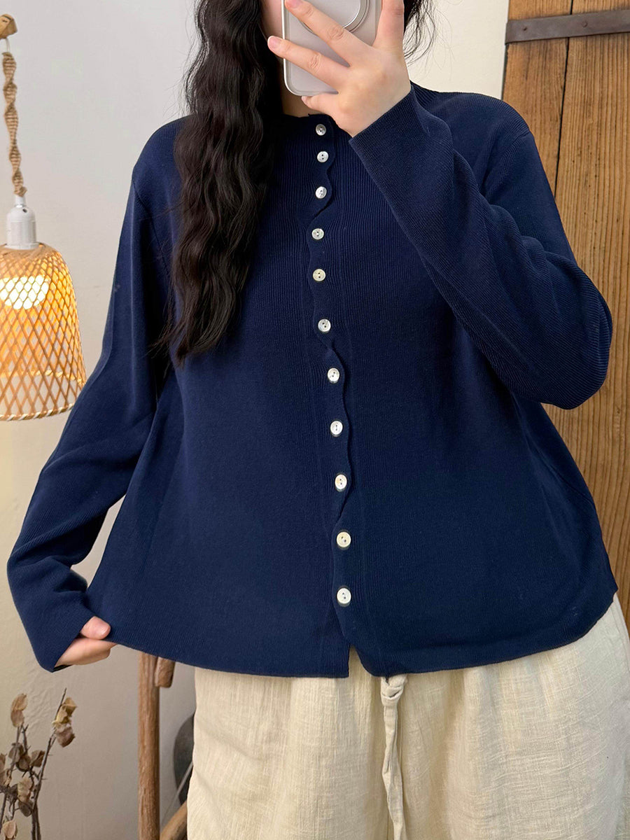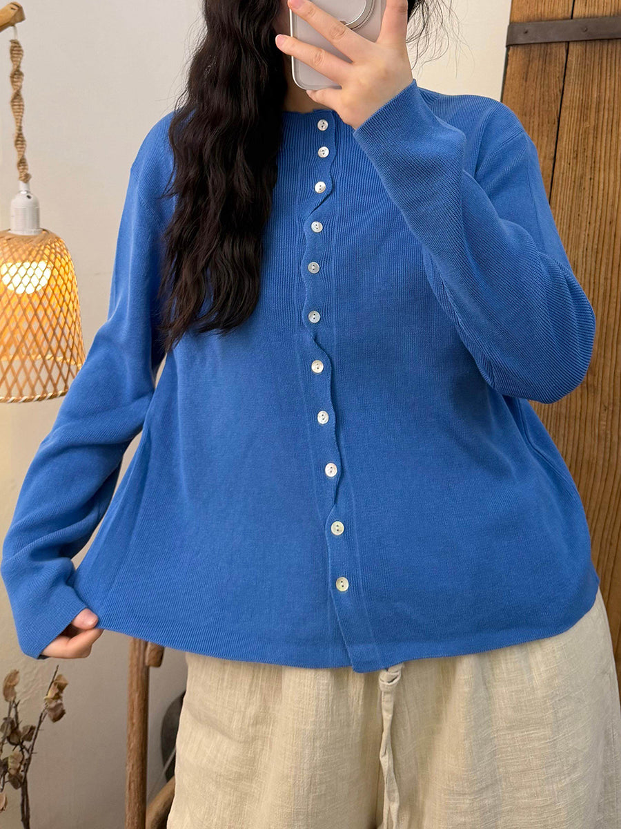 Damen Frühlings-Strickshirt mit Rundhalsausschnitt, einfarbig