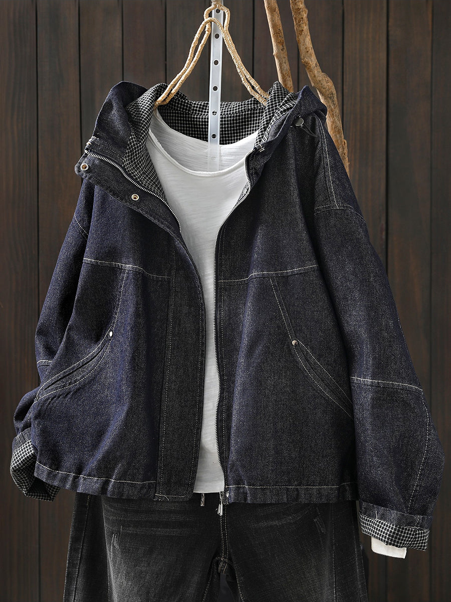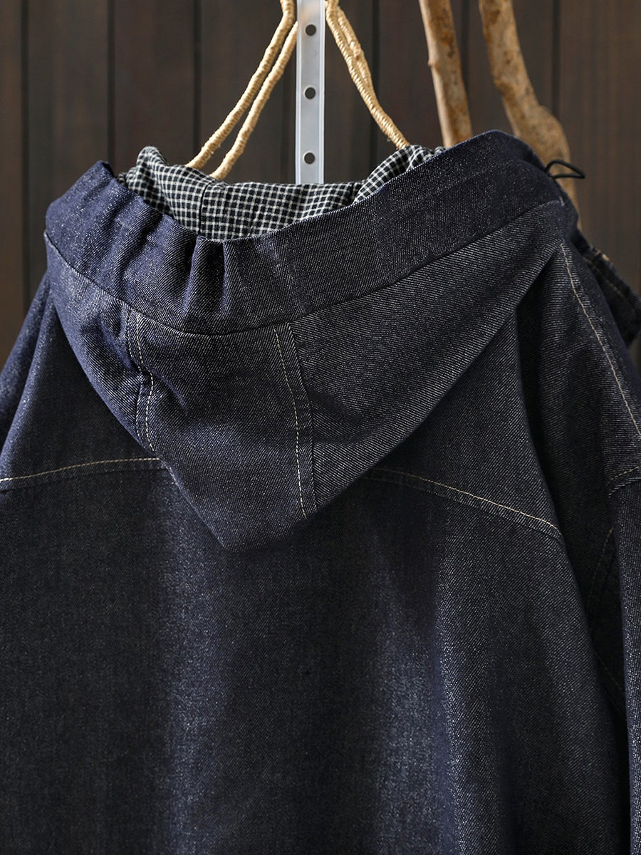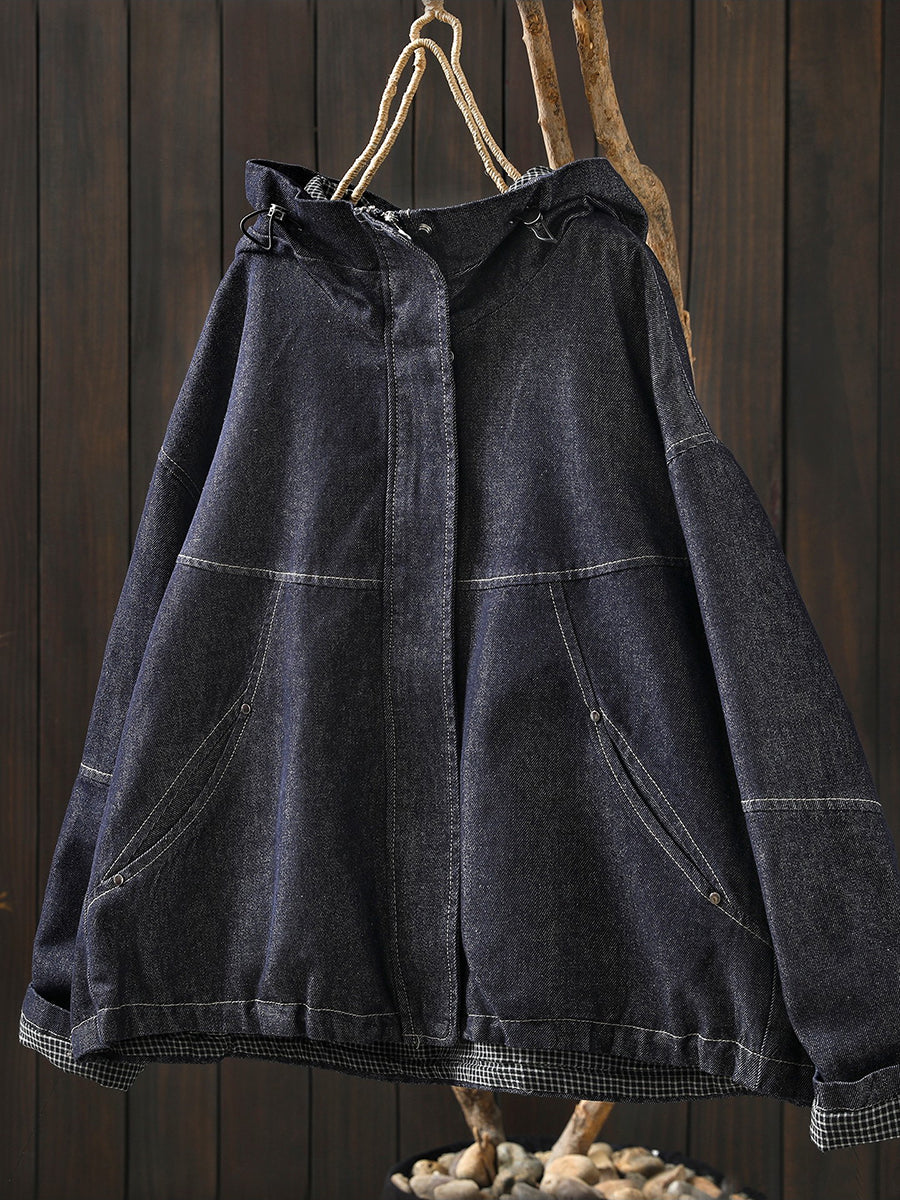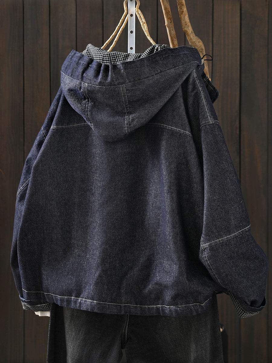Damen Frühling Retro Einfarbiger Kapuzen-Denimmantel