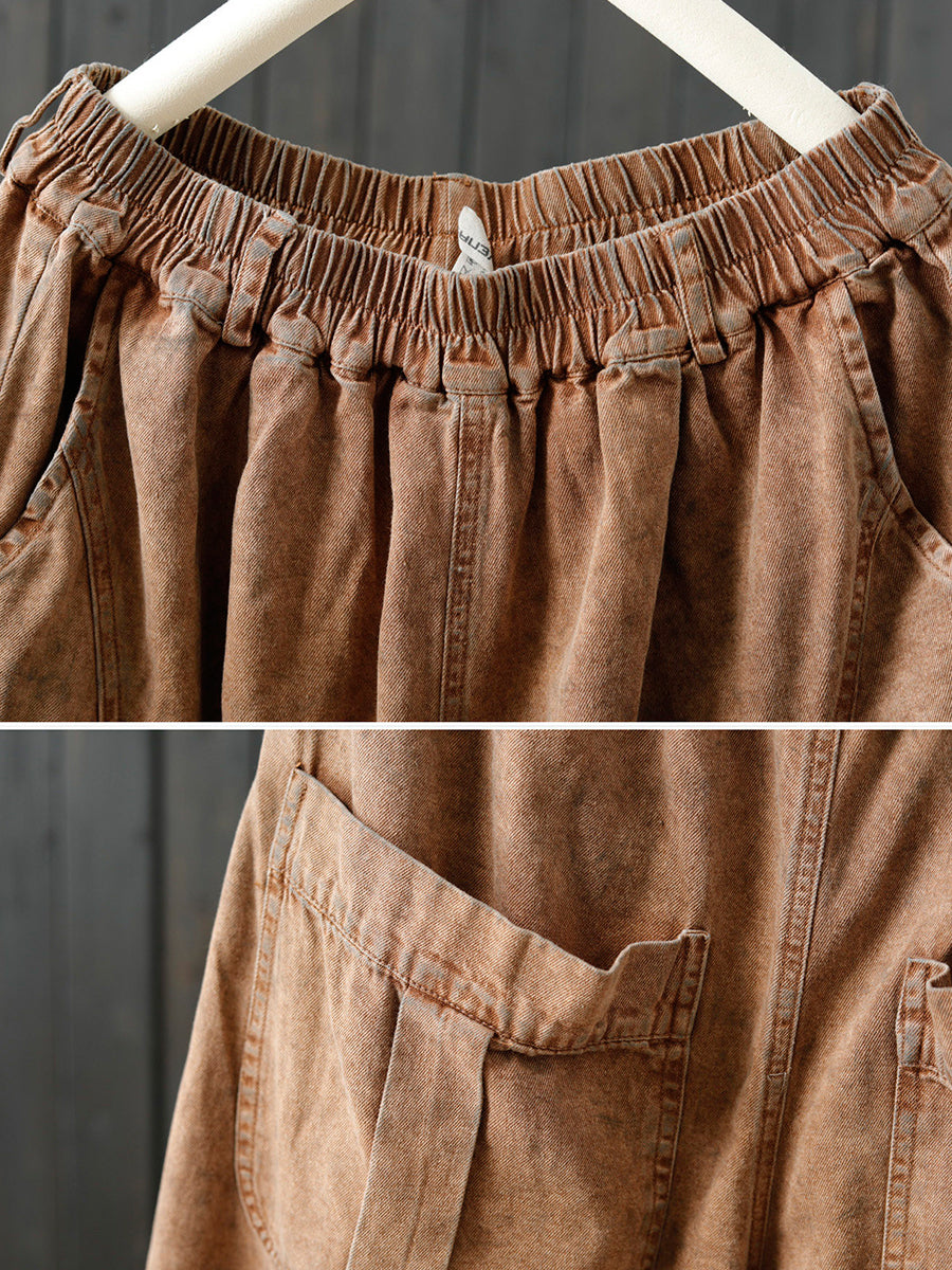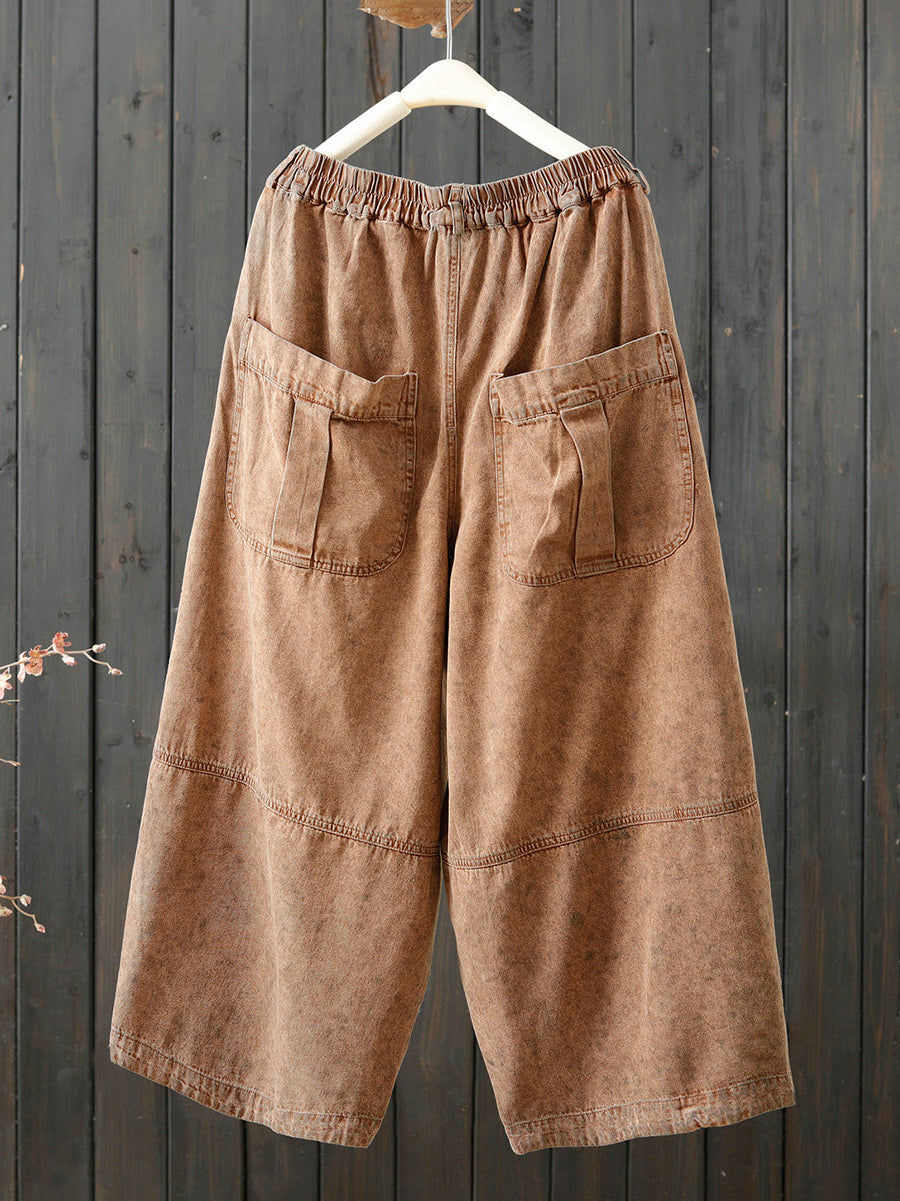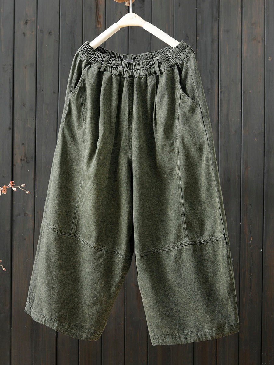 Damen Frühlings-Retro-Hose in Unifarben mit weitem Bein
