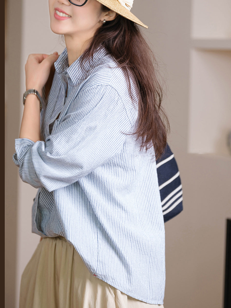 Damen-Frühlingsanzüge mit Vintage-Streifen aus 100 % Baumwolle