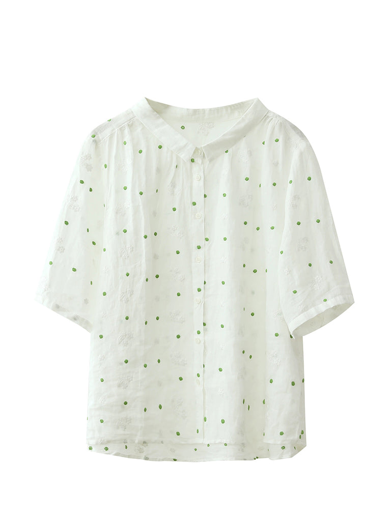 Damen Sommer Kunstvolle Stickerei 100% Ramie Umlegekragen Hemd