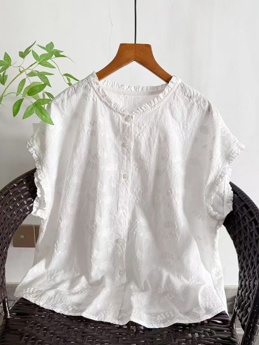 Sommerbluse aus Baumwolle mit kunstvoller Stickerei für Damen
