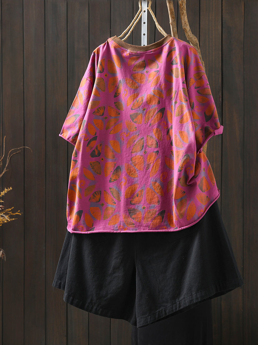 Sommerliches Baumwollhemd mit künstlerischem Blumenmuster für Damen