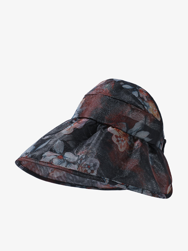 Damen Sommerhut mit Blumenmuster und großer Krempe, sonnenfest