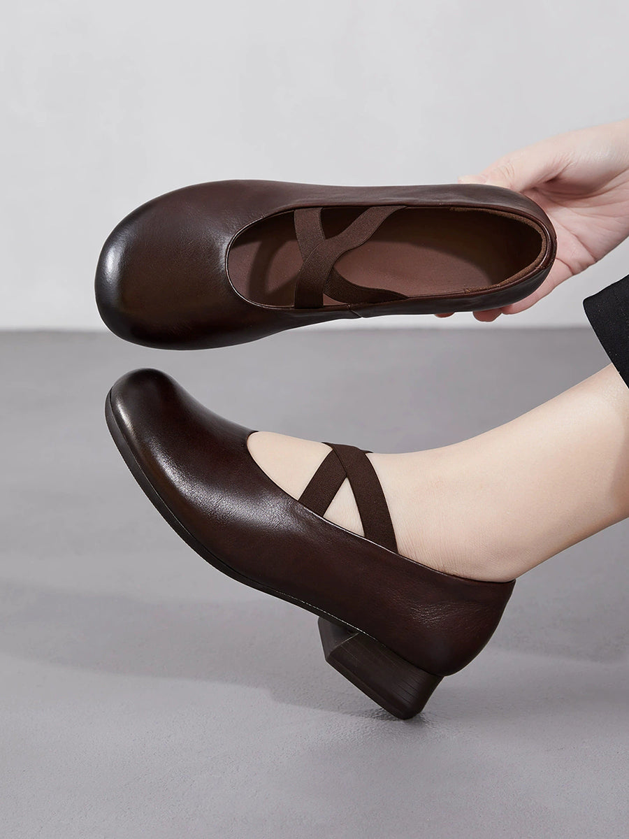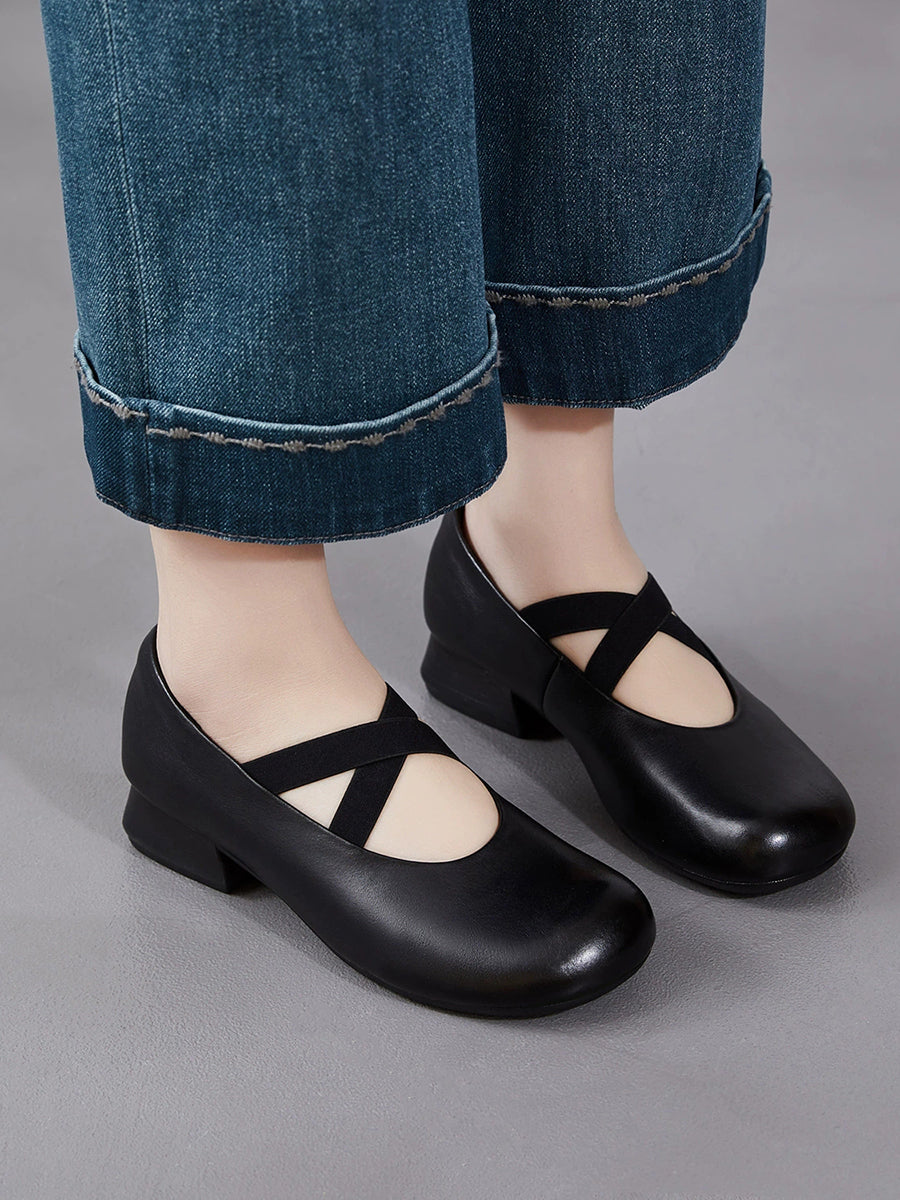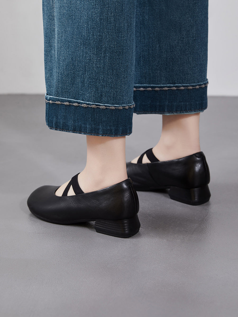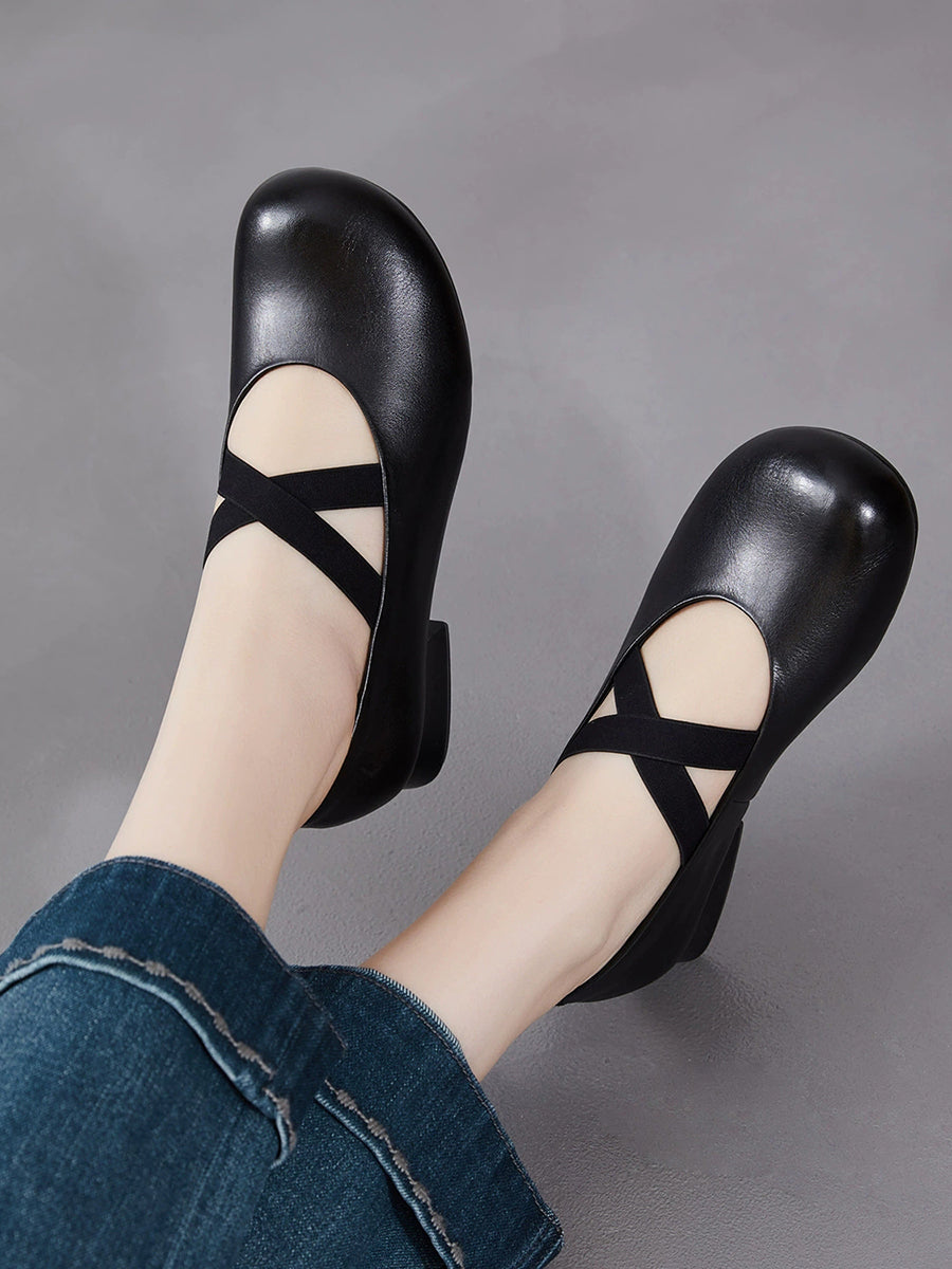 Damen Sommer Schuhe aus echtem Leder mit niedrigem Absatz