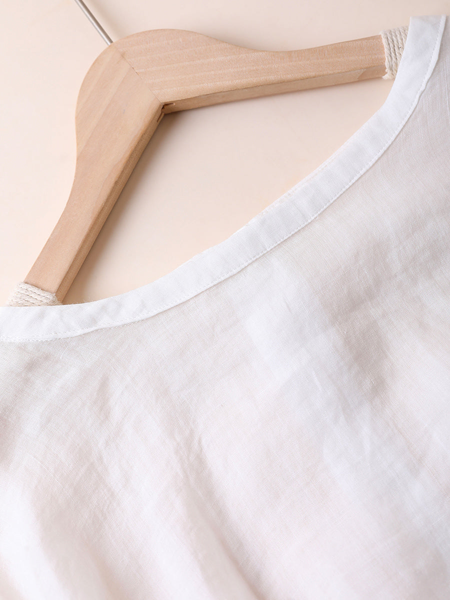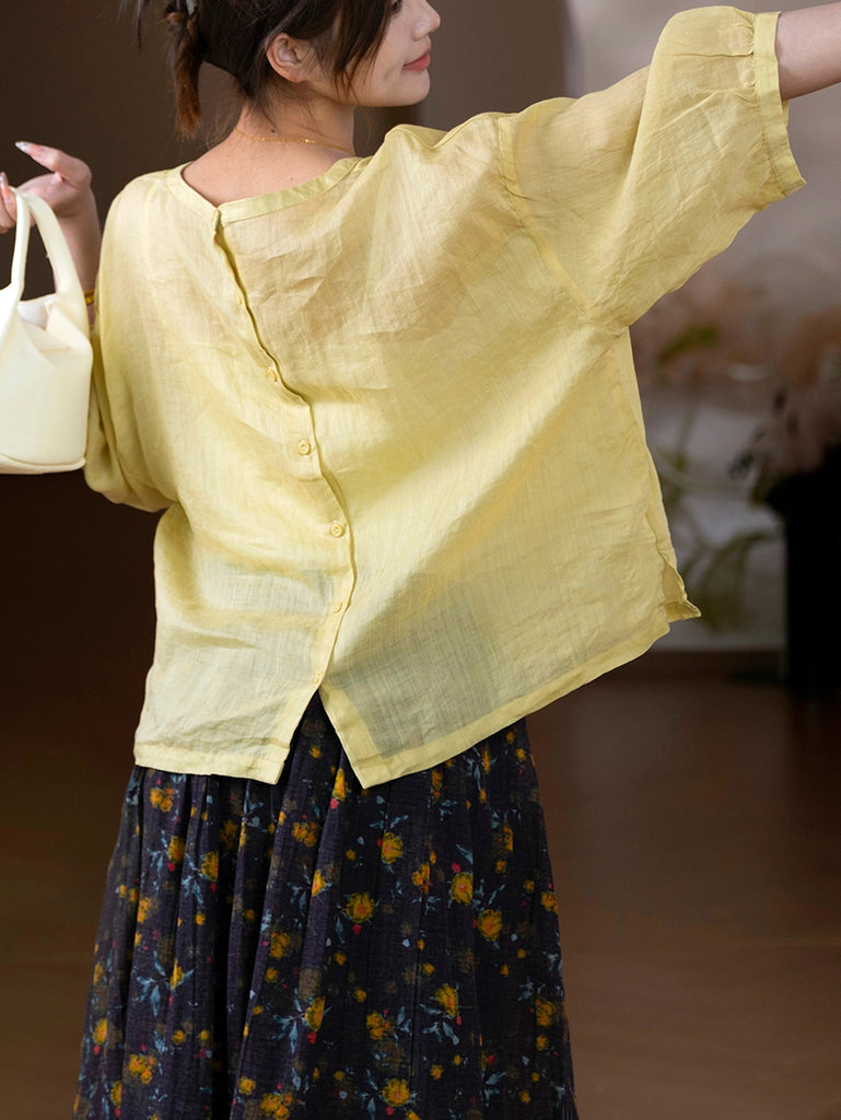 Damen Sommer Artsy Pure Color O-Ausschnitt 100% Ramie Shirt