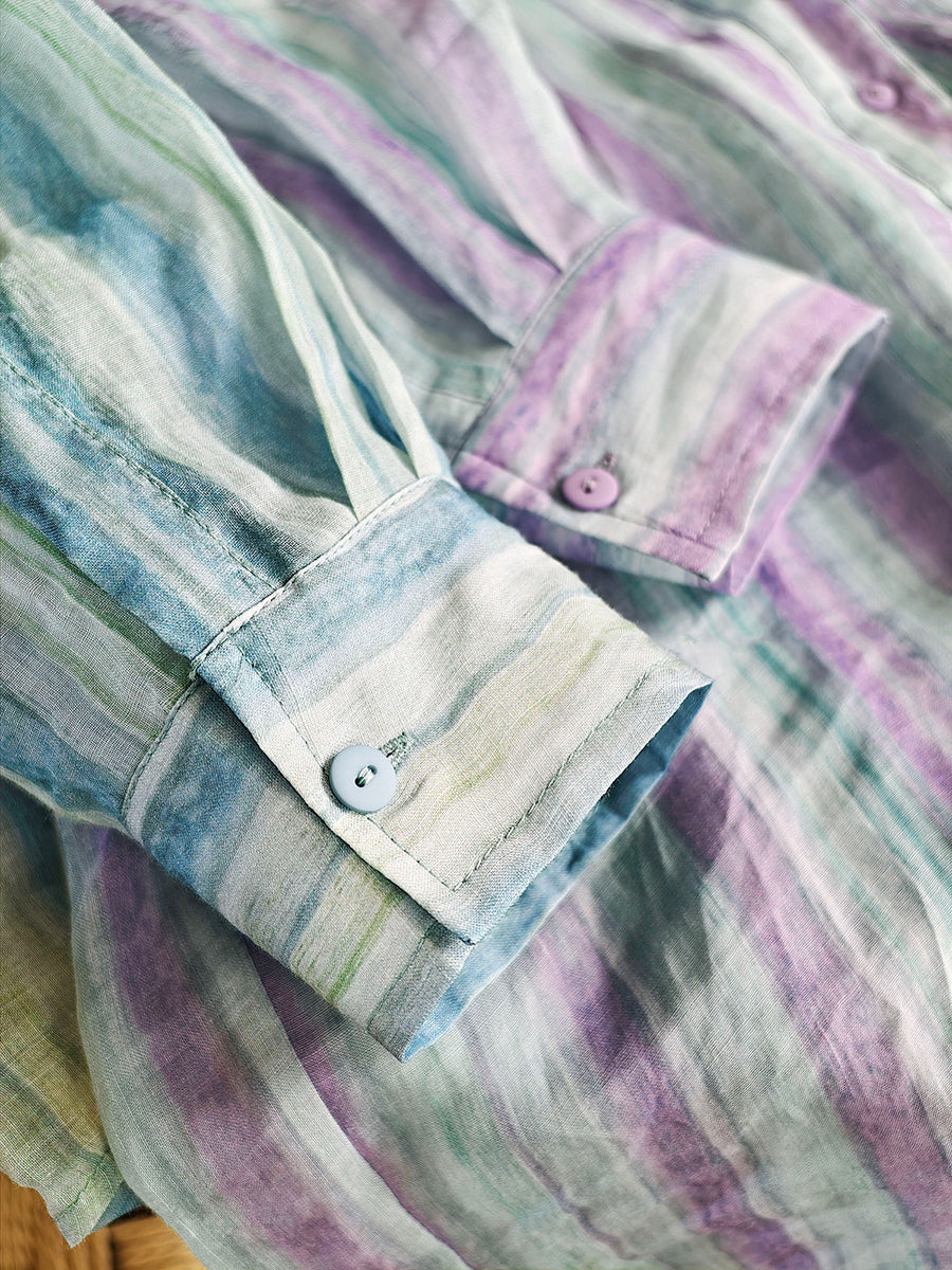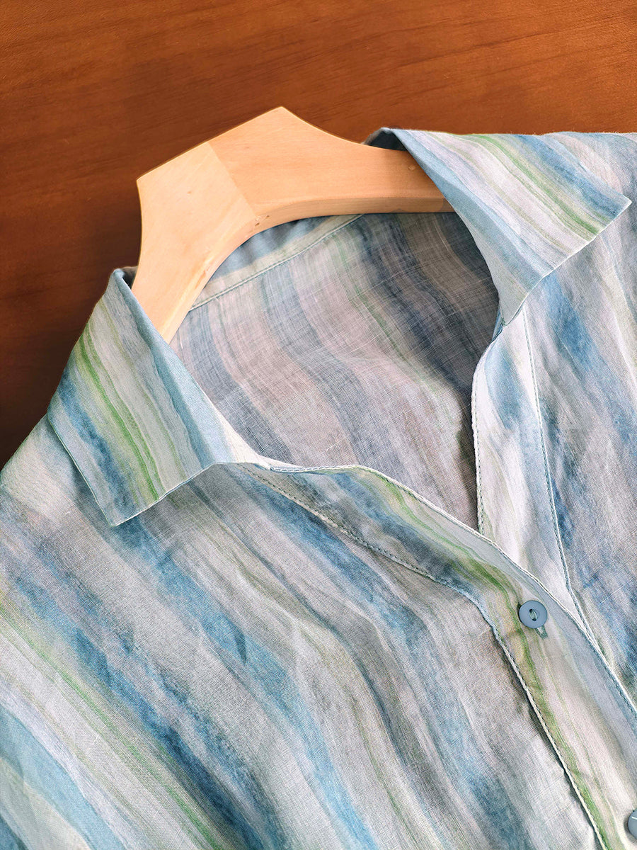 Sommerbluse für Damen mit künstlerischem Streifenmuster aus 100 % Ramie